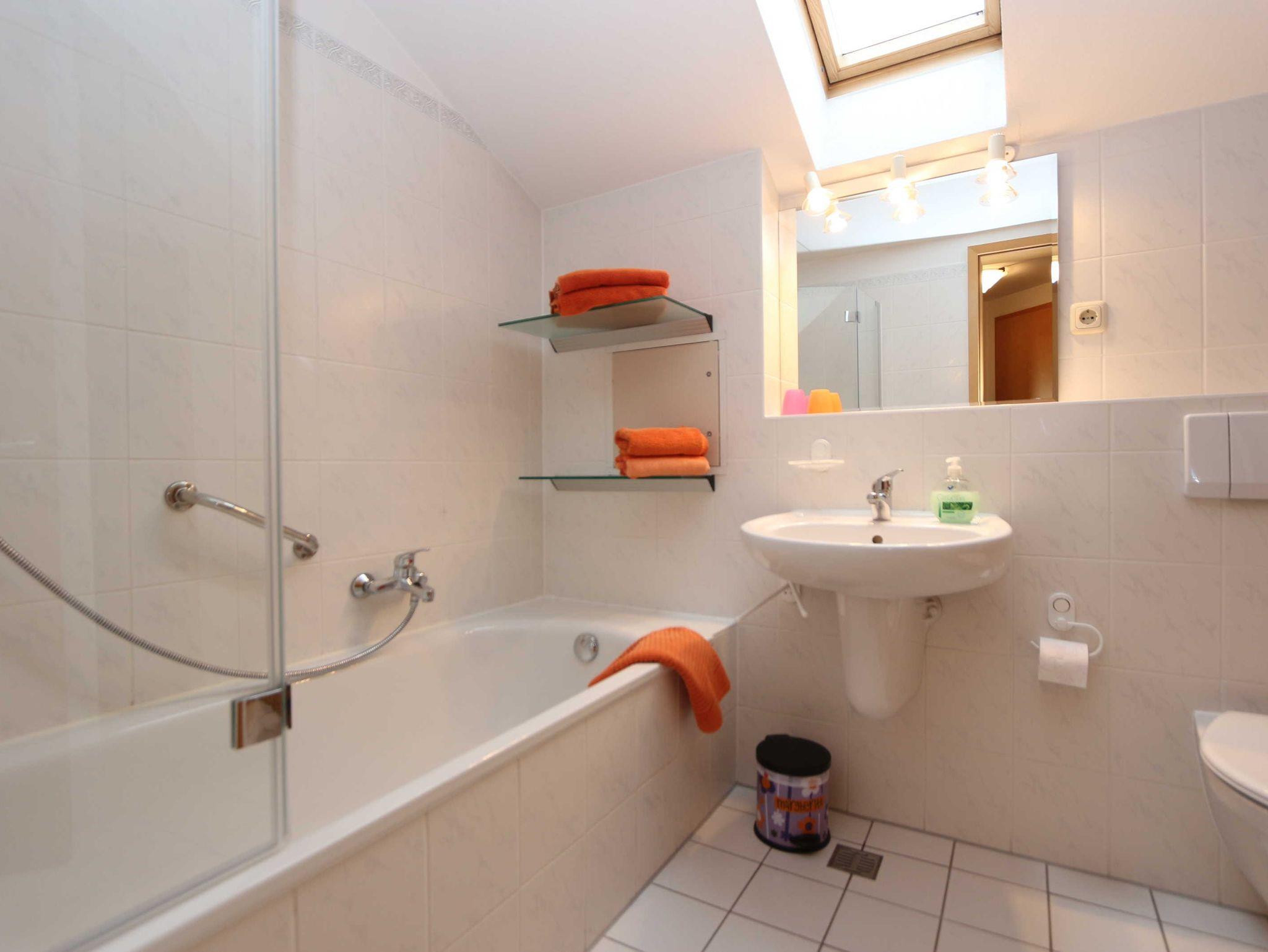• Bad mit Fenster, WC, Badewanne und Handtuchtrocknerheizkörper.