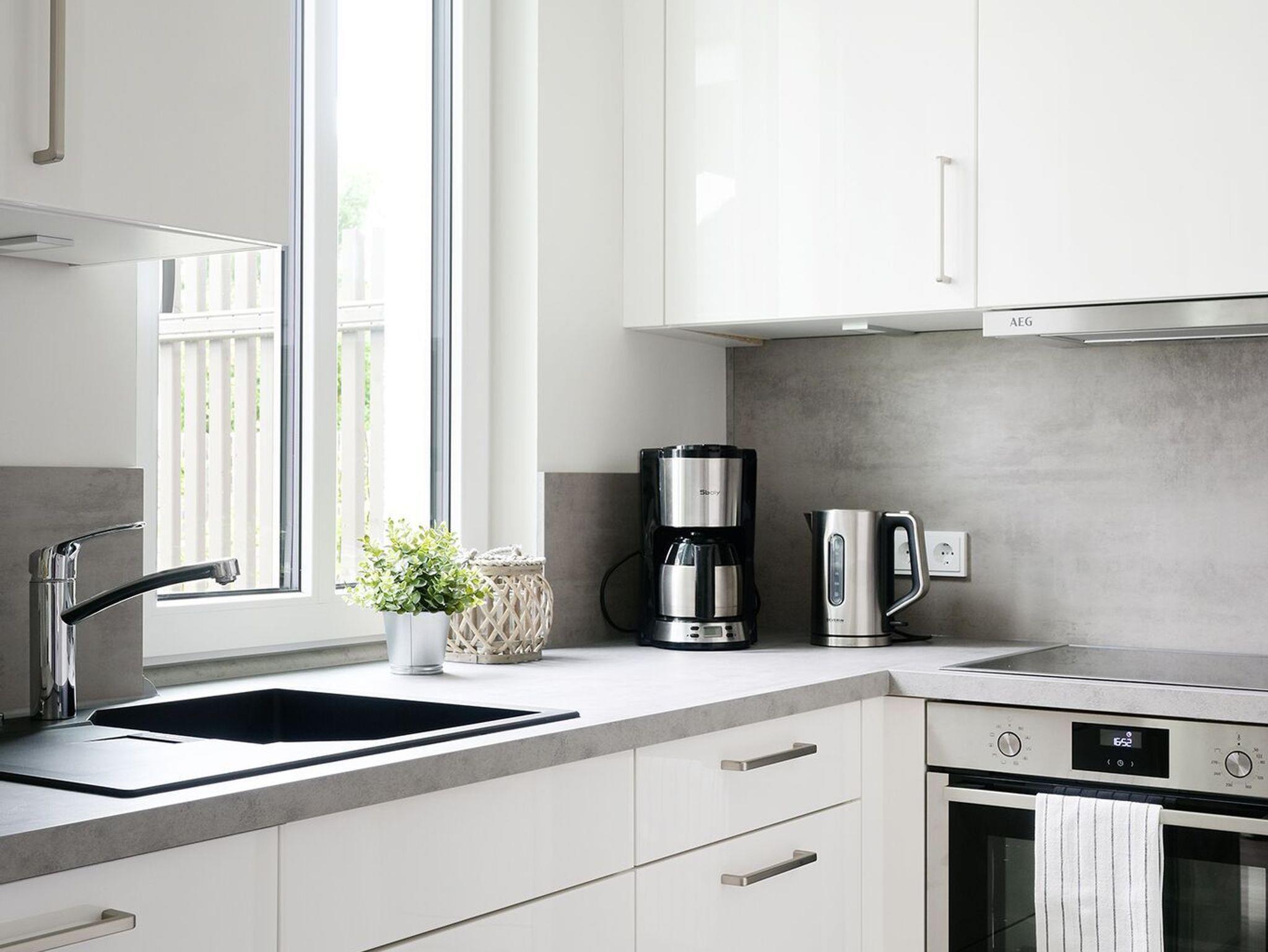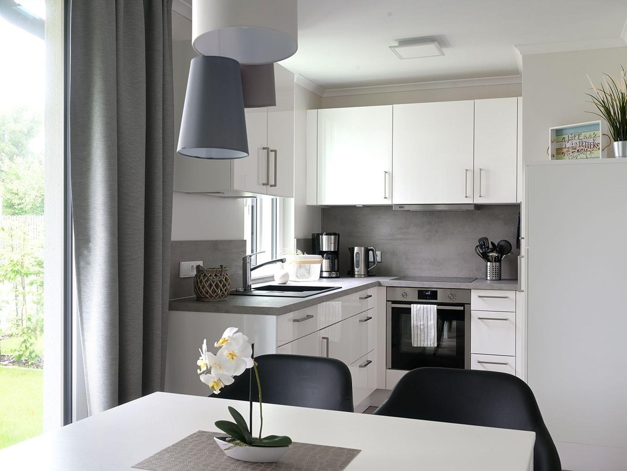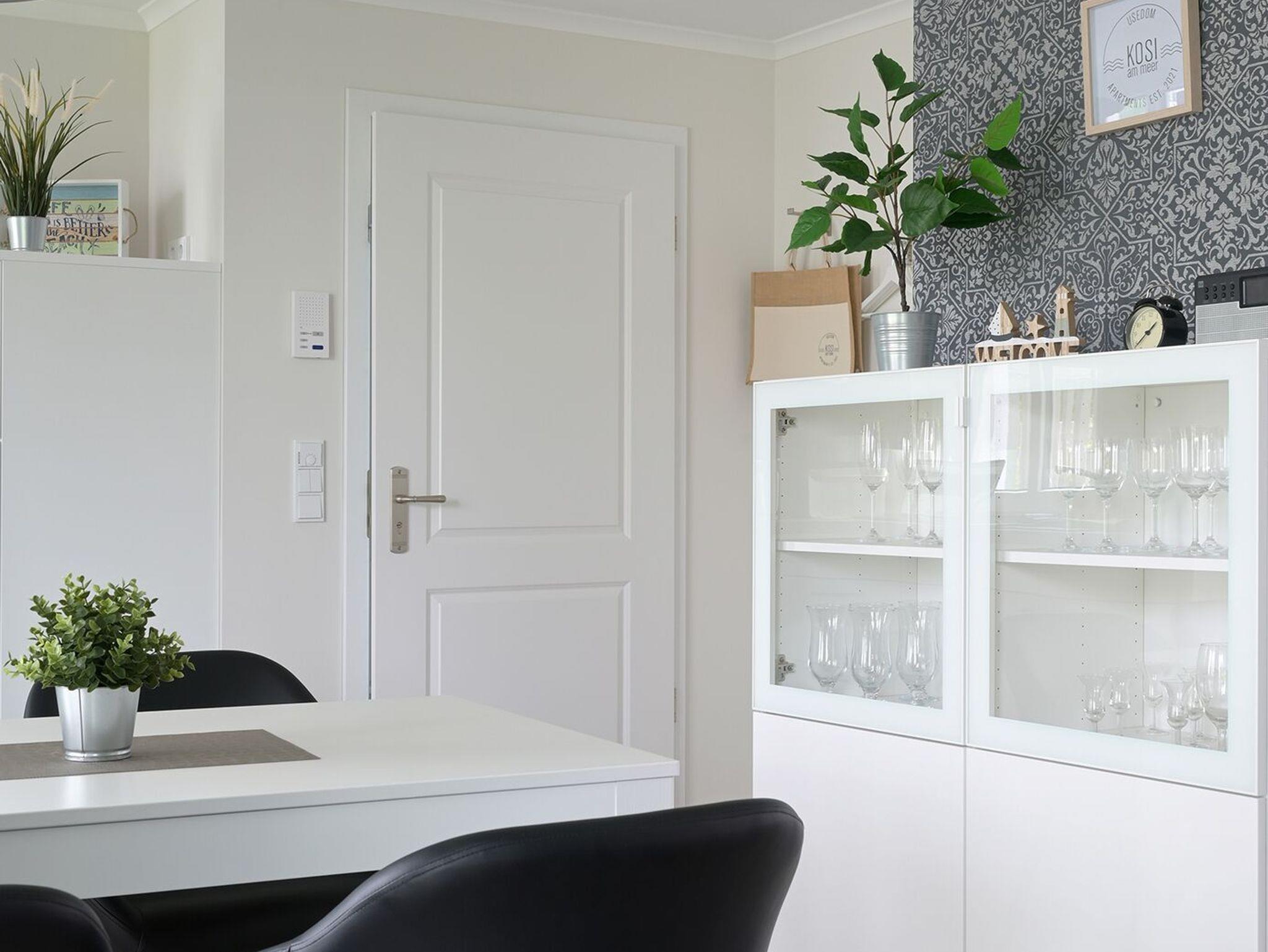 Die 3-Zimmerwohnung des vorderen Apartmenthauses bietet mit einer Fläche von 53 m² Aufenthaltsmöglichkeiten für 2-4 Personen. Eine offene, vollausgestattete Küche schafft hohe Transparenz zum Wohnraum und lädt ein für gemeinsame Zeit. Die Einrichtung der Wohnung fokussiert sich auf ein modernes und gleichzeitig gemütliches Interieur.
