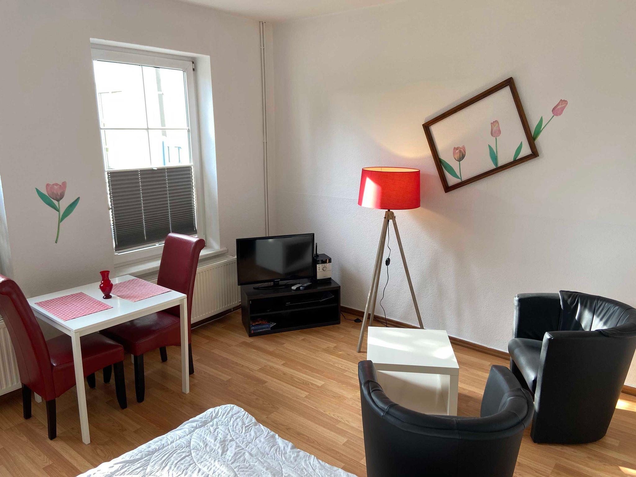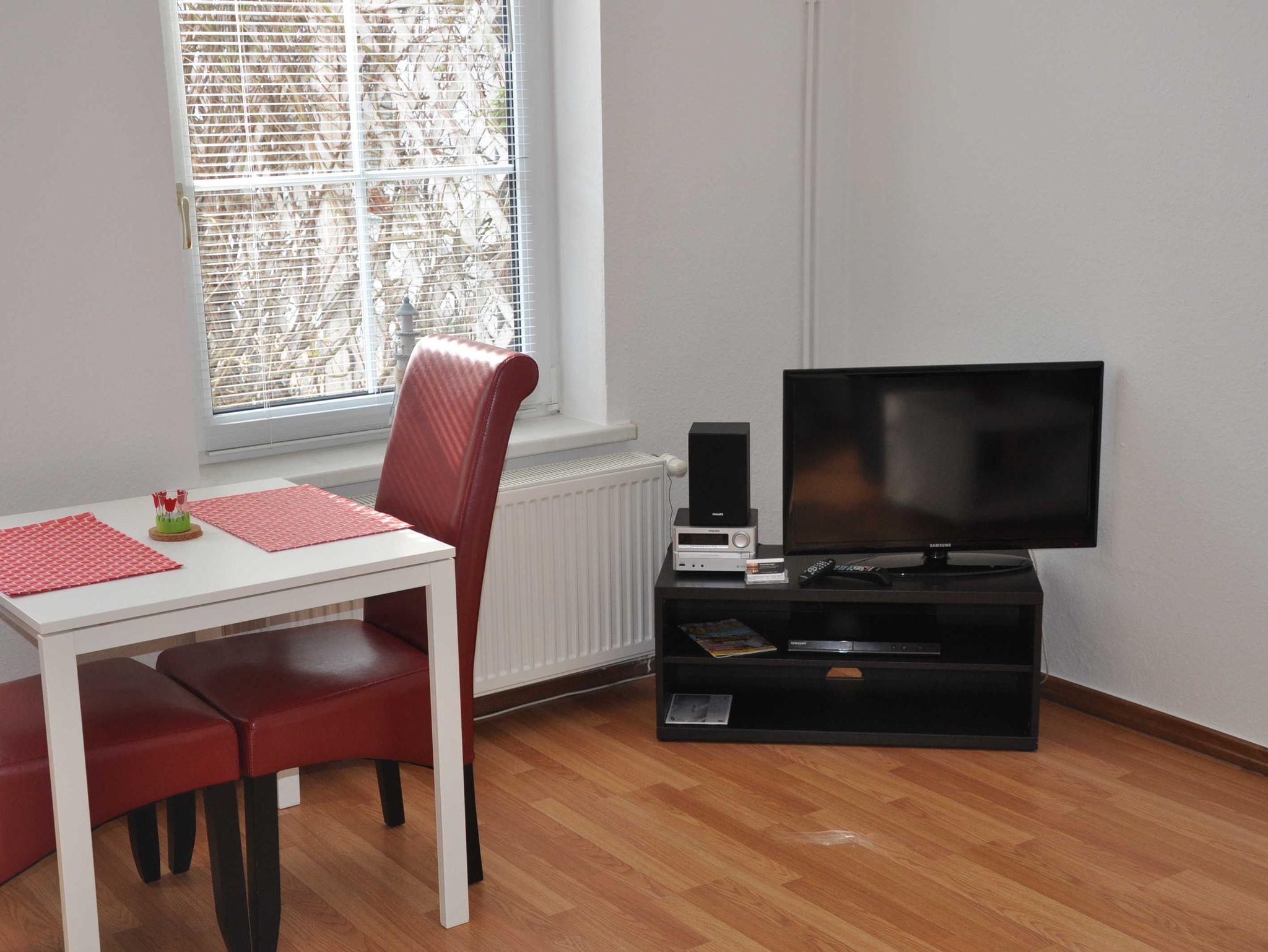 Unsere Ferienwohnungen vom Typ Breitfock sind ebenerdig im Apartmenthaus gelegen. Sie bieten Ihnen einen kombinierten Wohn-/ Schlafraum mit Doppelbett, eine offene, für 2 Personen ausgestattete, Kochnische mit Kochmöglichkeit (2 Platten), Kühlschrank, Toaster, Wasserkocher, Töpfe und Geschirr sowie ein kleines Bad mit Dusche und WC. Im Wohnbereich haben wir für Sie einen LED-Fernseher, einen DVD-Player und ein CD-Radio bereitgestellt. Es sind sämtlichst Nichtraucherwohnungen. Ein PKW-Stellplatz kann ganzjährig kostenfrei genutzt werden.