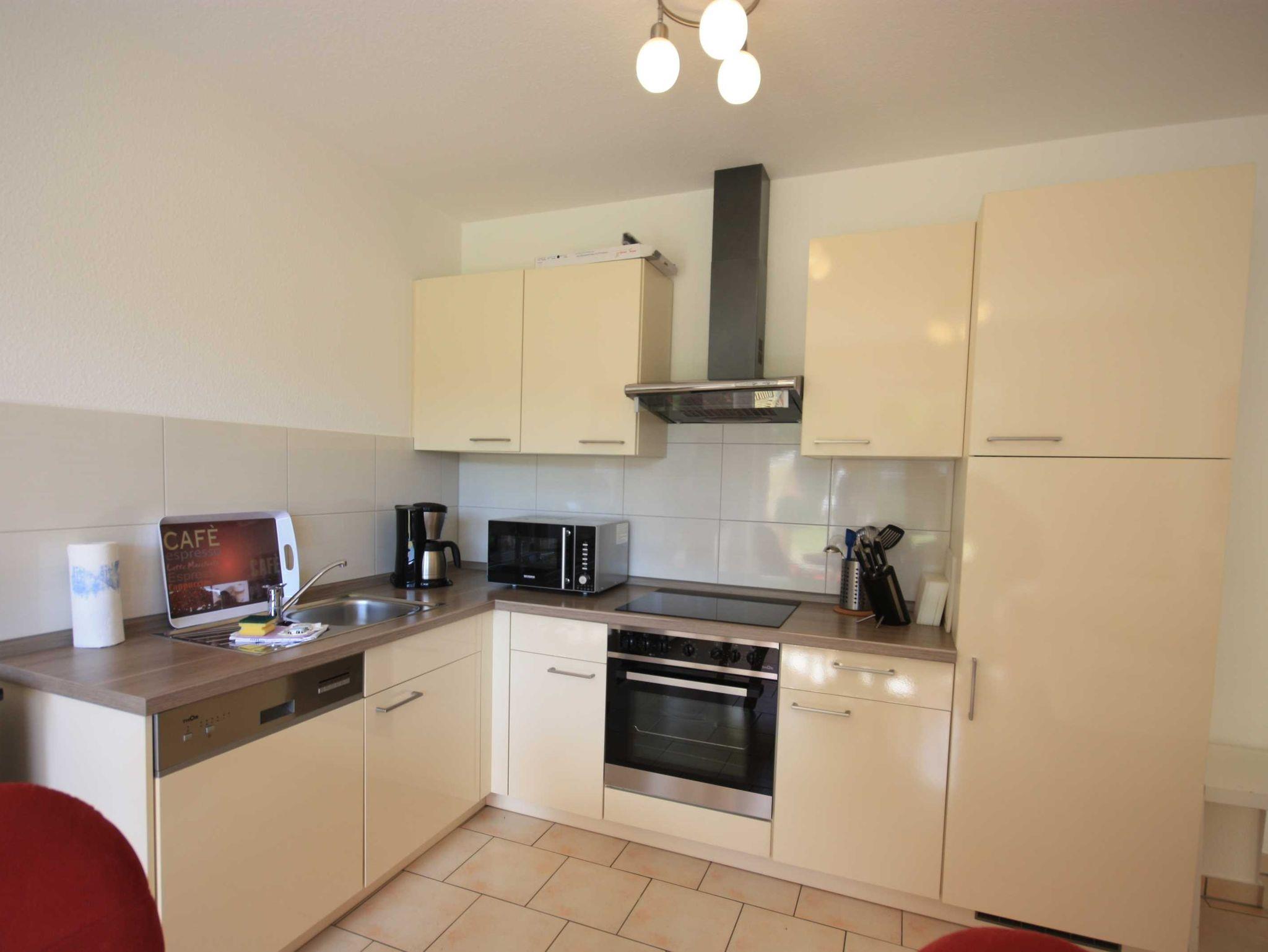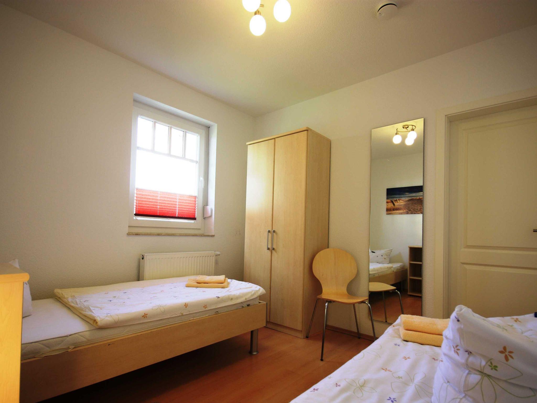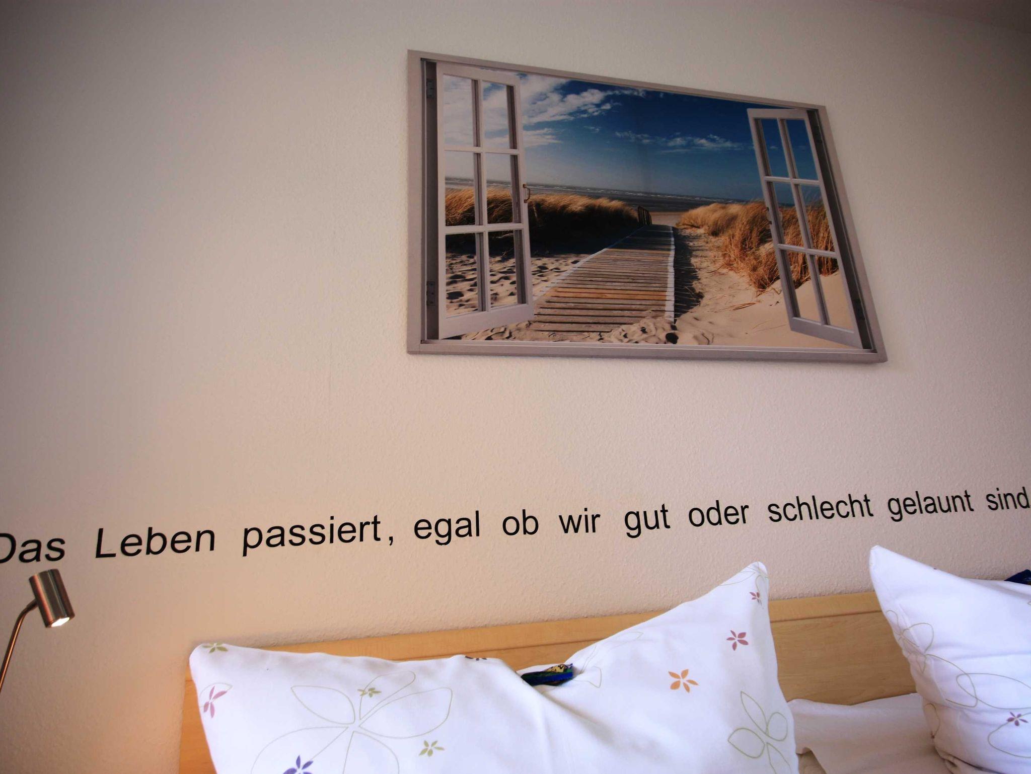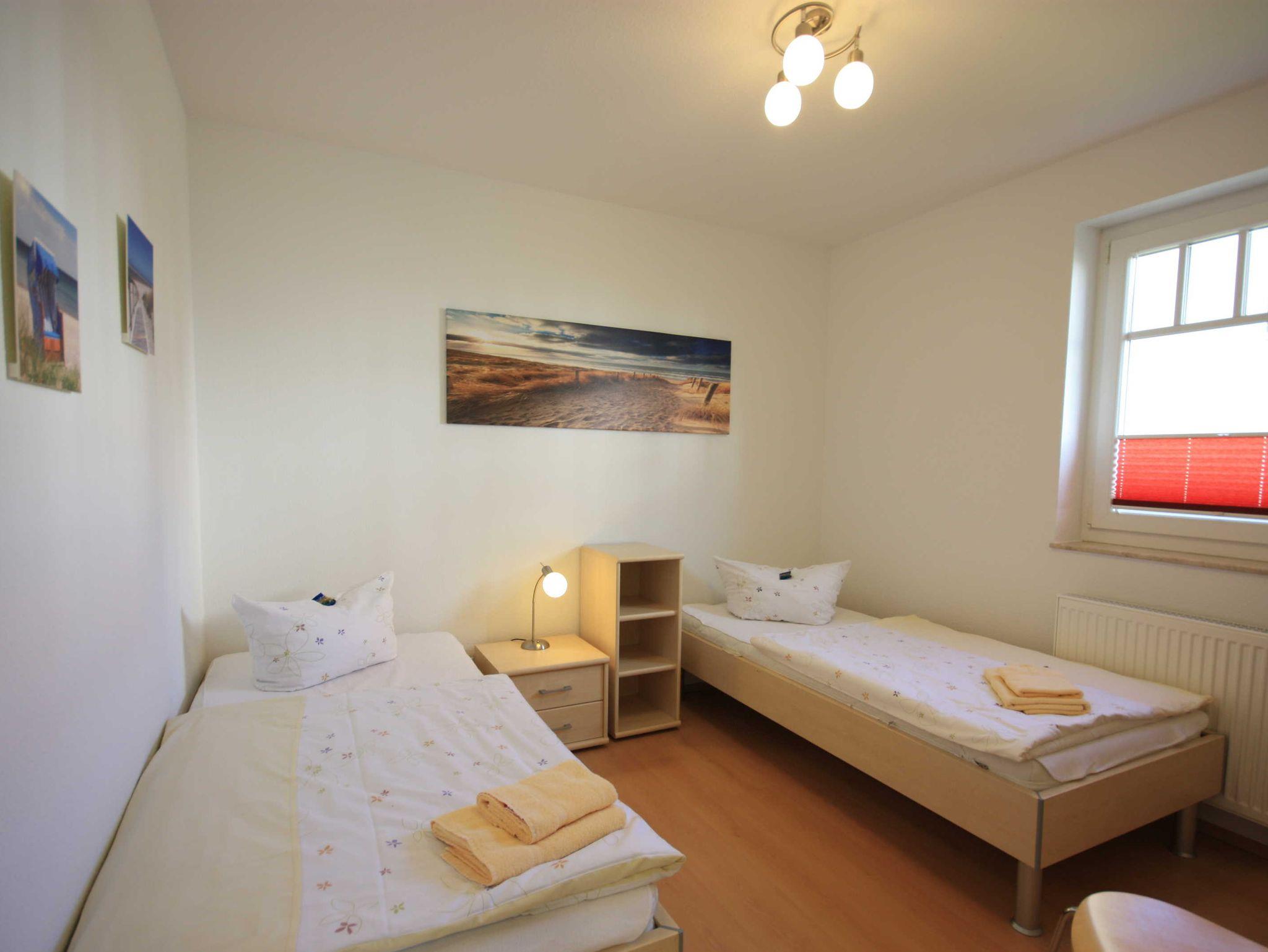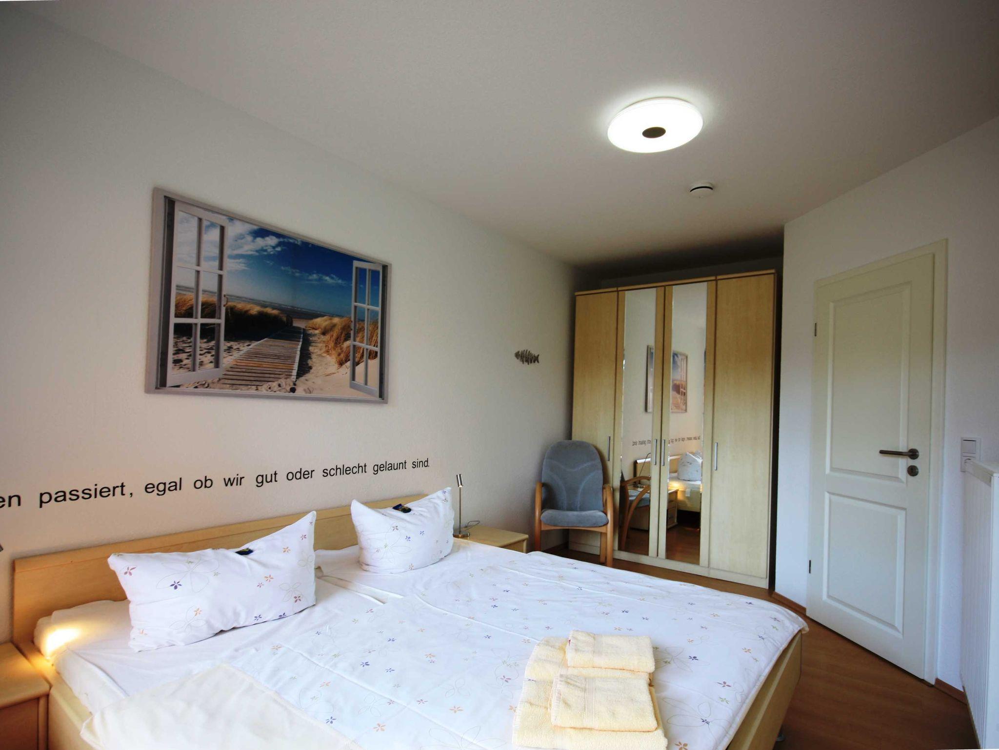 Die Wohnung verfügt über ein Schlafzimmer mit Doppelbett und ein Schlafzimmer mit zwei Einzelbetten. Die Wohnung ist ideal geeignet für Familien und Hundeliebhaber.