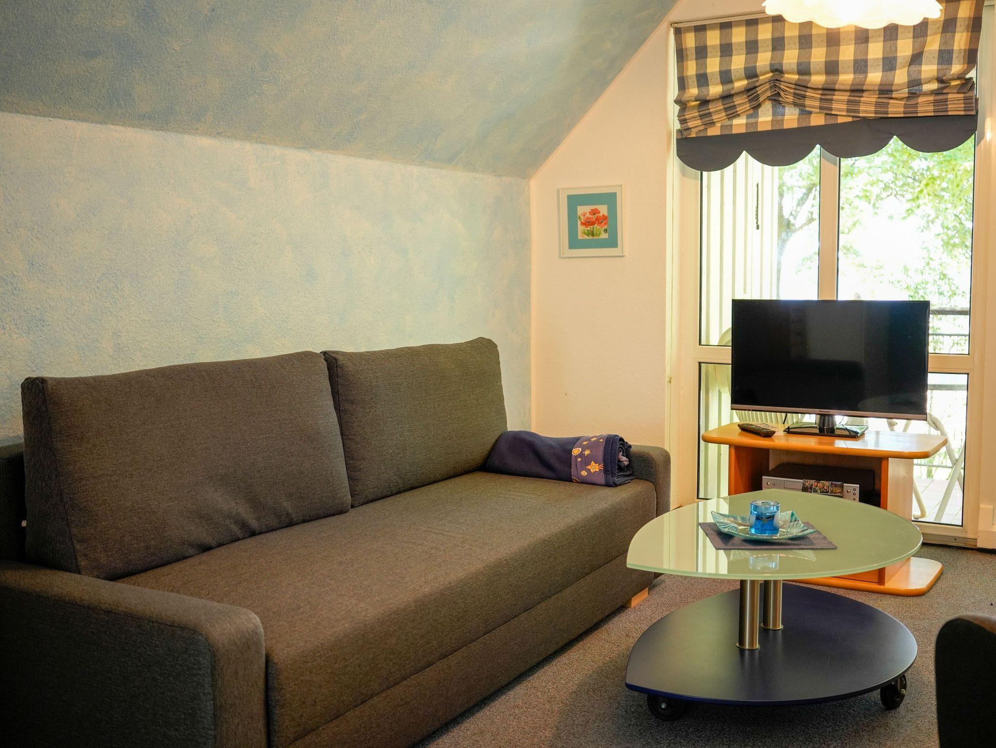 Dieses Nichtraucherappartement, innerhalb der kleinen Ferienanlage 'Seeblick', befindet sich im 2.Obergeschoss eines Gästehauses (Baujahr 1999) und verfügt über Dusche/WC, Wohnraum mit TV, Radio, integrierte Küche und Zugang zum möblierten Balkon mit teilweisem Blick zur Ostsee sowie über ein Schlafzimmer mit Doppelbett. Sie ist zentralbeheizt und für 2-3 Personen geeignet (Doppelbett im Schlafzimmer und Schlafcouch im Wohnraum). Bettwäsche und Handtücher im Set sind Bestandteil der Buchung.