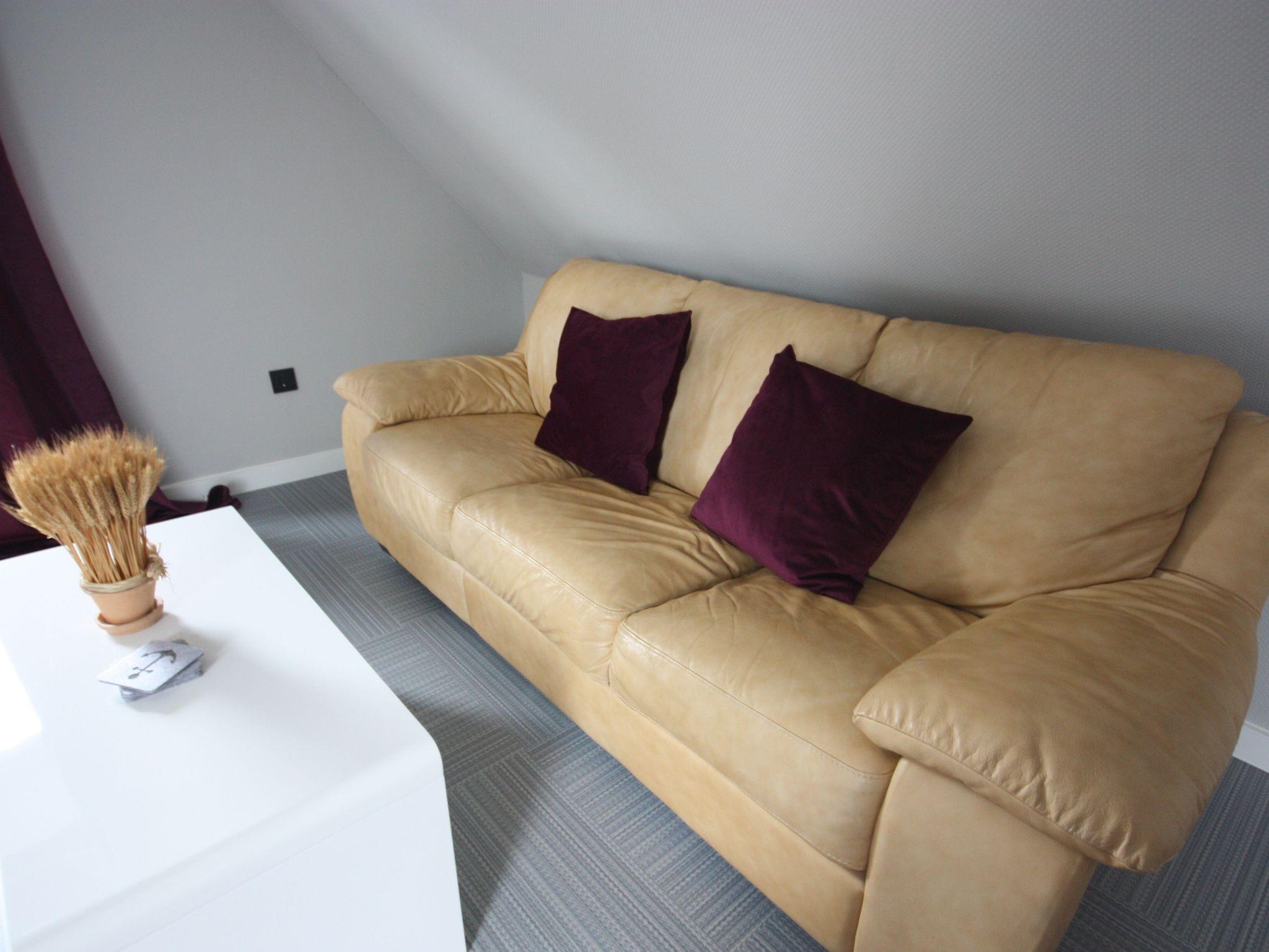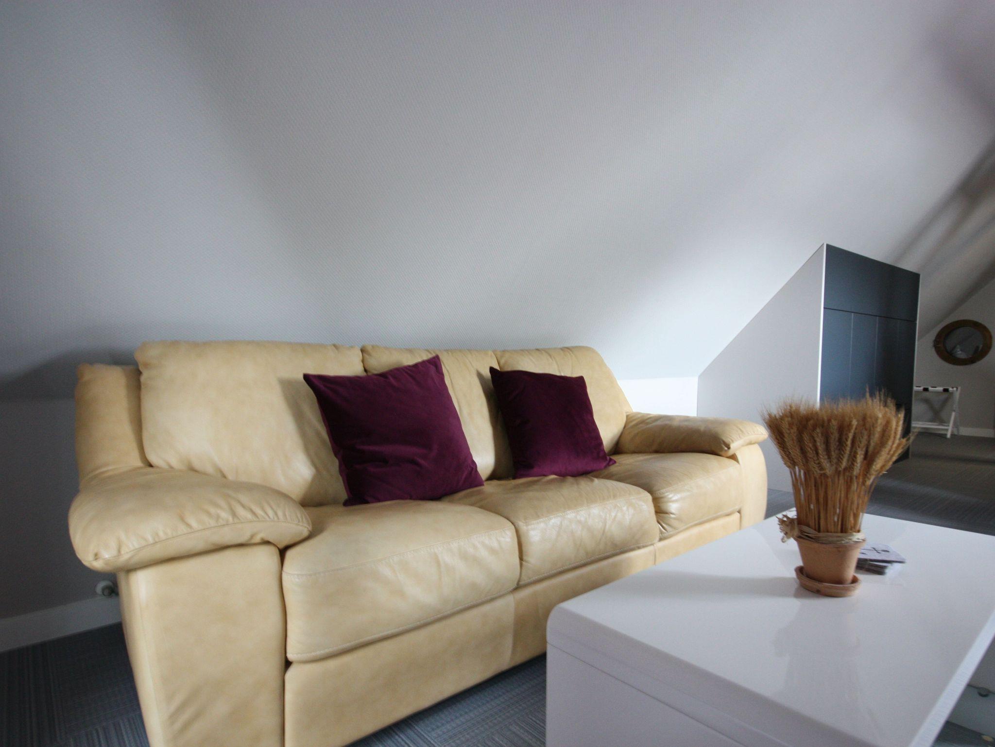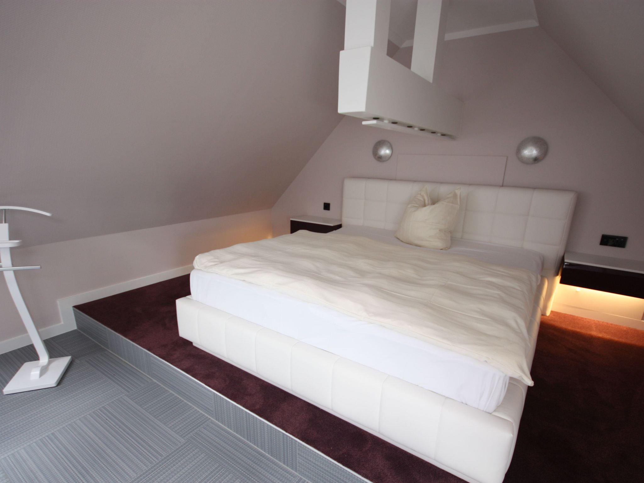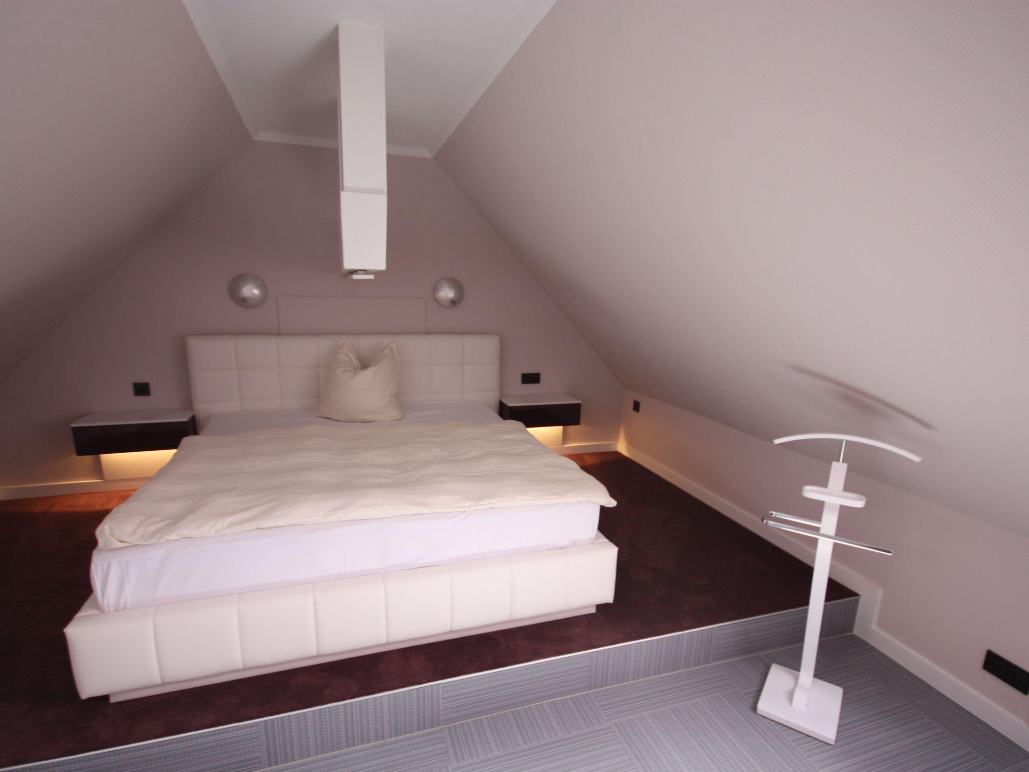 • 40 m² Wohnzimmer mit schöner Ausstattung und viel Platz im Spitzbogen