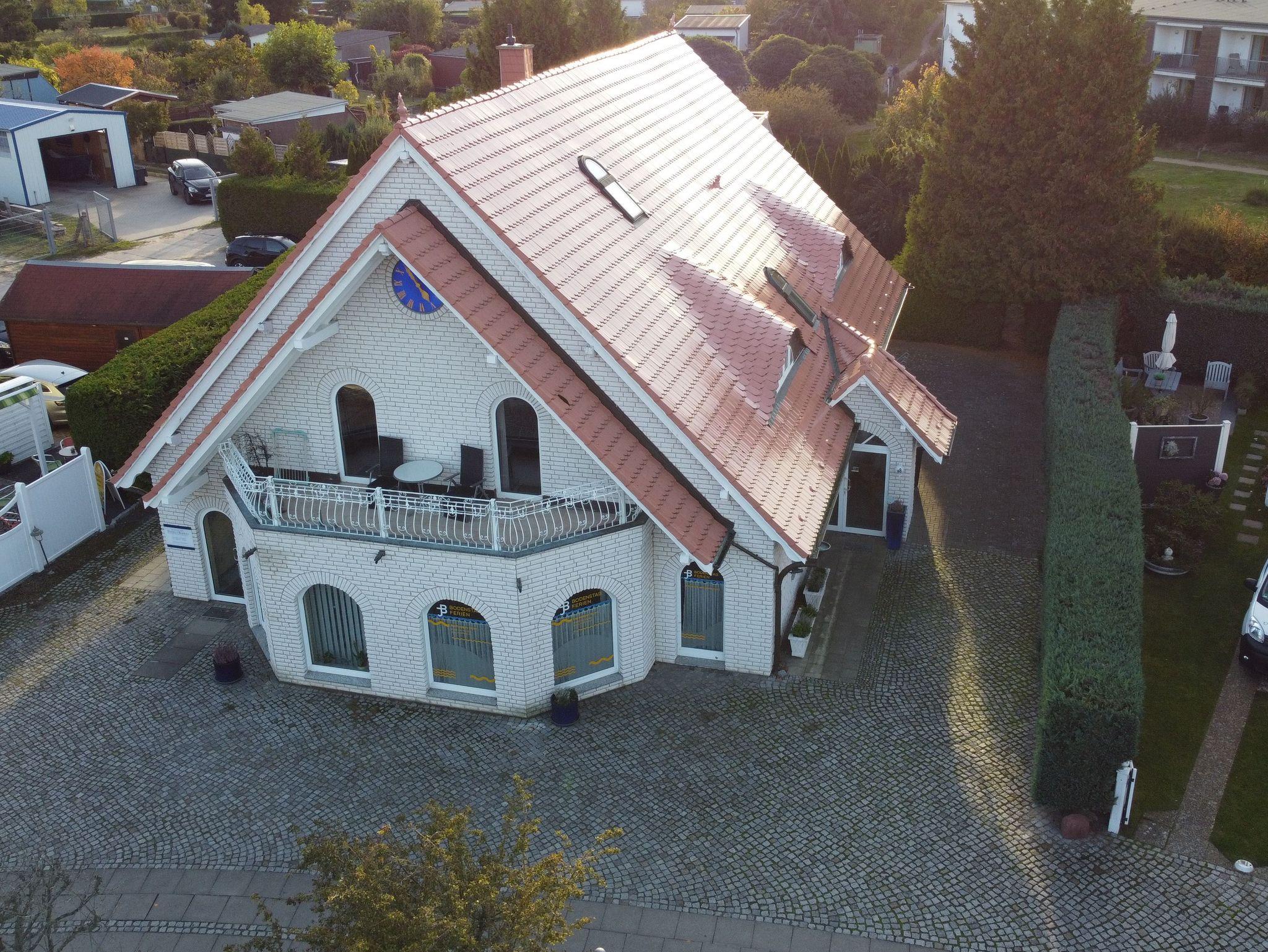 Das 1998 sehr aufwändig gebaute Haus liegt in der Ortslage von Koserow. Die nach südwesten ausgerichteten Ferienwohnungen haben einen Blick über die an dieser Stelle recht schmale Insel bis zum Achterwasser. Auf den Balkonen genießen sie den Sonnenuntergang. Das Haus verfügt über die 3 Ferienwohungen Lee, Luv und Utkiek, die sich im Obergeschoß und Dachgeschoß befinden. Im Erdgeschoß sind Gewerbeeinheiten untergebracht. Der große Garten kann zum Grillen, Entspannen und Spielen genutzt werden.