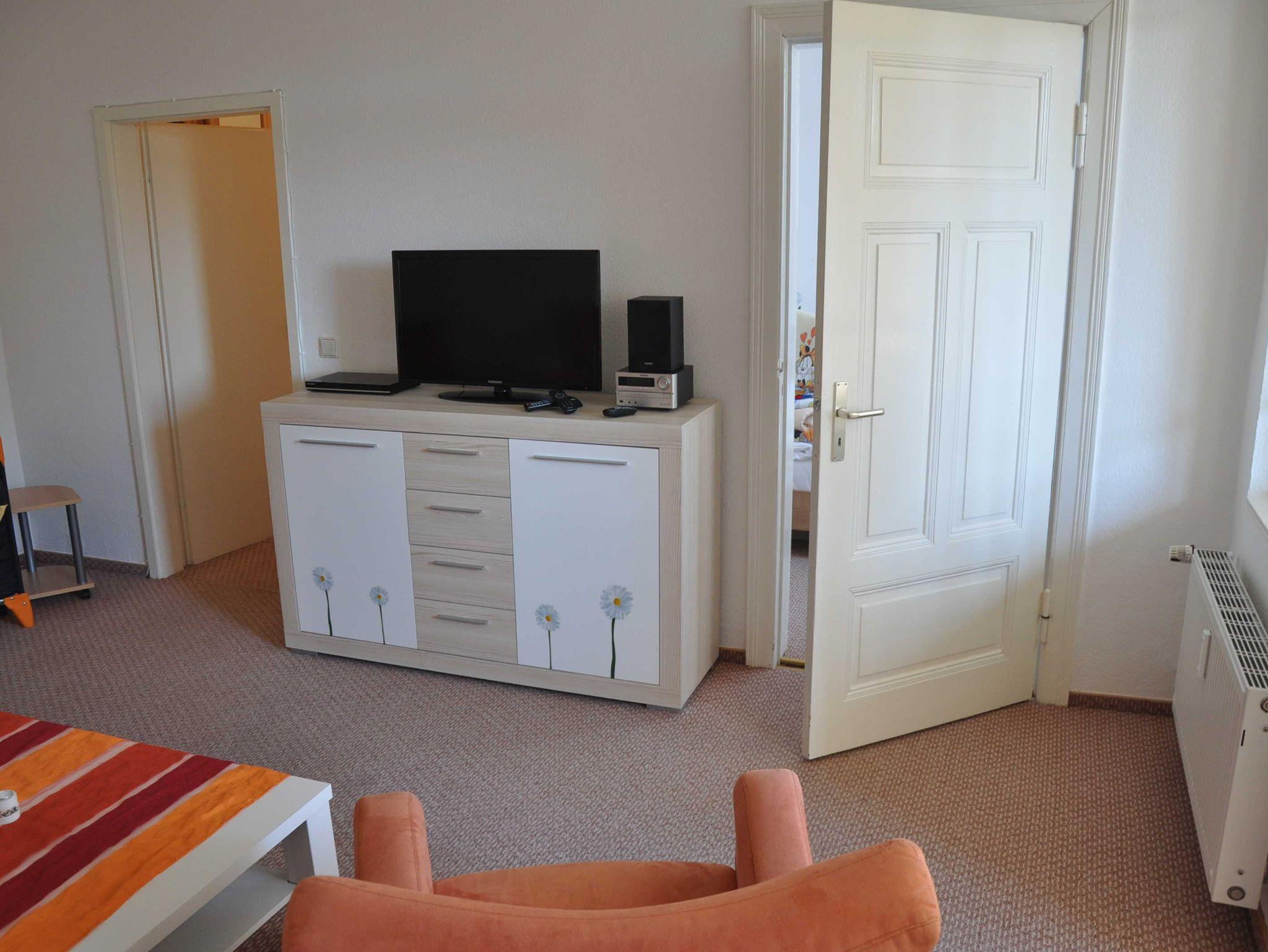 Die 2-Raum-Wohnung Fender ist im Haupthaus im EG unseres Ferienhauses gelegen und bietet Ihnen mit 57 m² die perfekte Unterkunft für Ihren Urlaub am Meer. Hier finden Sie alles, was Sie für Ihren erholsamen Urlaub benötigen. Die Räumlichkeiten teilen sich in einen Wohnraum mit Schlafsofa, ein Schlafzimmer mit Doppelbett, ein Bad mit Dusche und WC, sowie eine für bis zu 4 Personen umfangreich ausgestattete Einbauküche mit Elektroherd, Backofen, Wasserkocher, Toaster, Kaffeemaschine, Geschirrspüler, Geschirr, Besteck und Töpfe. Bestenfalls wohnen hier 2 Personen, es können aber auch bis zu 4 Personen übernachten.