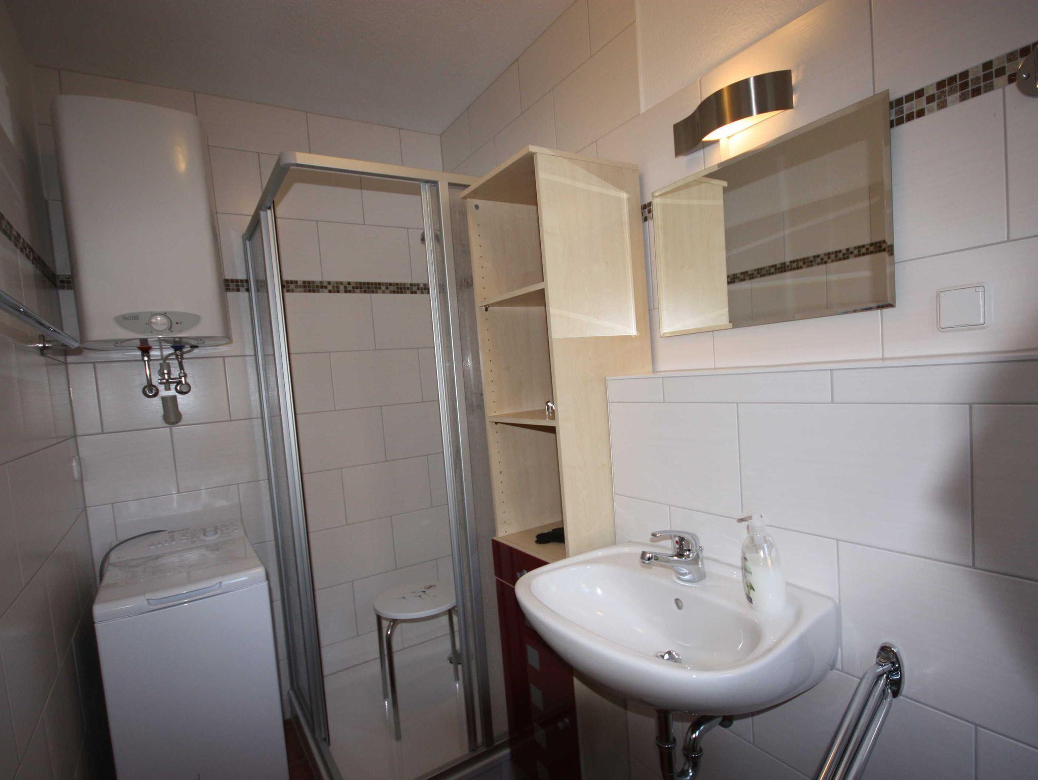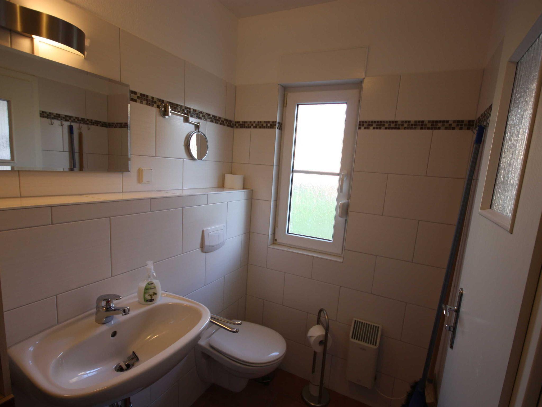 Die Ferienwohnung liegt im Erdgeschoß des Ferienhauses links. Sie besteht aus Wohnzimmer, kompl. ausgestatteter Küche, Balkon mit Sitzmöbeln, Schlafzimmer und Tageslichtbad. Die Ausstattung der bordeauxfarbenen Einbauküche ist neuwertig funktional und qualitativ hochwertig unter anderem mit Toaster, Kaffeemaschine, Mikrowelle mit Grill, Ceran-Kochfeld, Geschirrspüler, Gefrierfach. Große Süd-West-Terrasse mit Blick auf den Wald und den Sonnenuntergang, Grill.