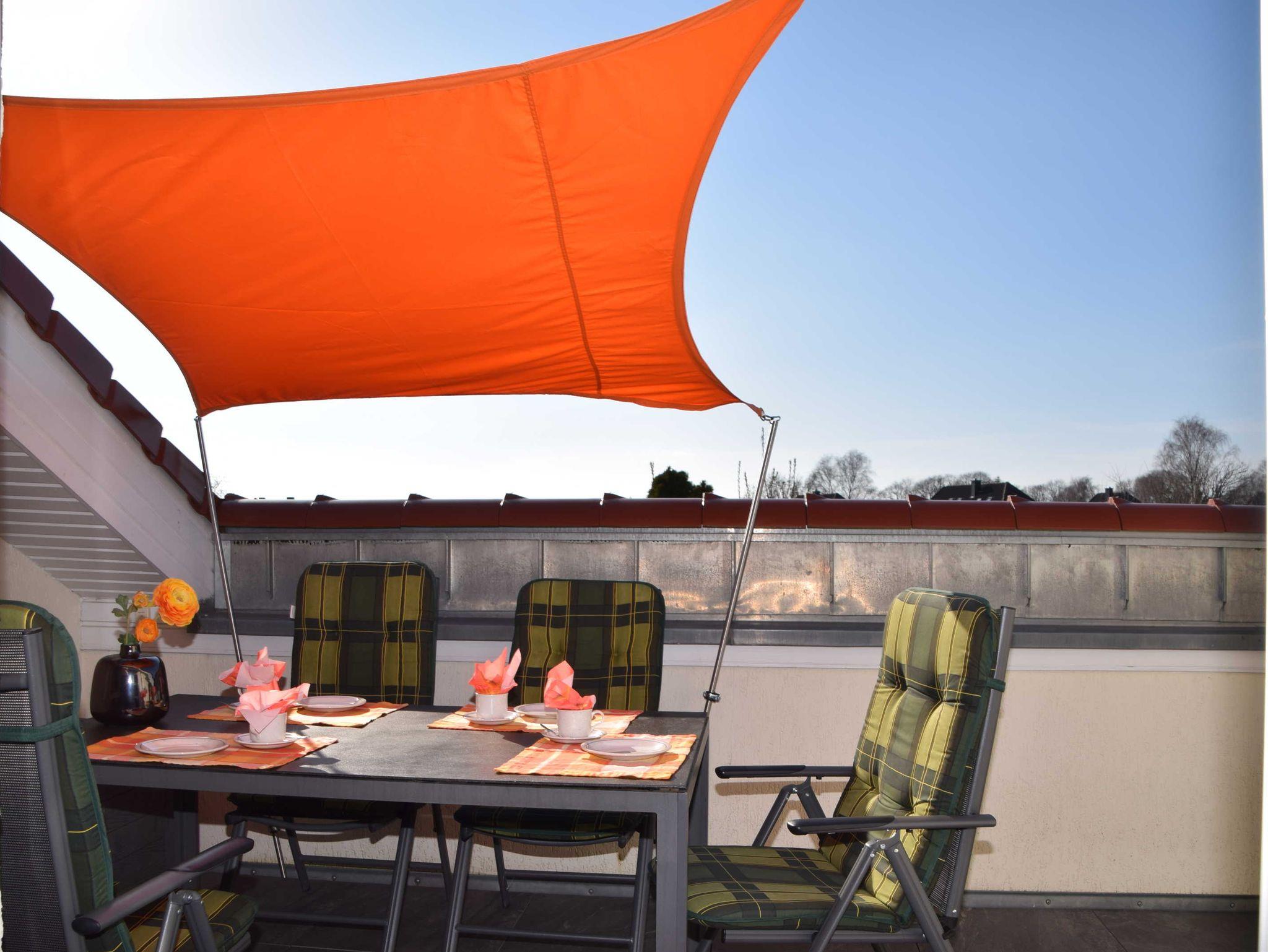 • 1 Balkon mit Möbeln und Sonnenschirm