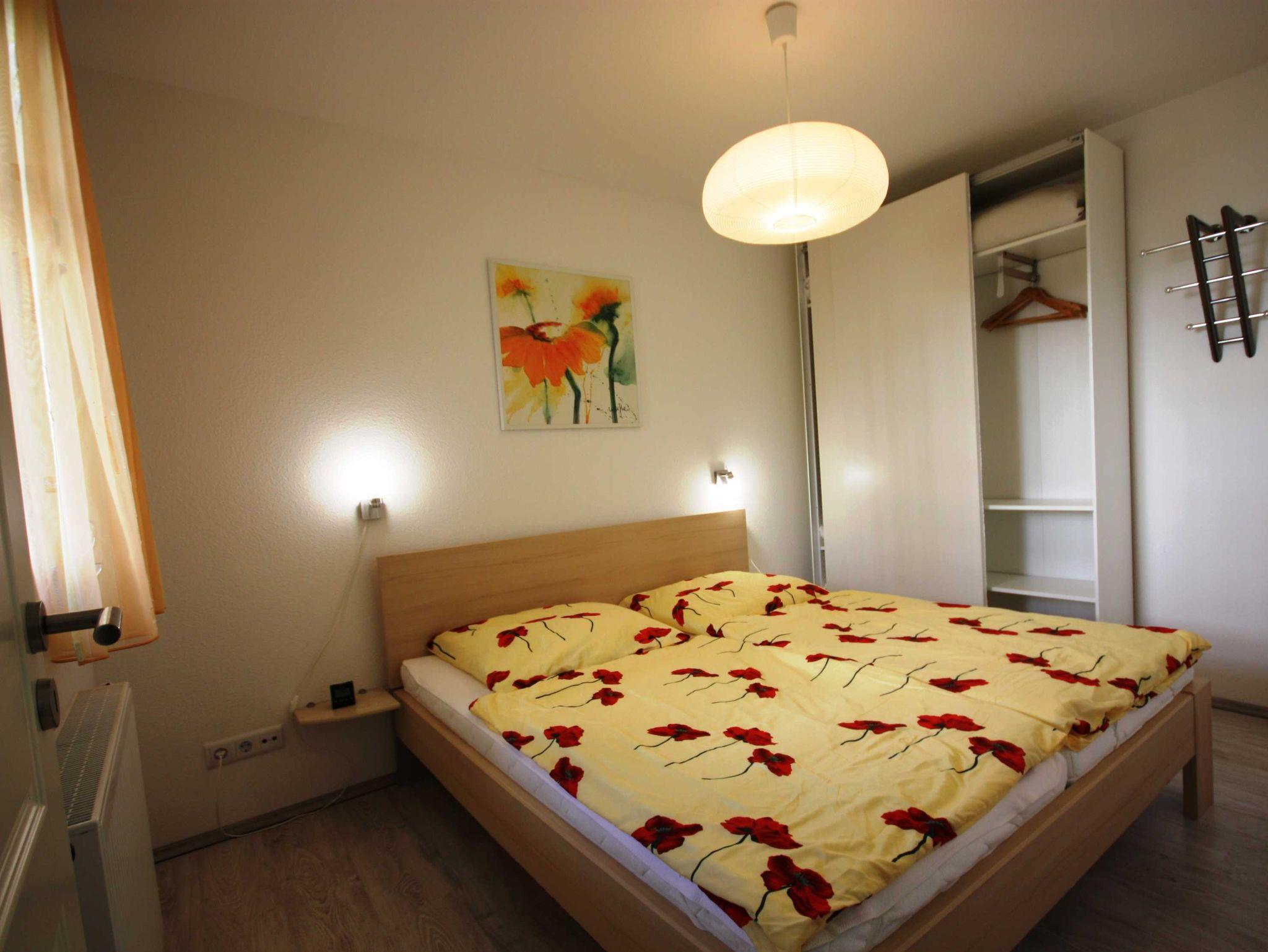 Die Wohnung verfügt über ein Schlafzimmer mit Doppelbett und ist ideal geeignet für Paare. Ein Kinderbett passt nicht ins Schlafzimmer.