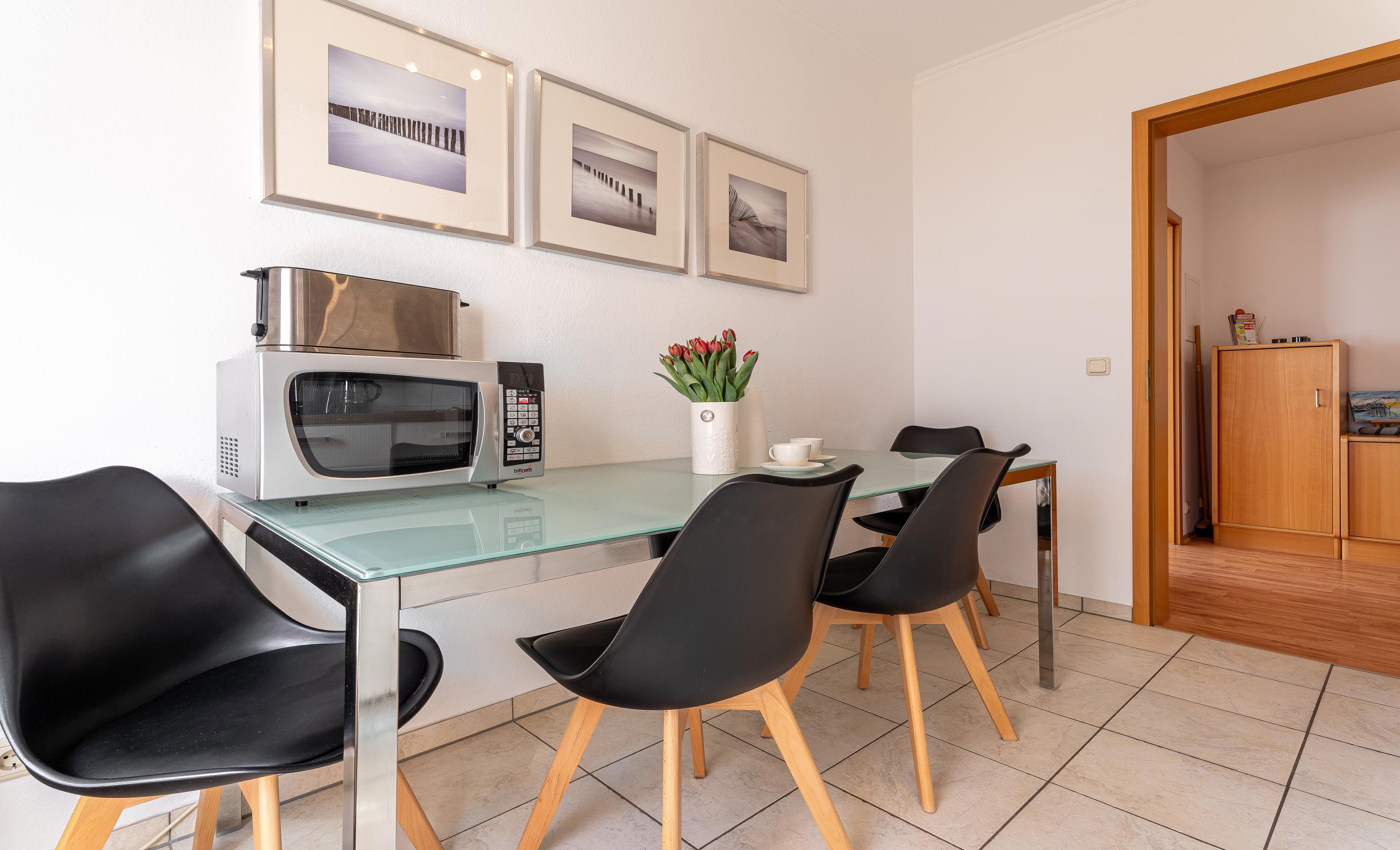 Sie wohnen im Erdgeschoß in einem neu errichteten Appartementhaus, in ruhiger und zentraler Lage. Zum Strand sind es nur ca. 500 Meter. Zwei schöne Balkone, einer in Südausrichtung, laden zum Verweilen ein. Das Appartement ist 62qm groß und ist mit Buchenmöbeln ausgestattet. Im Wohnzimmer lädt ein moderner Bio-Kamin zum Ausklang eines romantischen Abends ein. Es hat eine separate Küche und ein modernes großzügiges Bad mit Wellnessdusche und einem beheizten Handtuchhalter. Es bietet insgesamt sechs Schlafplätze (zwei Schlafsofas (140x200) im Wohnzimmer, Doppelbett (180x200) im Schlafzimmer). Die Böden sind mit stilvollem Laminat und Fliesen ausgelegt. Die Wohnung verfügt über einen eigenen Stellplatz und einen abschließbaren Fahrradraum. Die Ausstattung der Ferienwohnung Vineta lässt keine Wünsche offen. Dazu zählen WLAN, Smart-TV mit Streamingfunktion, DVD-Surroundanlage, DVD-Filme, Bücher, CD-Radio, Mikrowelle, Geschirrspüler, Backofen, Kaffeemaschine, Senseo-Kaffeepadmaschine, Kühl-/Gefrierkombi, Wassserkocher, Toaster, Föhn, Babybett, Babyhochstuhl und vieles mehr.