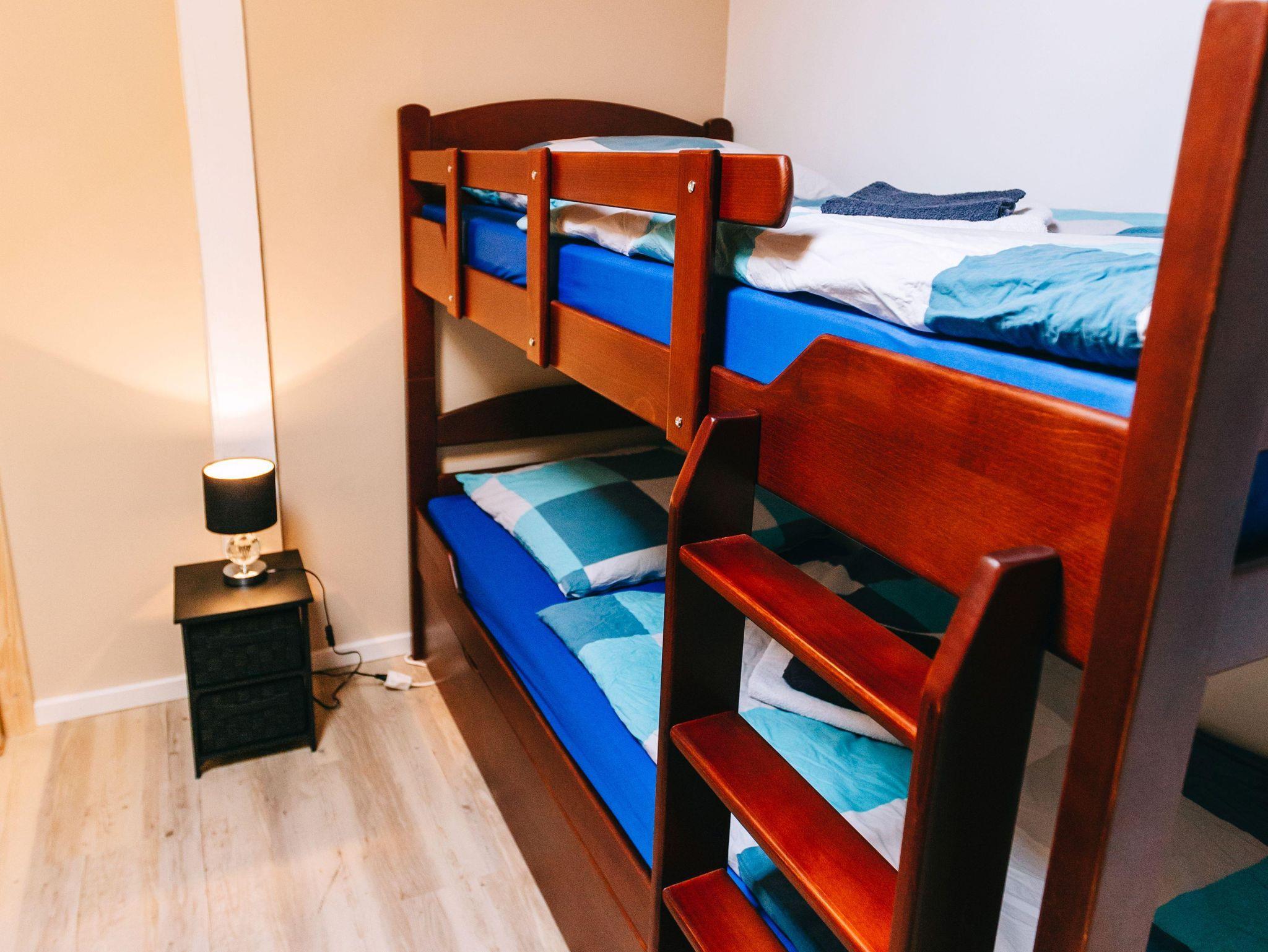 Ein 2. Schlafzimmer mit Erwachsenenstockbett und einem Zusatzbett (Schubkasten) inkl. zusätzlichem Wc.