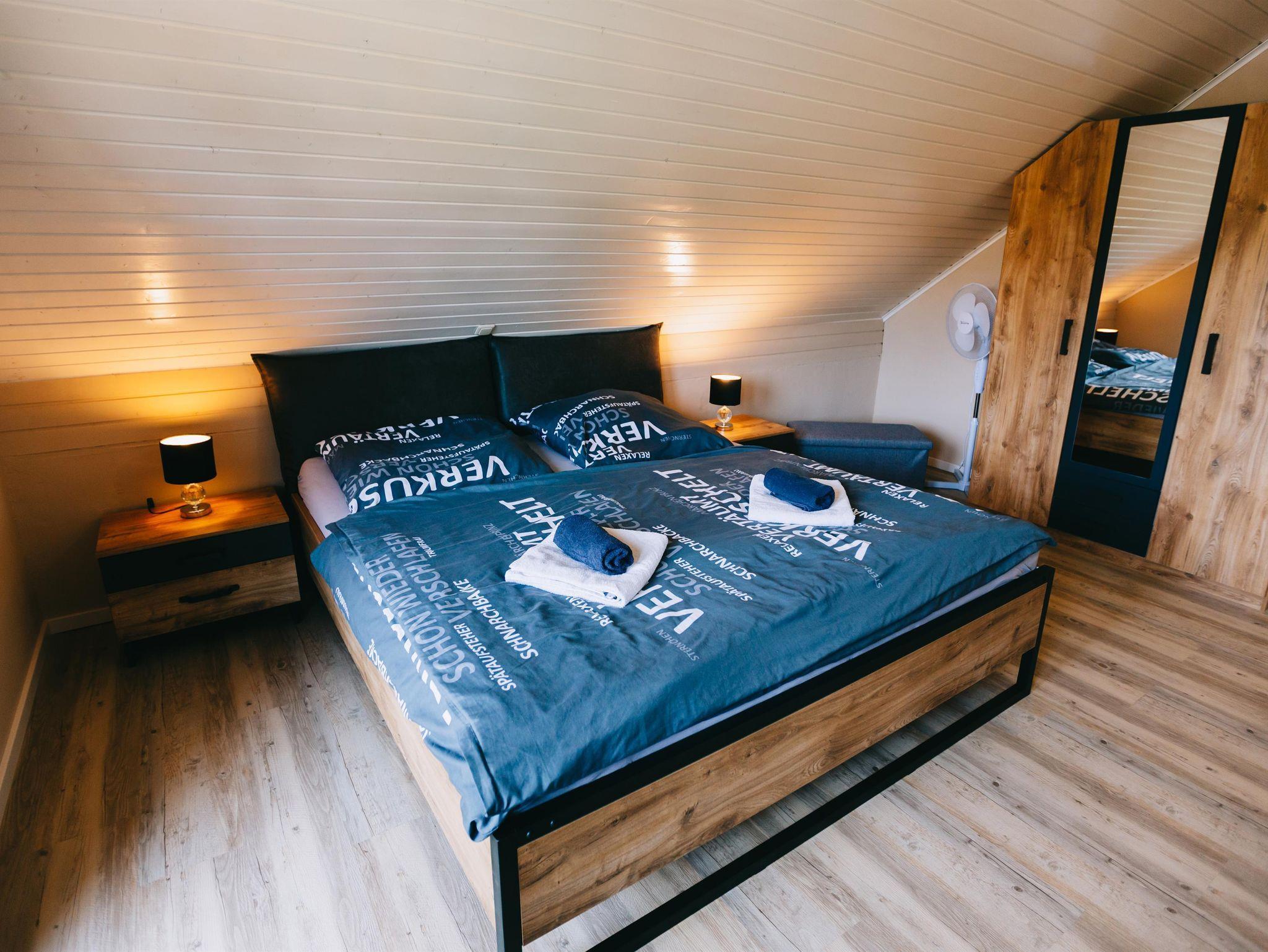 Zusätzlich steht ein Kleiderschrank mit ausreichend Platz im Schlafzimmer zur Verfügung.