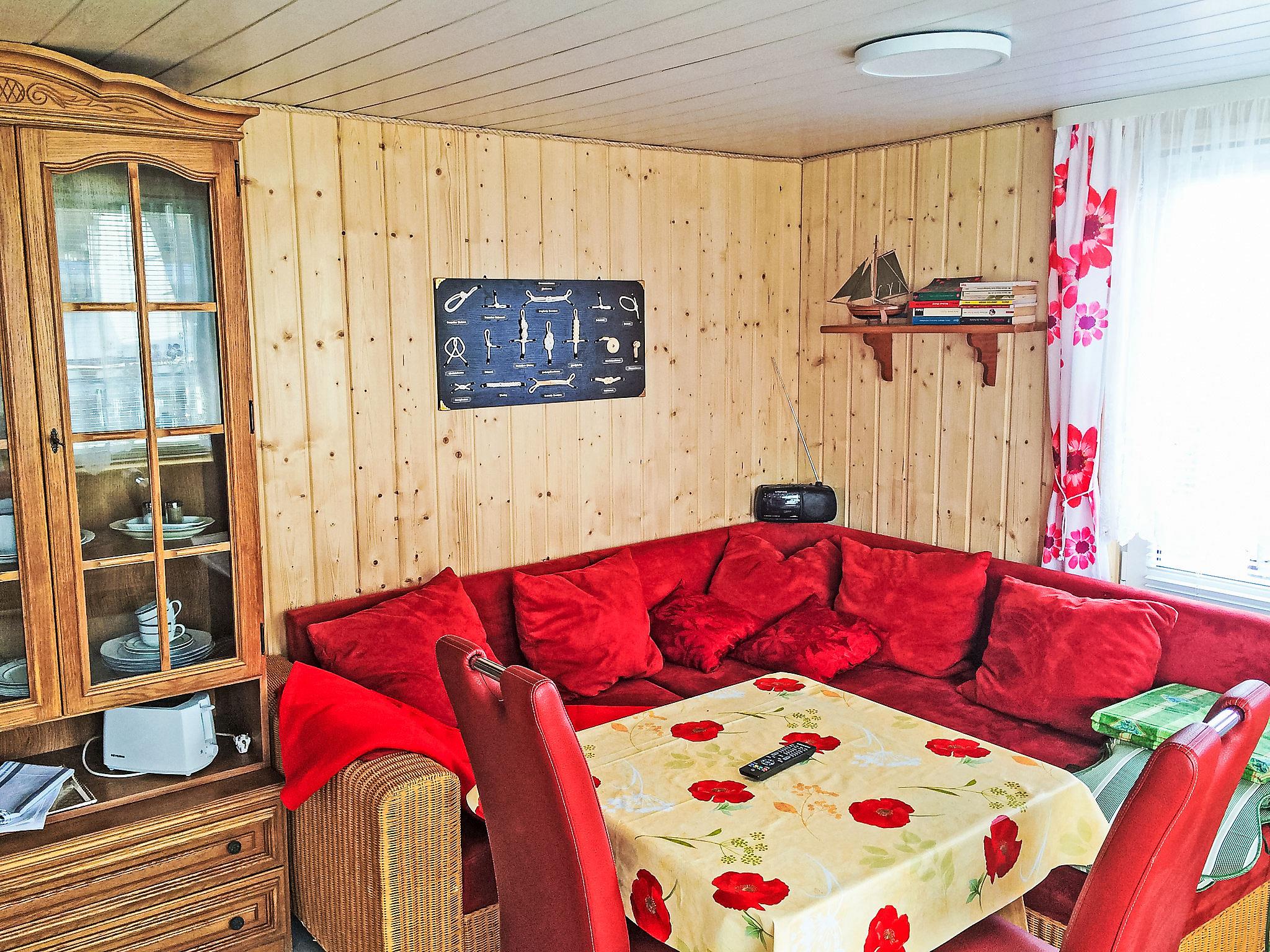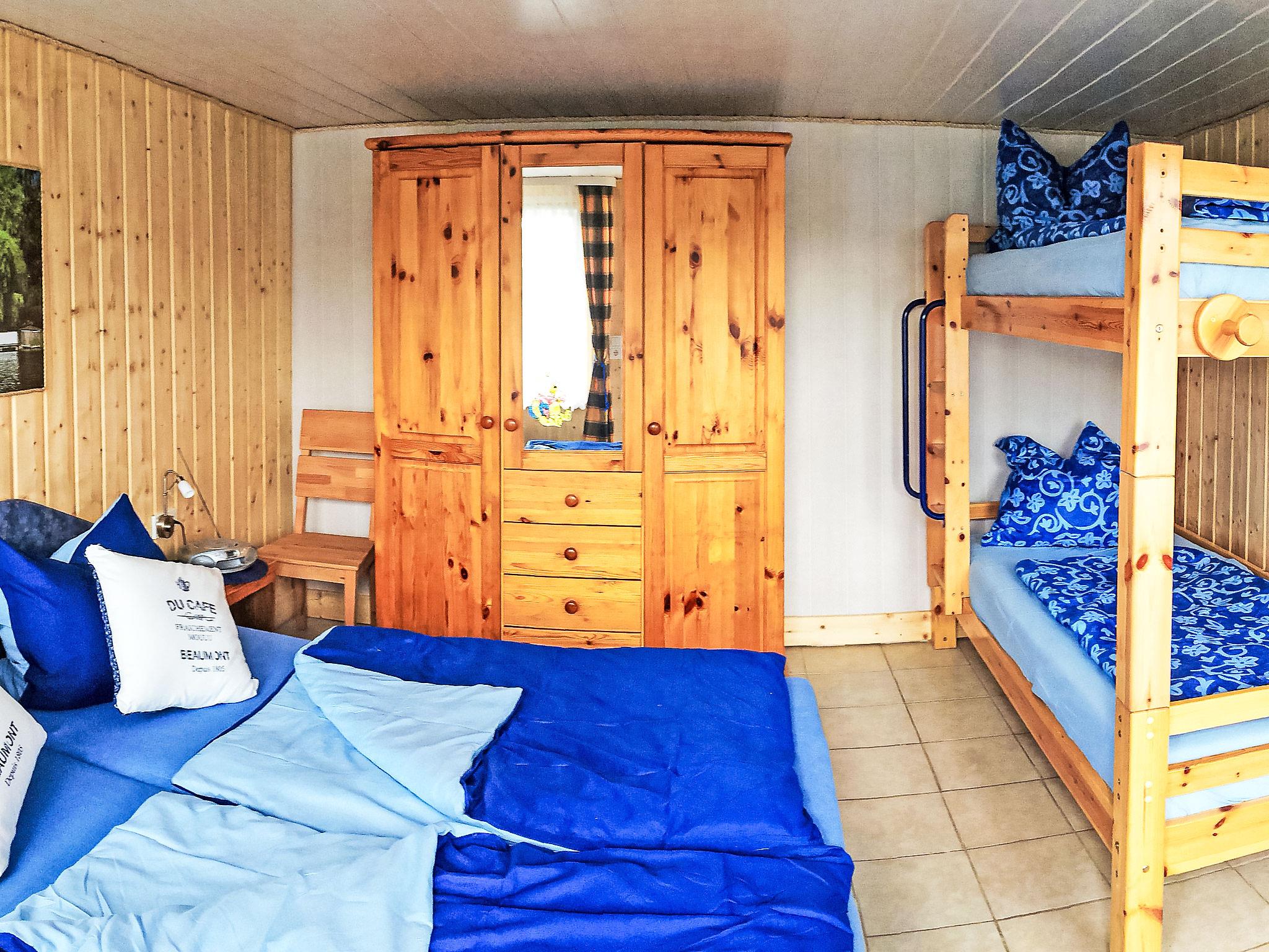 2-Zimmer-Haus 36 m2, im Erdgeschoss. Einfach eingerichtet: Wohn-/Esszimmer mit Sat-TV und Radio. Ausgang zur Terrasse. 1 Zimmer mit 1 x 2 Etagenbetten, 1 Doppelbett (2 x 80 cm, Länge 190 cm). Kochnische (2 Kochplatten, elektrische Kaffeemaschine). Dusche/WC. E-Heizung. Terrasse 9 m2, überdacht. Terrassenmöbel. Schöne Sicht auf den See. Parkplatz. Bitte beachten: Nichtraucher-Haus. Maximal 1 Haustier/Hund erlaubt. Einfache Kochnische.