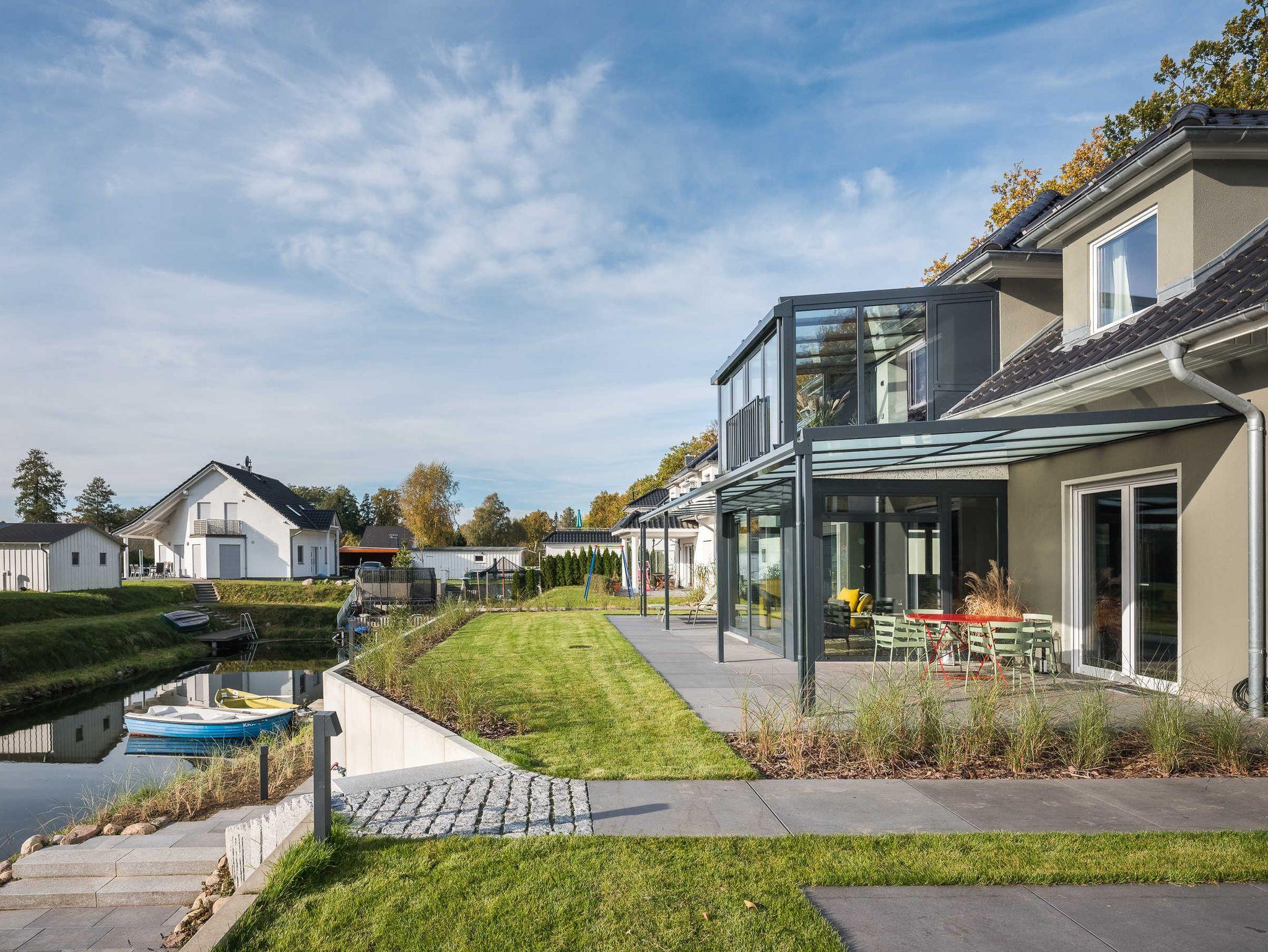 Extravagant und luxuriös in traumhafter Wasserlage. Das Ferienhaus RabenNest empfängt seine Gäste auf zwei Etagen.