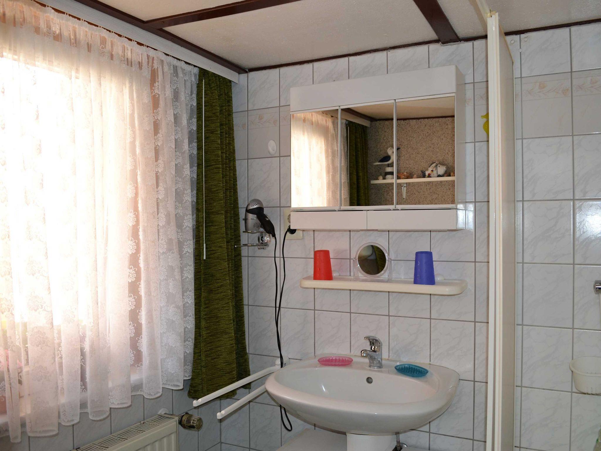 Der Wohnraum ist mit einer Sitzgarnitur, Couchtisch und Schränkchen sowie einem Regal ausgestattet. Neben Sat- TV steht ein Radio zur Verfügung. Das Schlafzimmer hat ein Doppelbett, Nachttische, Kleiderschrank und eine Truhe als Stauraum.