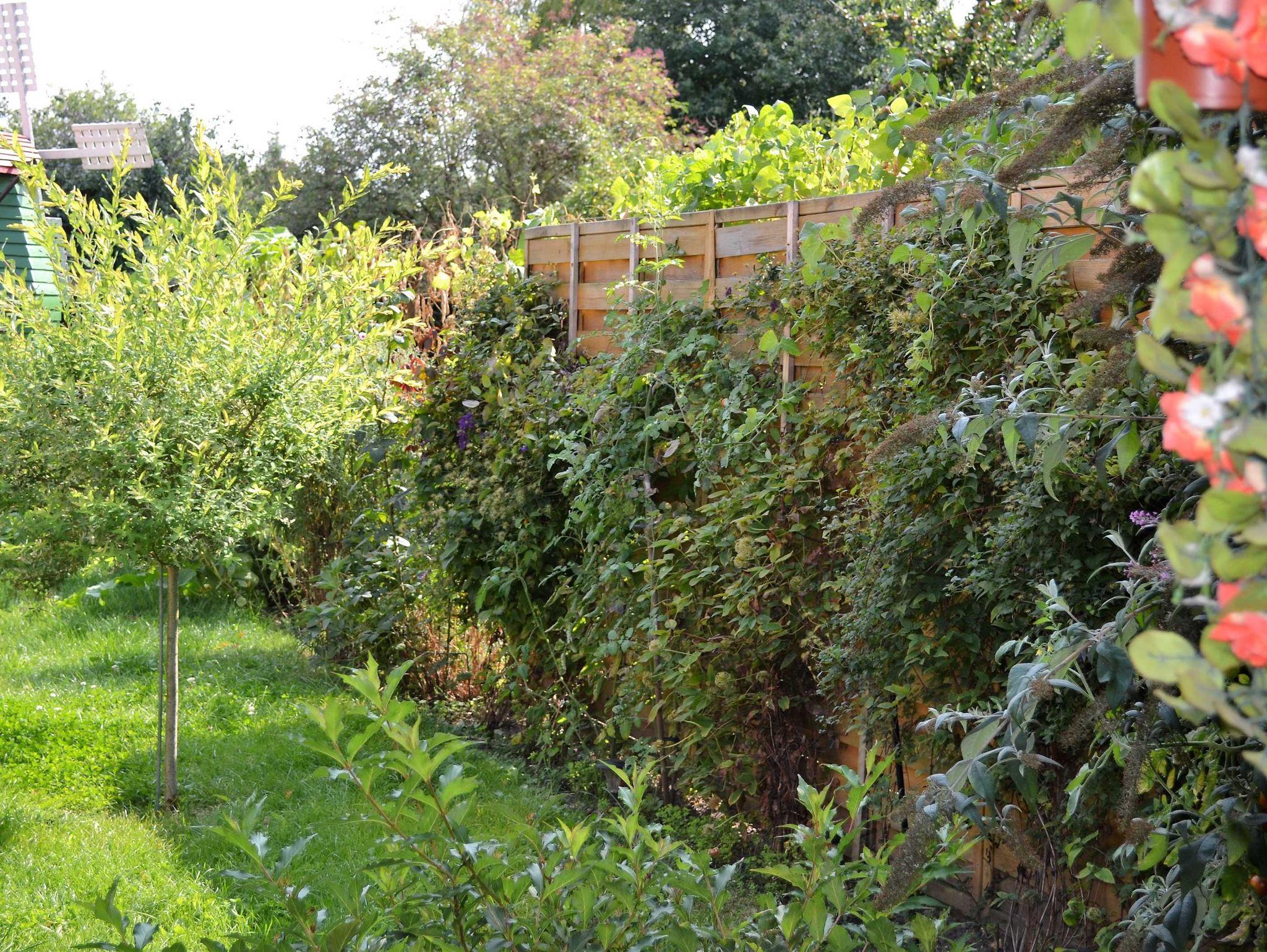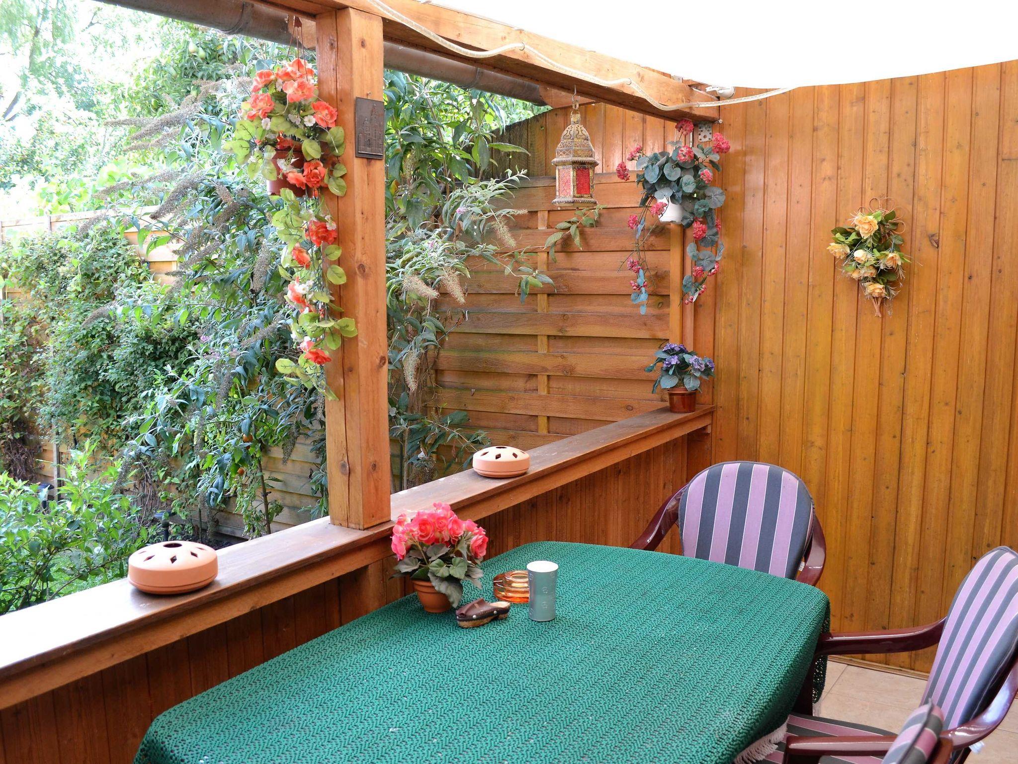 Über die Veranda mit Sitzgruppe gelangt man in die Küche und in das Bad sowie in einen kleinen Flur, der zum Schlafraum und zum Wohnraum führt. Vom Wohnraum aus kommt man auf eine überdachte Terrasse mit Gartenblick.