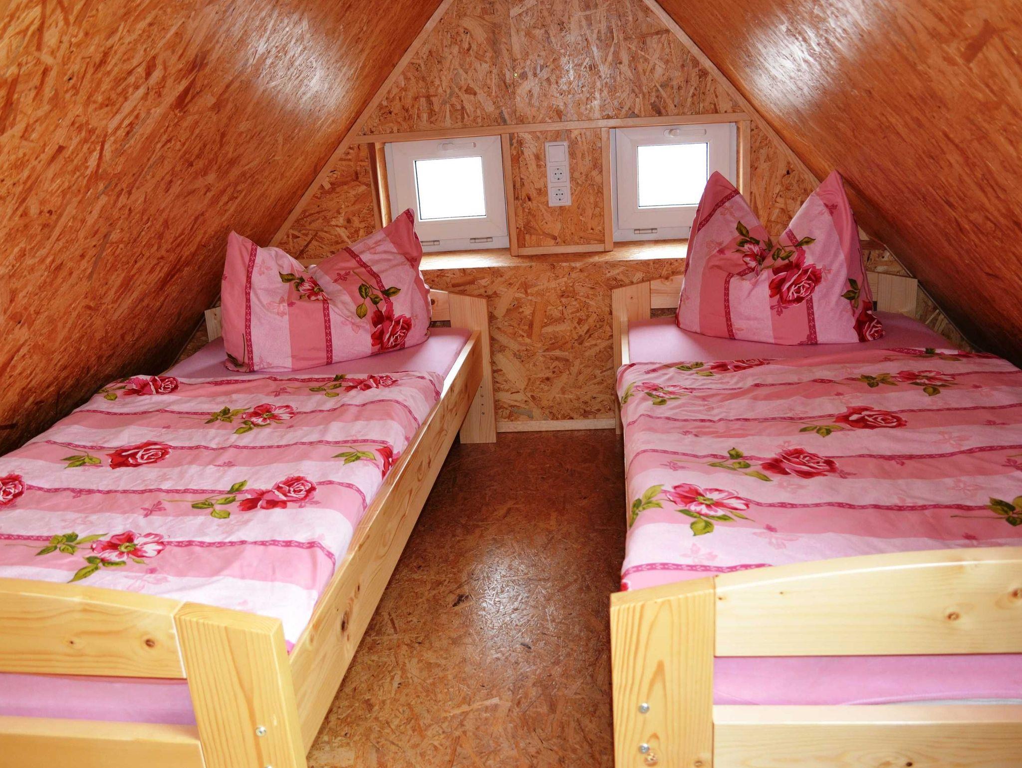 Auf ca. 50 m² Wohnfläche verteilen sich Eingangsbereich, eine Küche, die zum Wohnraum offen ist sowie das Bad. Über eine Treppe erreicht man den gemütlichen Schlafboden mit 2 Betten. Eine Kleiderstange sowie ein Regal stehen als Ablage für Garderobe zur Verfügung.