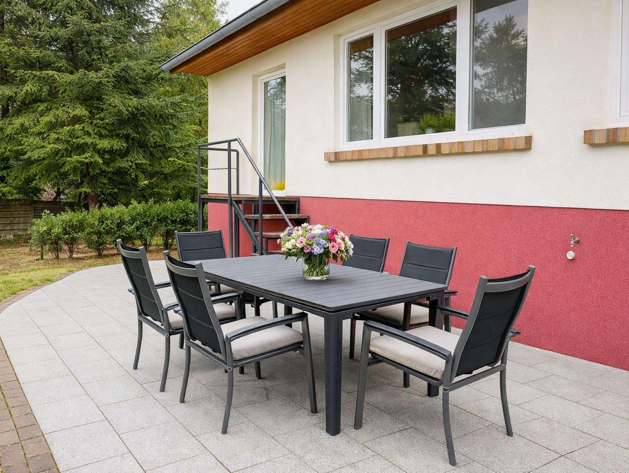 Der Garten mit gemütlicher Sitzecke und Grill lädt zum Entspannen ein.