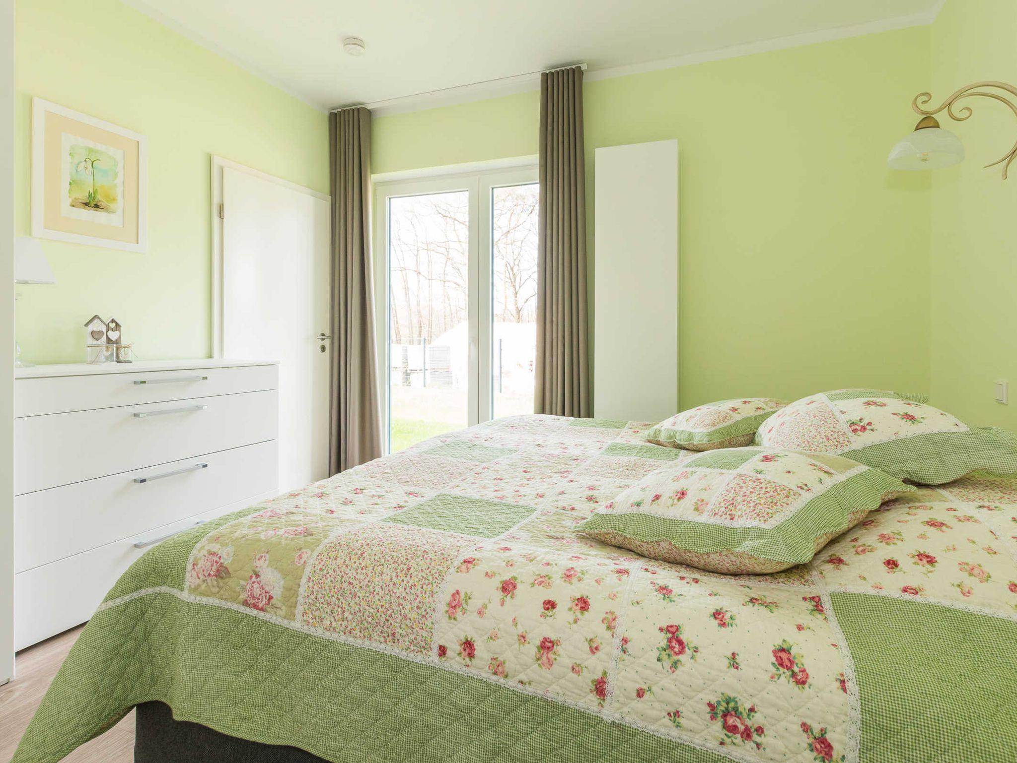 Weiterhin befindet sich im Erdgeschoss ein Schlafzimmer mit einem großen, hochwertigen Boxspringbett und elektrischen Rollläden.