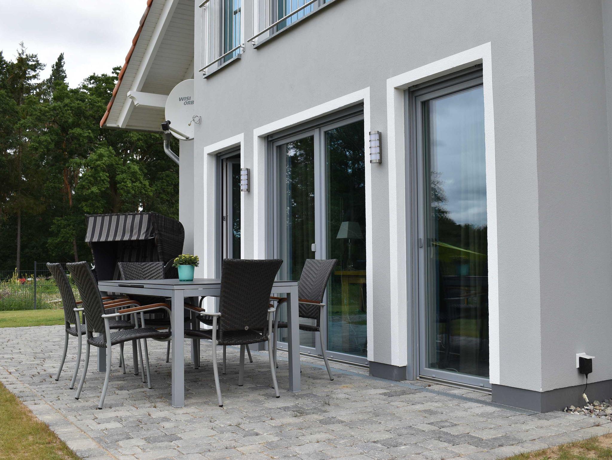 Auf der großen Terrasse genießen Sie viel Platz und können es sich bei einem ausgiebigen Frühstück in der wohltuenden Morgensonne oder beim entspannten Zusammensein am Abend gutgehen lassen.