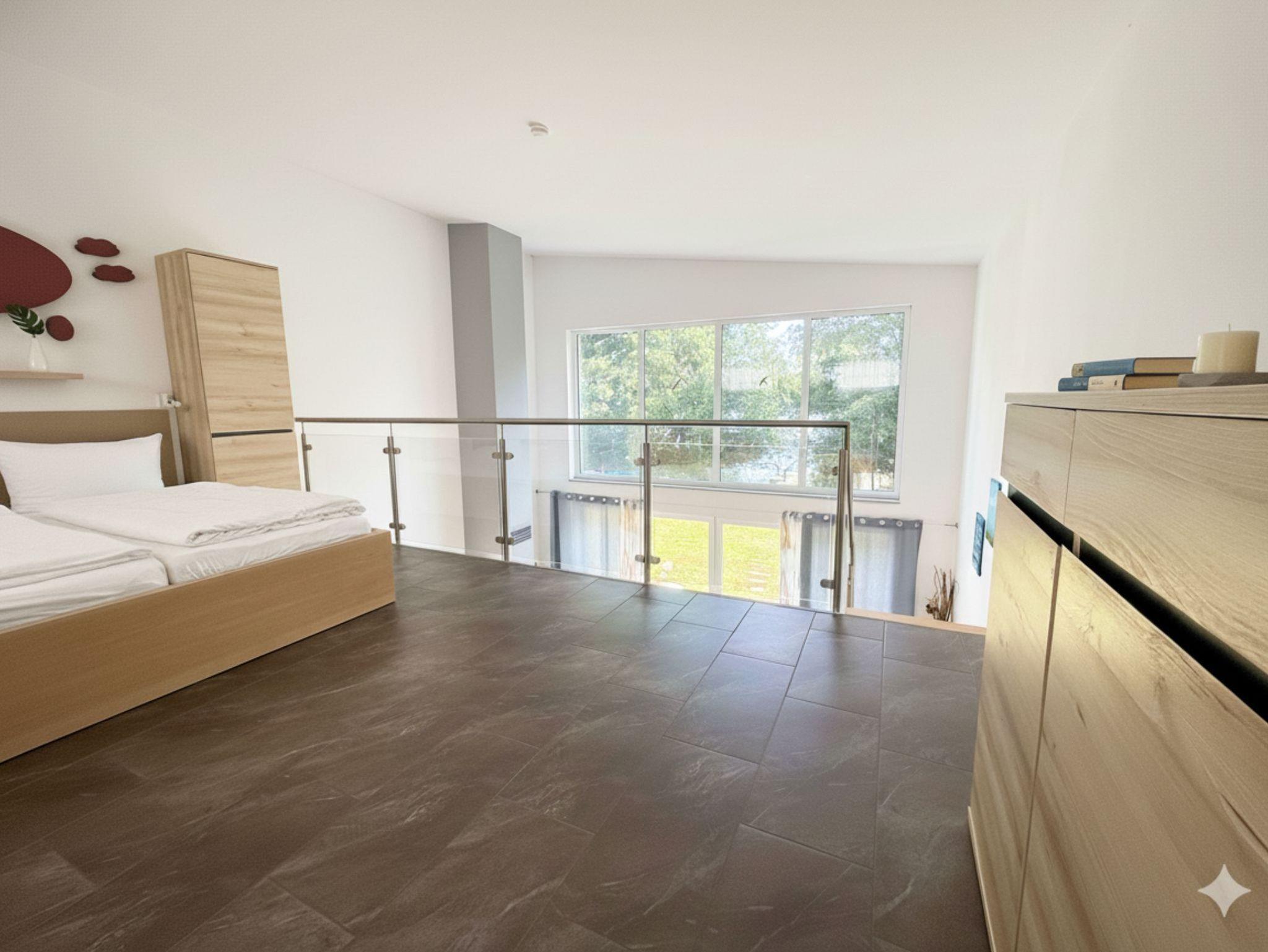 Lichtdurchflutete Glasfronten öffnen den Blick über den glitzernden See bis zum Aussichtsturm am gegenüberliegenden Ufer. Das sanfte Plätschern an der Badestelle vor den Terrassen, das Knistern des Kamins am Abend und der Sternenhimmel über dem Steg schaffen einen Ort, an dem Natur, Entspannung und Leichtigkeit miteinander verschmelzen.