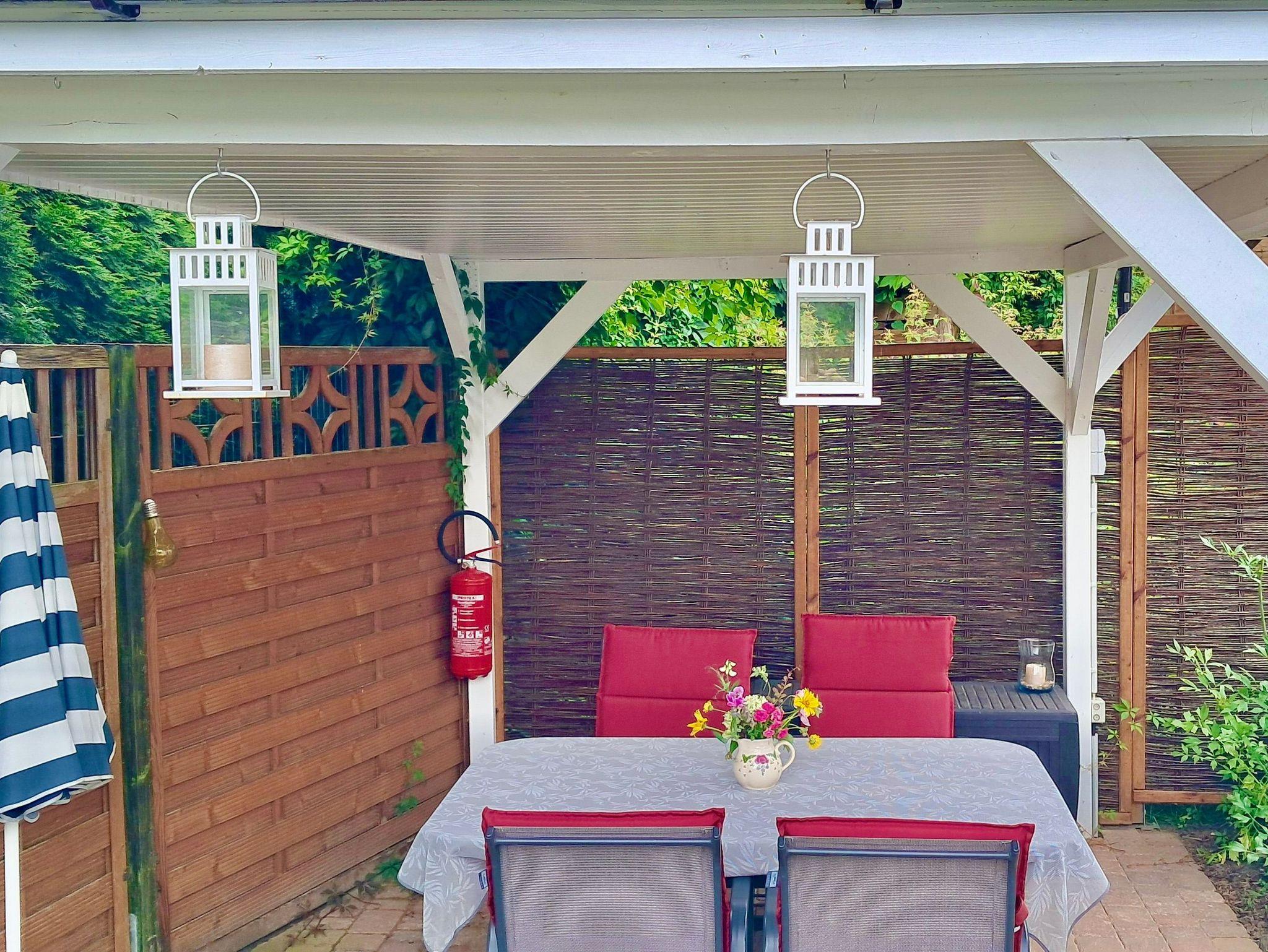 Genießen Sie unser komfortables Ferienhaus mit einer großzügigen Wohnfläche, einer gemütlichen überdachten Terrasse, Gartenmöbeln, zwei Relaxliegen, Grillmöglichkeiten und einer Schaukelbank auf der Sonnenwiese. Ein abgeschlossener Fahrradunterstand ist ebenfalls auf dem Grundstück vorhanden. Kostenfreie Parkmöglichkeiten (max. 2 Autos) stehen Ihnen direkt vor dem Haus zur Verfügung, inklusive Carport für ein Auto.
