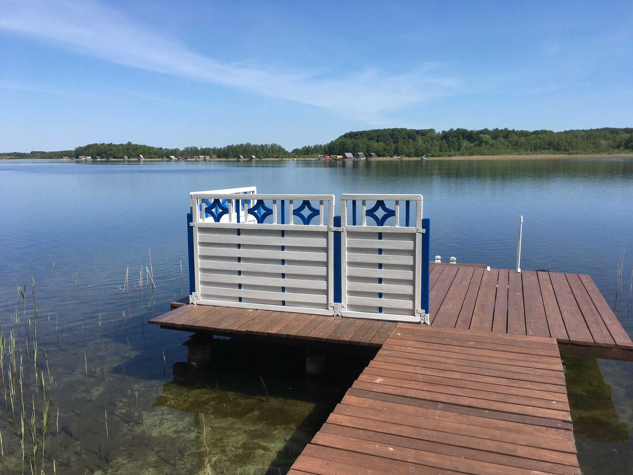 Der hauseigene Bootssteg mit Sitzgruppe und Badeleiter kann mitgenutzt werden. Es besteht Anlegemöglichkeit für ein mitgebrachtes Boot.