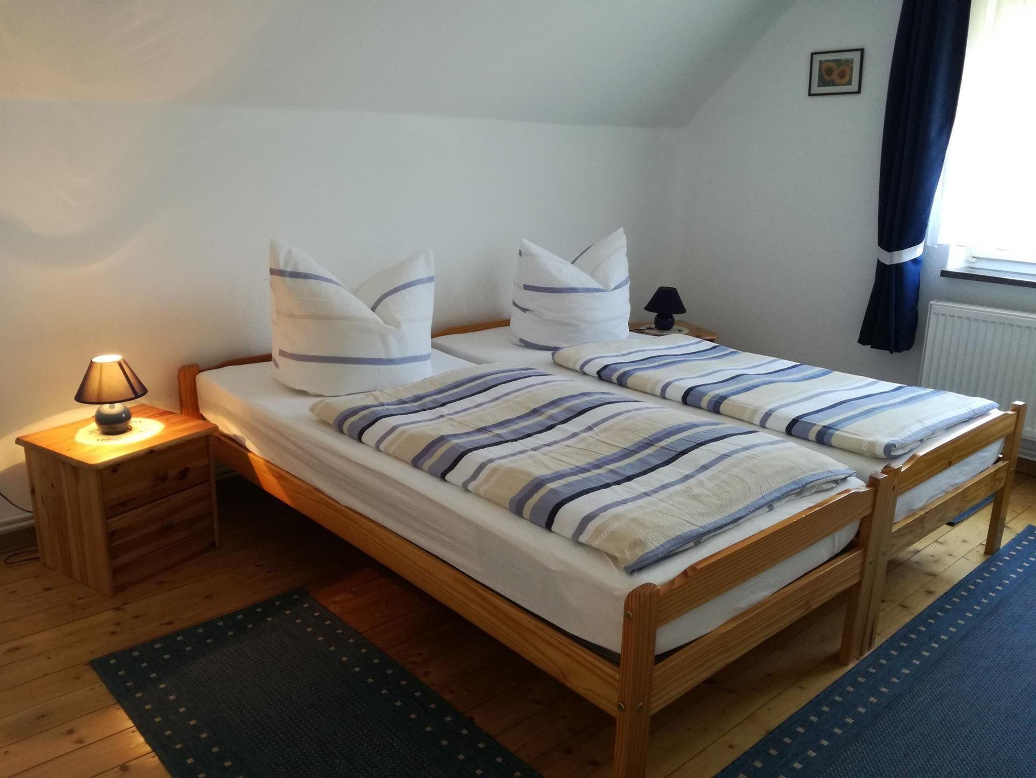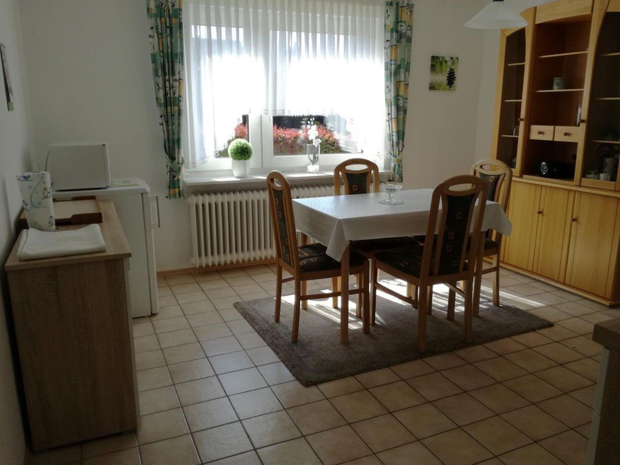 Die ca. 70 qm große Ferienwohnung im Erdgeschoss hat ein Wohnzimmer mit Couchgarnitur, Flachbild Fernseher, Schrank und gemütliche Leseecke. Die separate Küche (neu) mit Backofen, Gefrierschrank, Mikrowelle und gemütlichem Essplatz. Die Schlafzimmer sind aufgeteilt in einem Doppelzimmer mit kompletter Einrichtung und ein Einzelzimmer bei dem auf Wunsch ein Zustellbettchen und Hochstuhl mit rein gestellt werden kann. Die Dusche ist begehbar. Die Wohnung ist behindertengerecht. Handtücher werden kostenlos gestellt. Der Garten mit Gartenmöbeln und Grill steht den Gästen zur Verfügung.