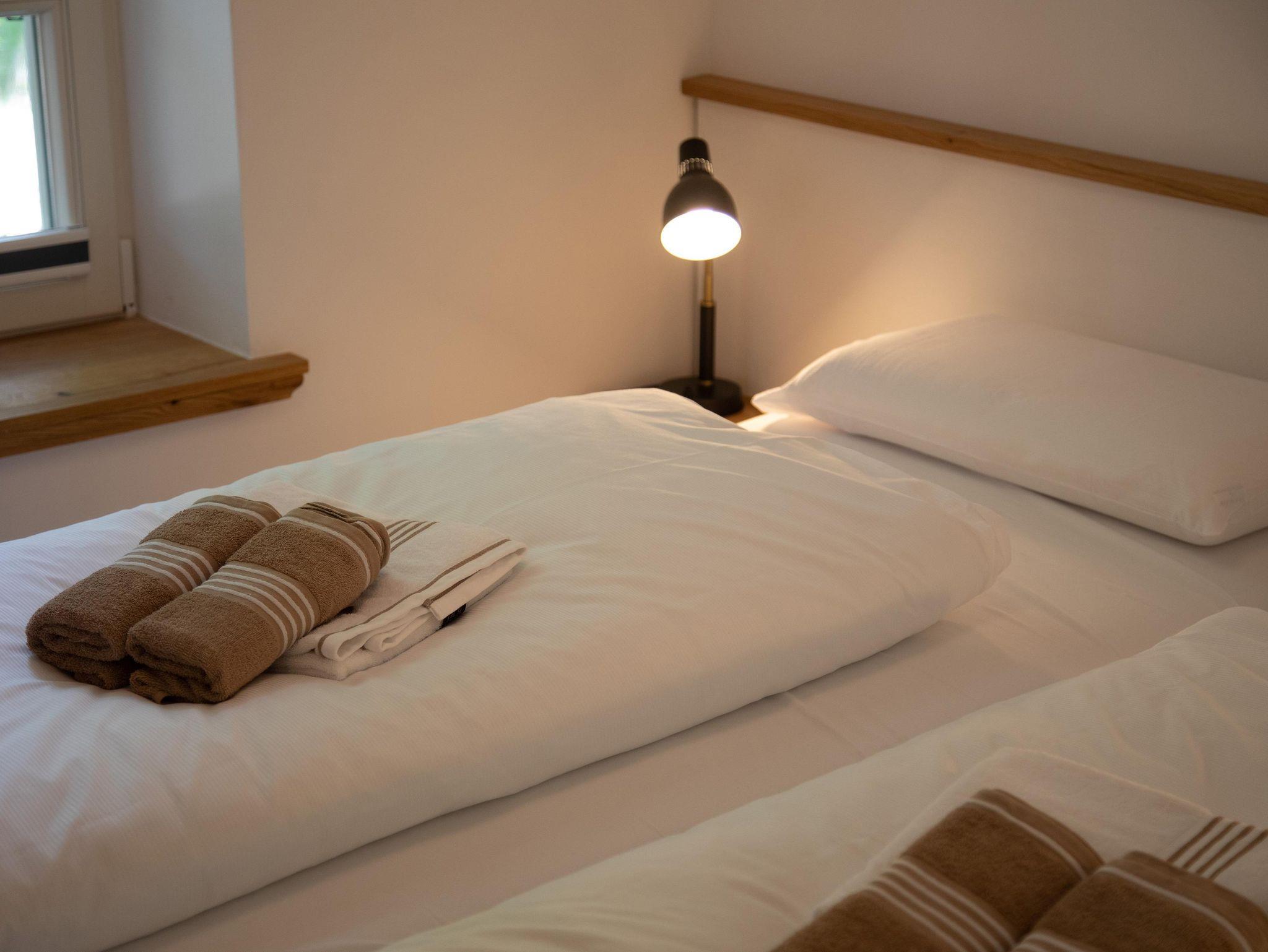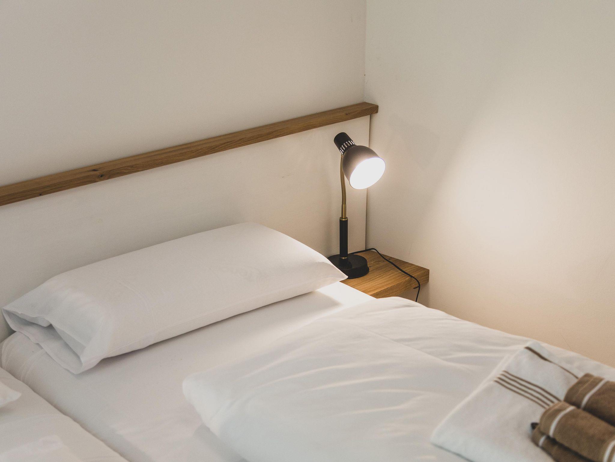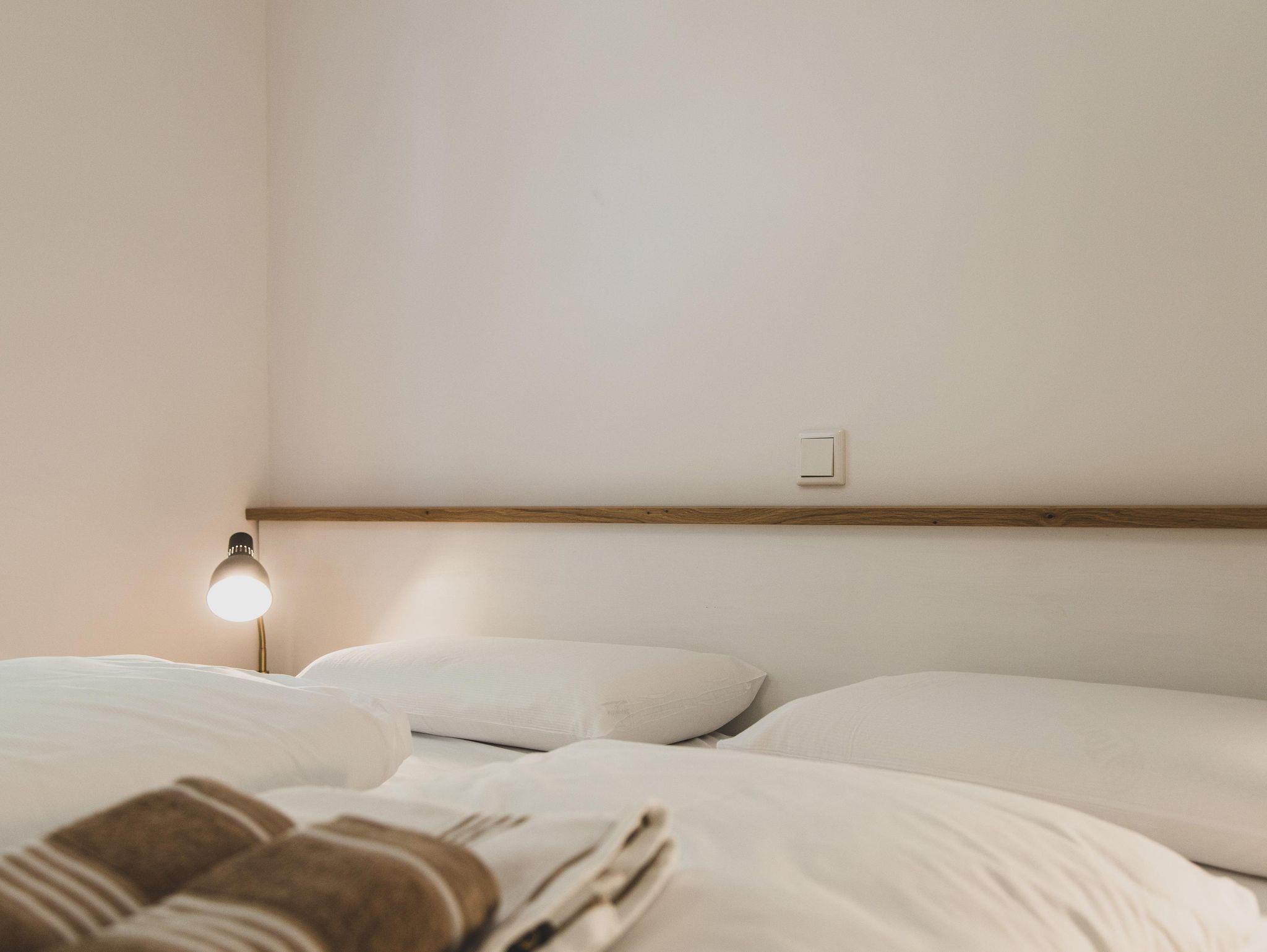 Die Wohnung verfügt über ein Schlafzimmer mit gemütlichem Doppelbett, in welchem Sie zwischen zwei verschiedenen Matratzenhärten wählen können. Das komfortable und moderne Tageslichtbad lässt keine Wünsche offen.