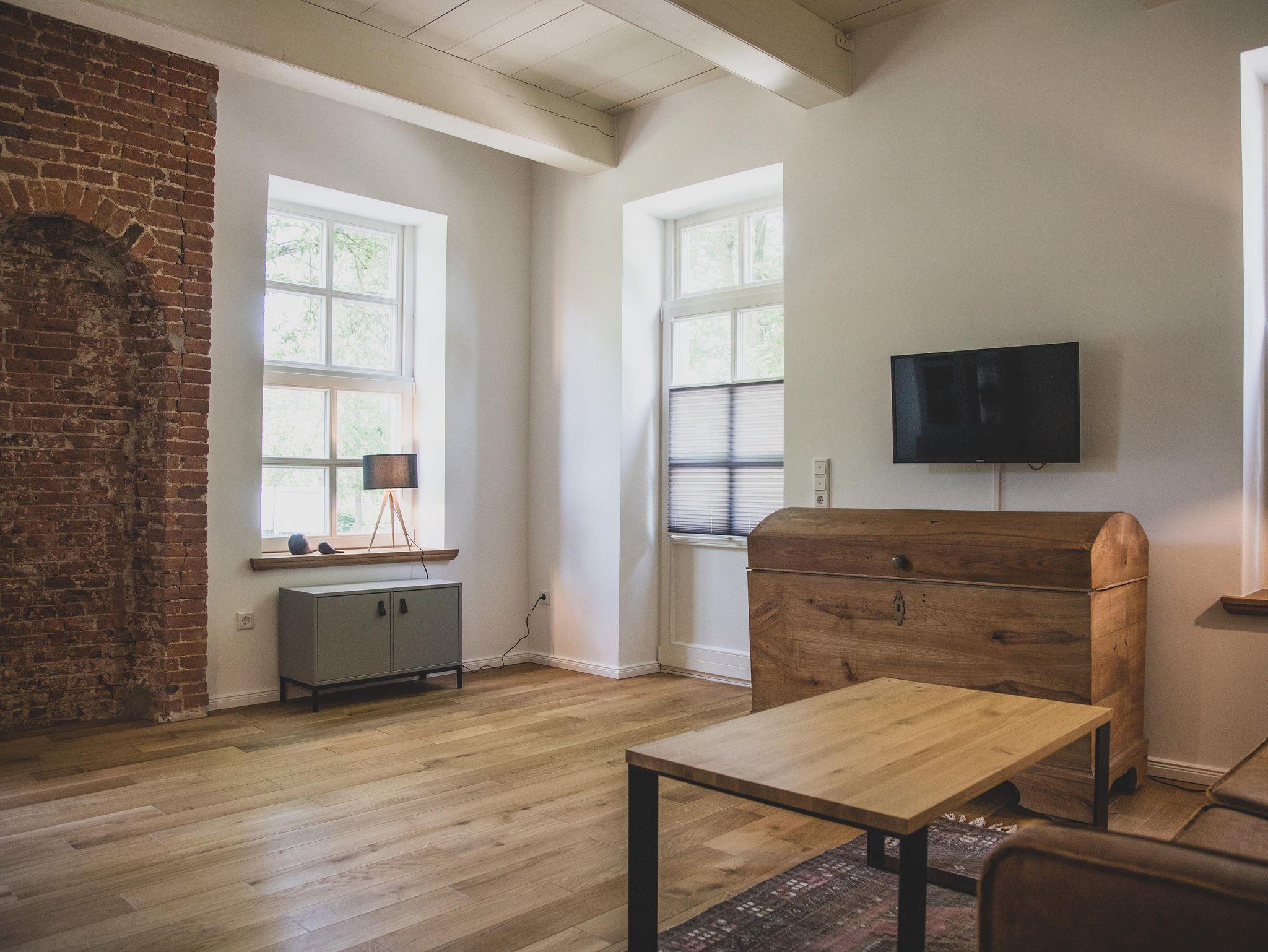 Ihre Gastgeber haben die Wohnung mit viel Liebe zum Detail modern und gemütlich eingerichtet. Hohe Decken, dicke Balken und schöne Echtholzdielen sorgen für ein ganz besonderes Altbauflair. Die großen Sprossenfenster erlauben einen Blick in den Garten. Hier finden Sie auch die Terrasse, wo Sie im Schatten von Apfel- und Birnenbäumen einen Tee, Kaffee oder auch ein Glas Wein genießen können.