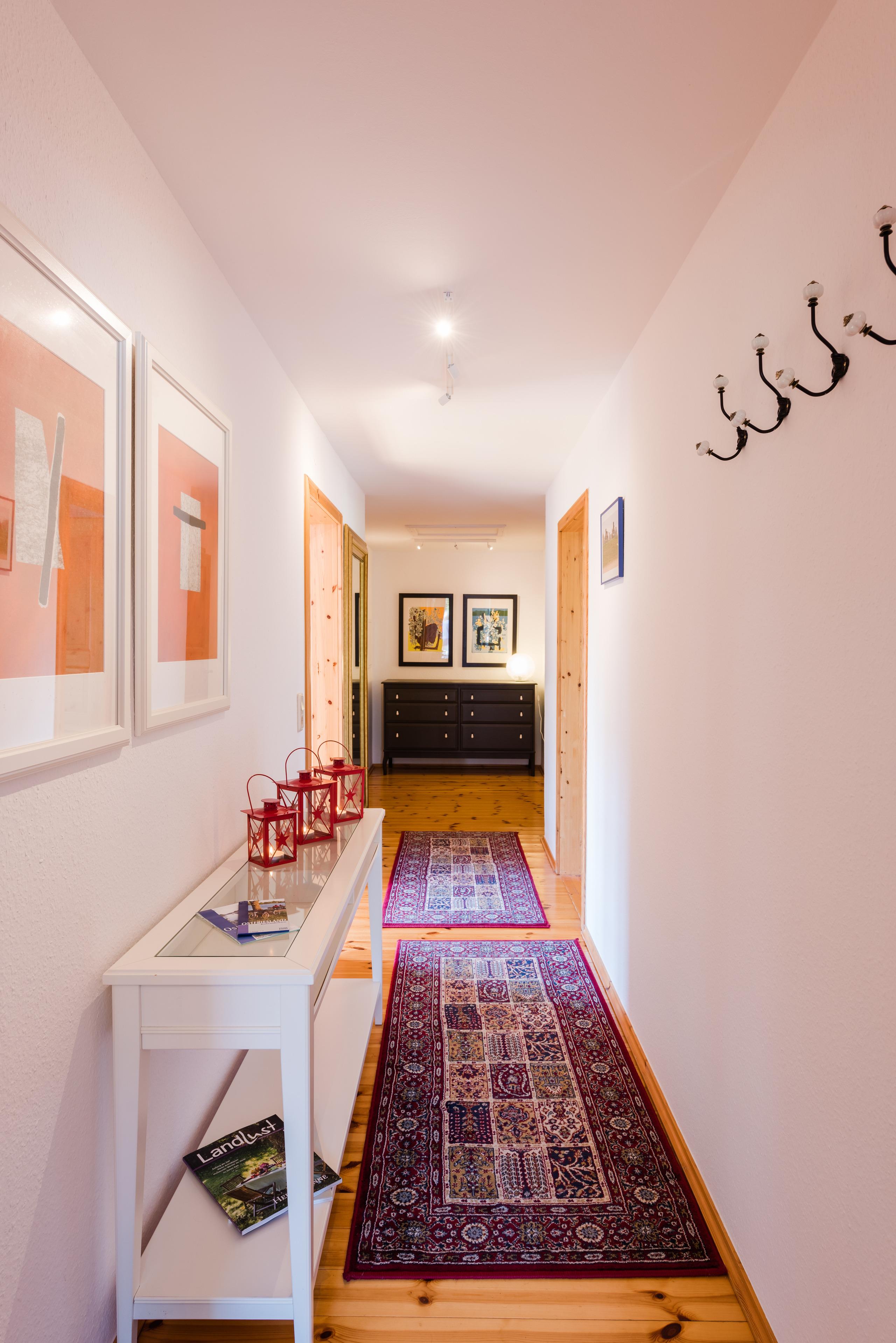 Der "Deichkieker" ist geräumig und sehr großzügig eingerichtet. Die Küche in rotem Lackdesign setzt Akzente. Sie hat alles, was die Ferien schöner macht - und hat schon so manchen zum Kochen verführt. Es gibt ein Doppelbett-Schlafzimmer sowie ein kleines Einzelbett-Schlafzimmer. Das lichtdurchflutete Wohnzimmer ist modern eingerichtet - mit einigen antiken Ergänzungen.