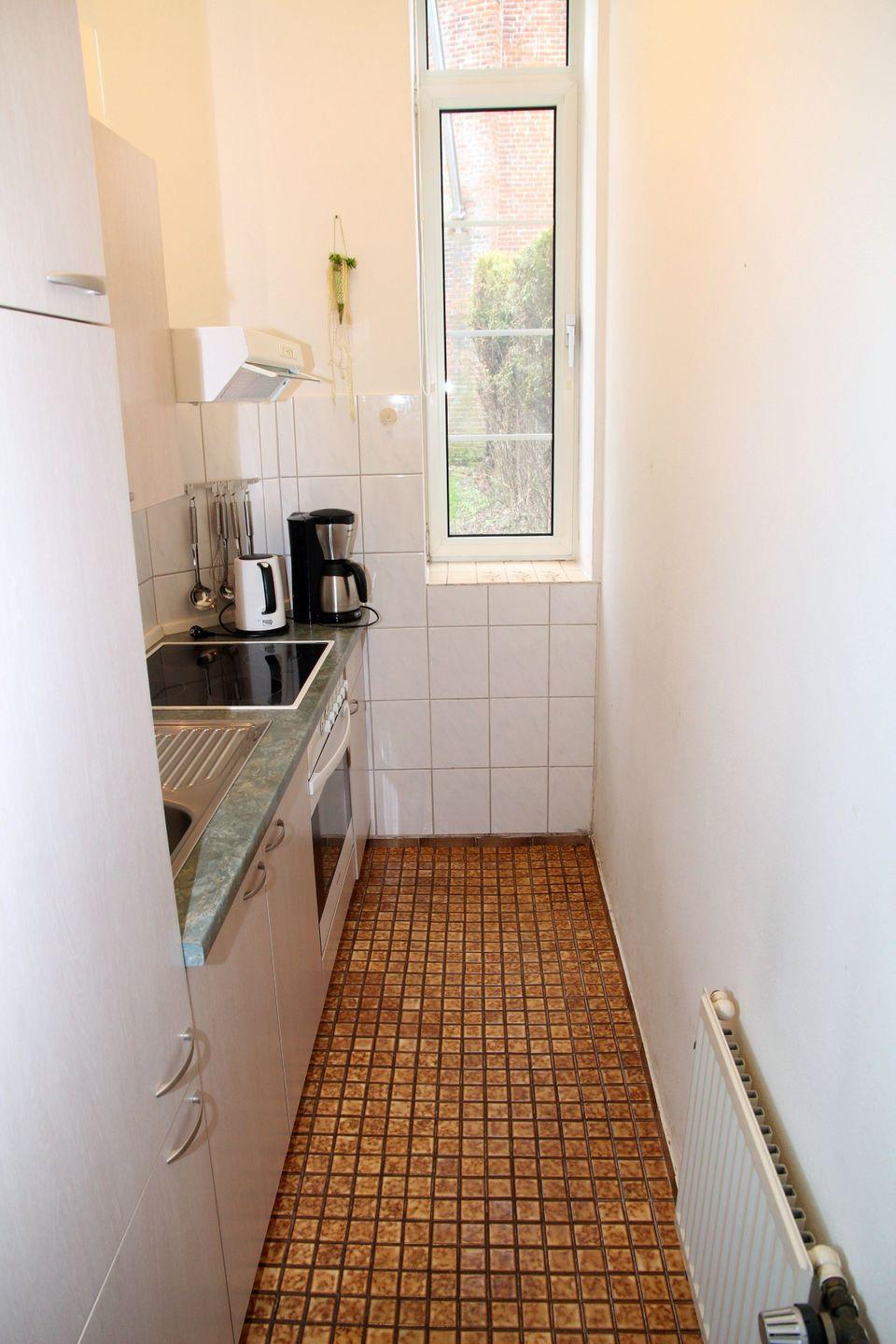 Die Erdgeschosswohnung "Aletta" bietet auf großzügigen 50qm Platz für bis zu 2 Personen. In dieser Wohnung finden Sie ein separates Wohnzimmer mit Fenster zum Garten, eingerichtet mit L-Sofa, Schrankwand und Fernseher. Angrenzend befindet sich das Esszimmer und direkt daneben die Küche. In der Küche finden Sie Cerankochfeld, Backofen, Kühlschrank, Wasserkocher, Toaster, Kaffeemaschine, Senseo-Padmaschine und Spülbecken. Bitte beachten Sie, dass keine Spülmaschine und auch kein Gefrierfach vorhanden sind. Das Badezimmer mit Fenster (saniert Anfang 2025) verfügt über eine Dusche, Fön, Waschbecken und WC. Im Schlafzimmer finden Sie ein Doppelbett und einen großen Kleiderschrank.
