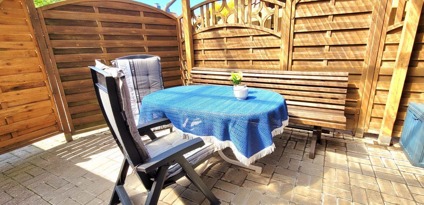 Ein Highlight des Hauses ist die überdachte Terrasse, die mit gemütlichen Gartenmöbeln ausgestattet ist und Ihnen die Möglichkeit bietet, die frische Nordseeluft zu genießen. Hier kann hervorragend bei einer Tasse Ostfriesentee relaxt oder ein gutes Buch gelesen werden.