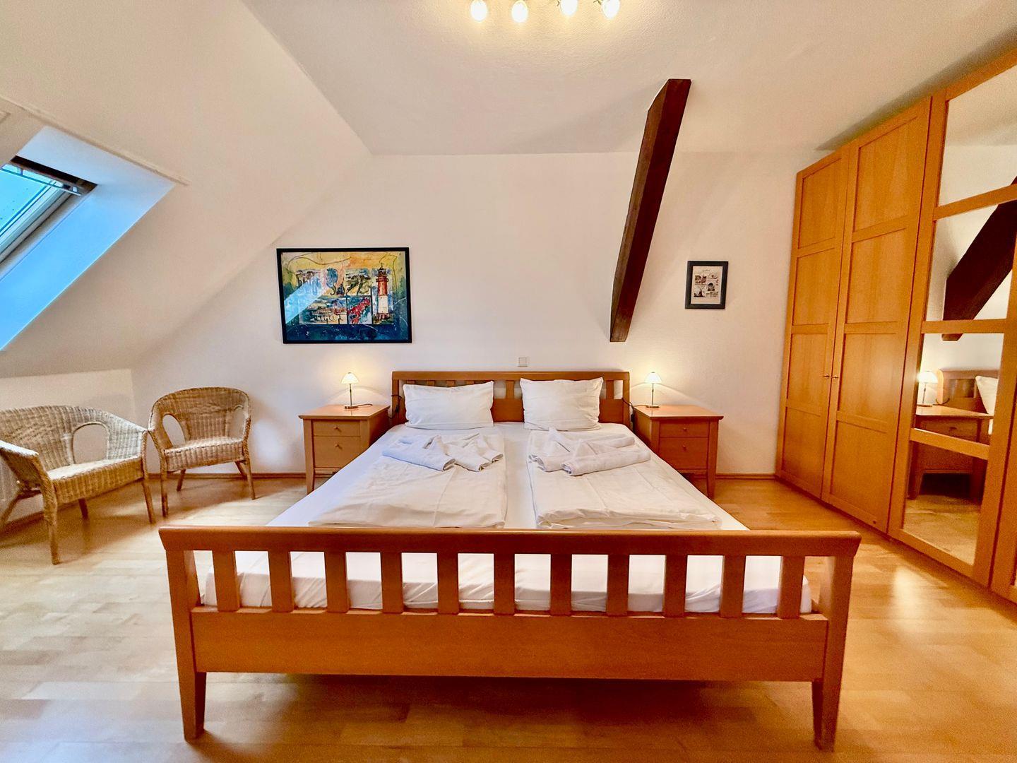 Die großzügige Komfort-Ferienwohnung „Visquard“ liegt im 1. Obergeschoss zur Deichseite und bietet Platz für bis zu 4 Personen auf zwei Ebenen. Genießen Sie den herrlichen Blick über den Kutterhafen und die Hafenausfahrt.