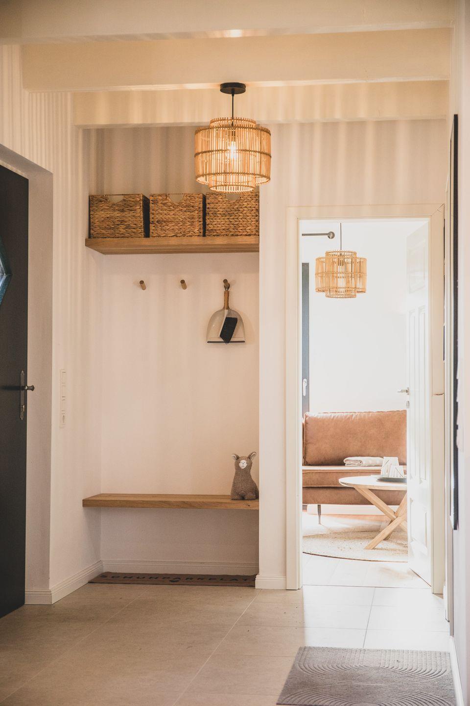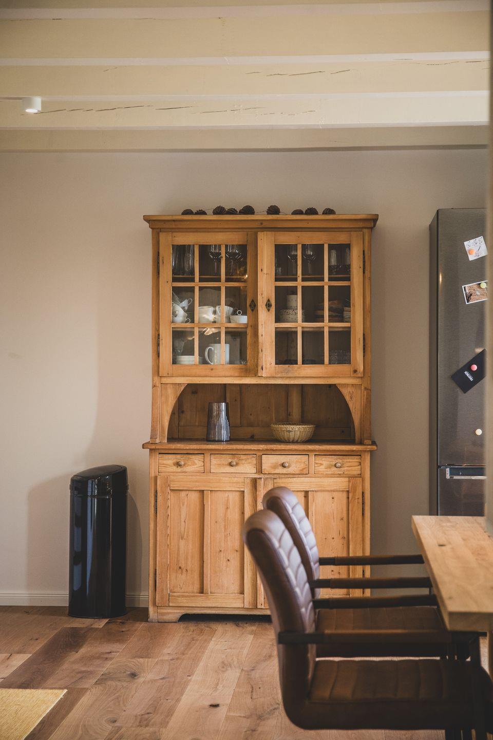 Die Ferienwohnung erstreckt sich über zwei Ebenen und verfügt über einen separaten Eingang, der nicht über die große Eingangshalle des Gulfhofs führt. So genießt ihr zusätzliche Privatsphäre und könnt direkt in euer eigenes Urlaubsreich eintreten.