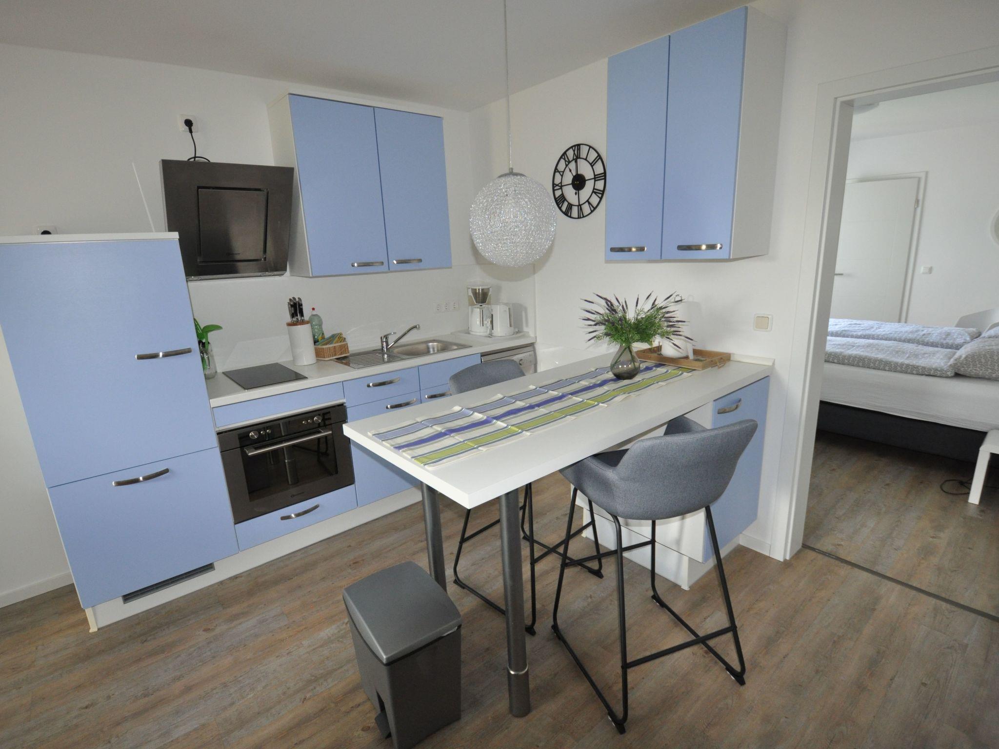 Gemütliche Ferienwohnung auf der Halbinsel Gnitz mit Balkon, moderner Küche und Nähe zum Achterwasser.