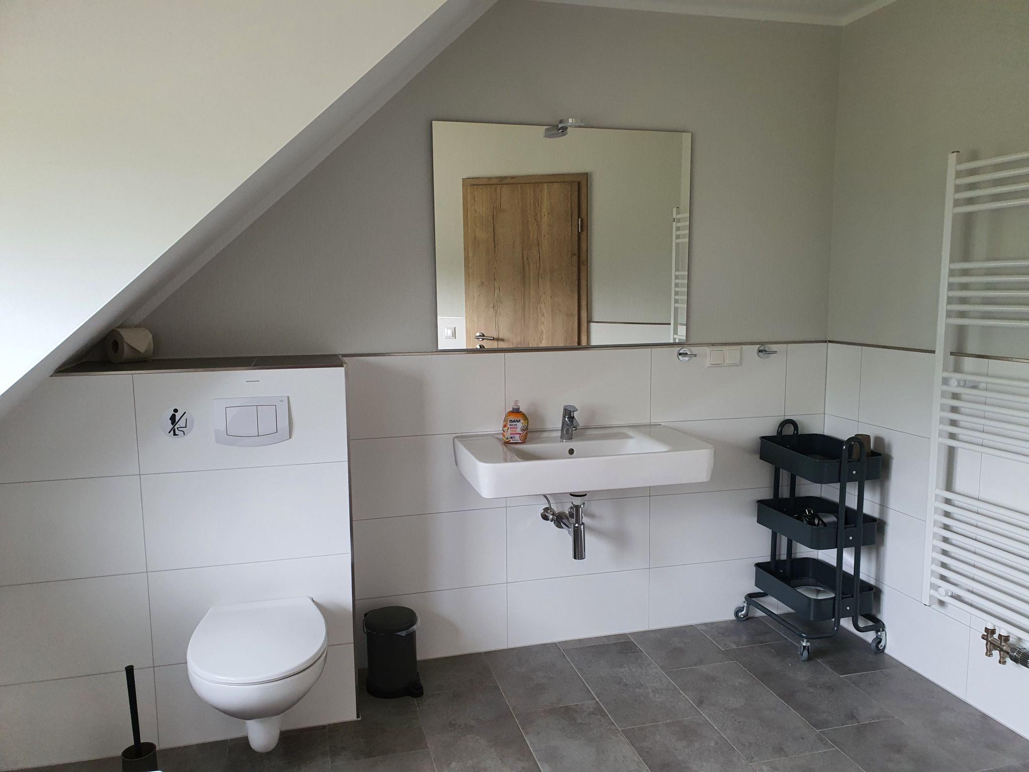 Ihre Ferienwohnung im ersten Obergeschoss hat eine Wohnfläche von ca. 100 qm und ist für die Unterbringung von vier Erwachsenen (und 2 Kleinstkinder) hervorragend geeignet. Im Obergeschoss erwartet Sie ein großer, kombinierter Wohn- und Essbereich mit einer gemütlichen Couchecke. Eine große Küche sowie ein Wannenbad befindet sich auch auf der Etage. Im Dachgeschoss sind die zwei Schlafzimmer mit je einem großen Boxspringbett 1,80 m breit (mit durchgehender Matratze) und ein schönes Duschbad mit Tageslicht.