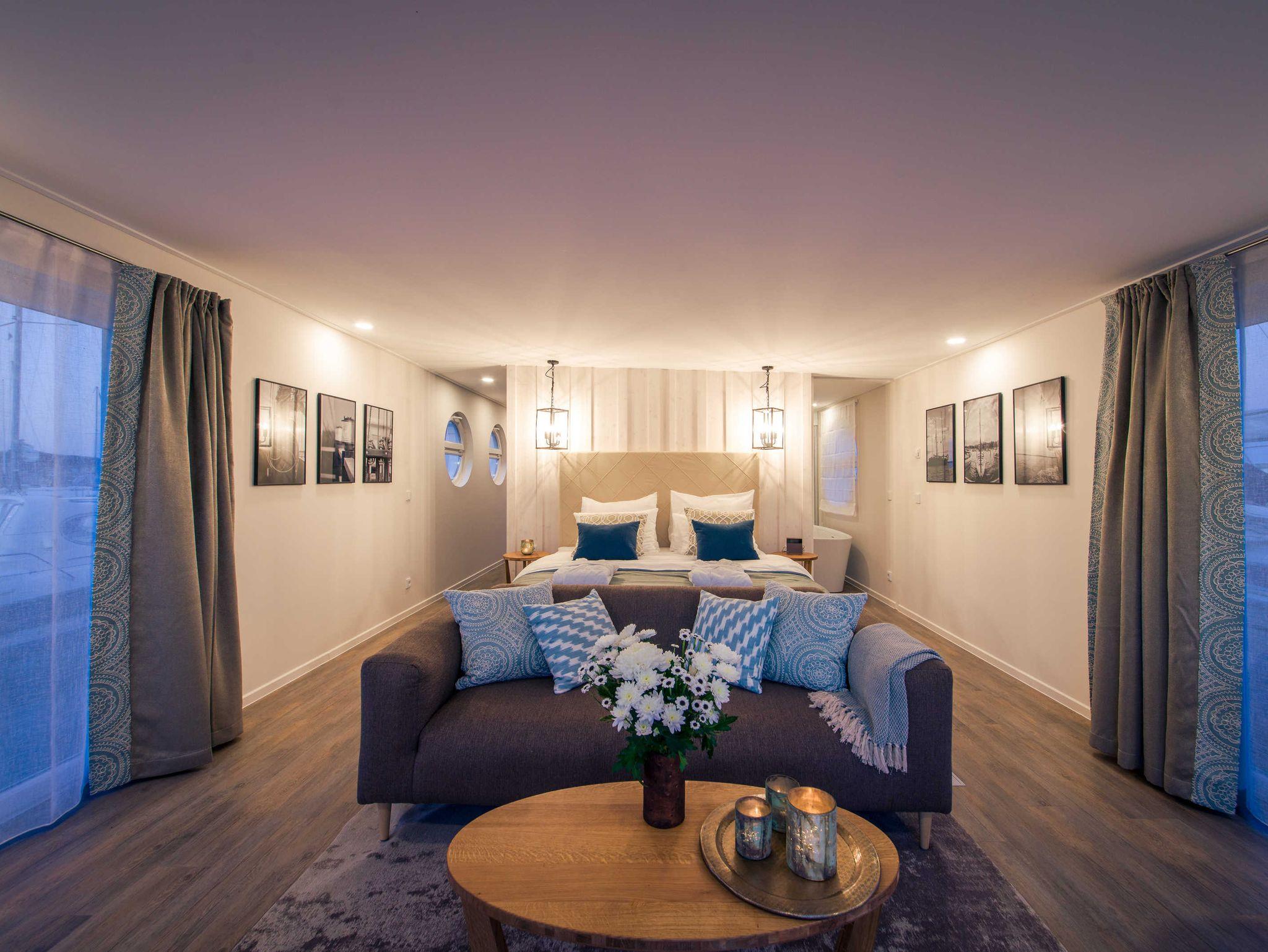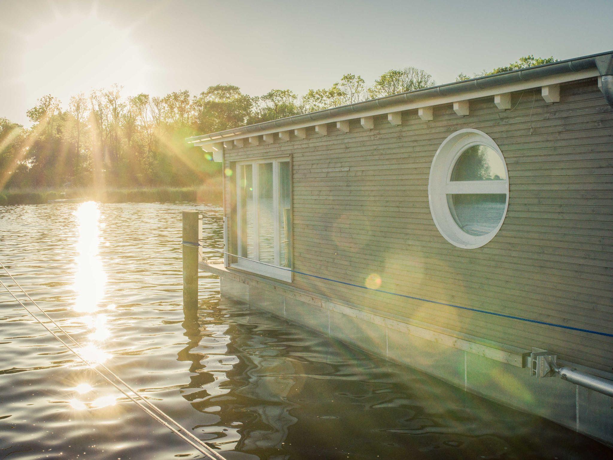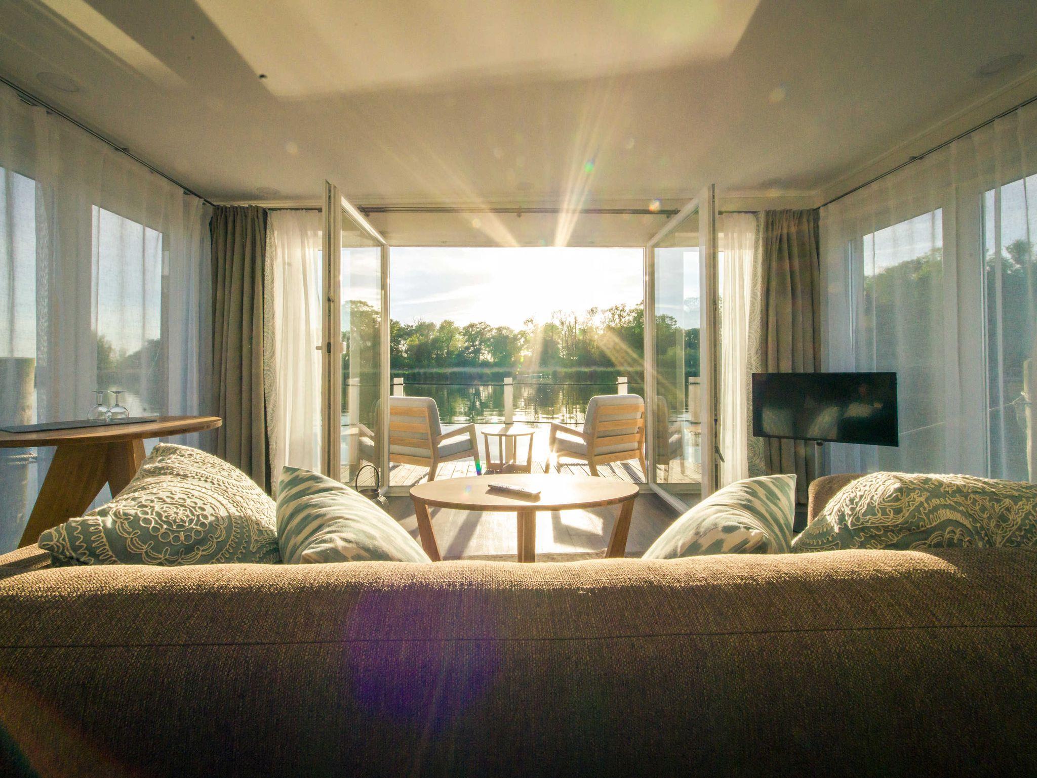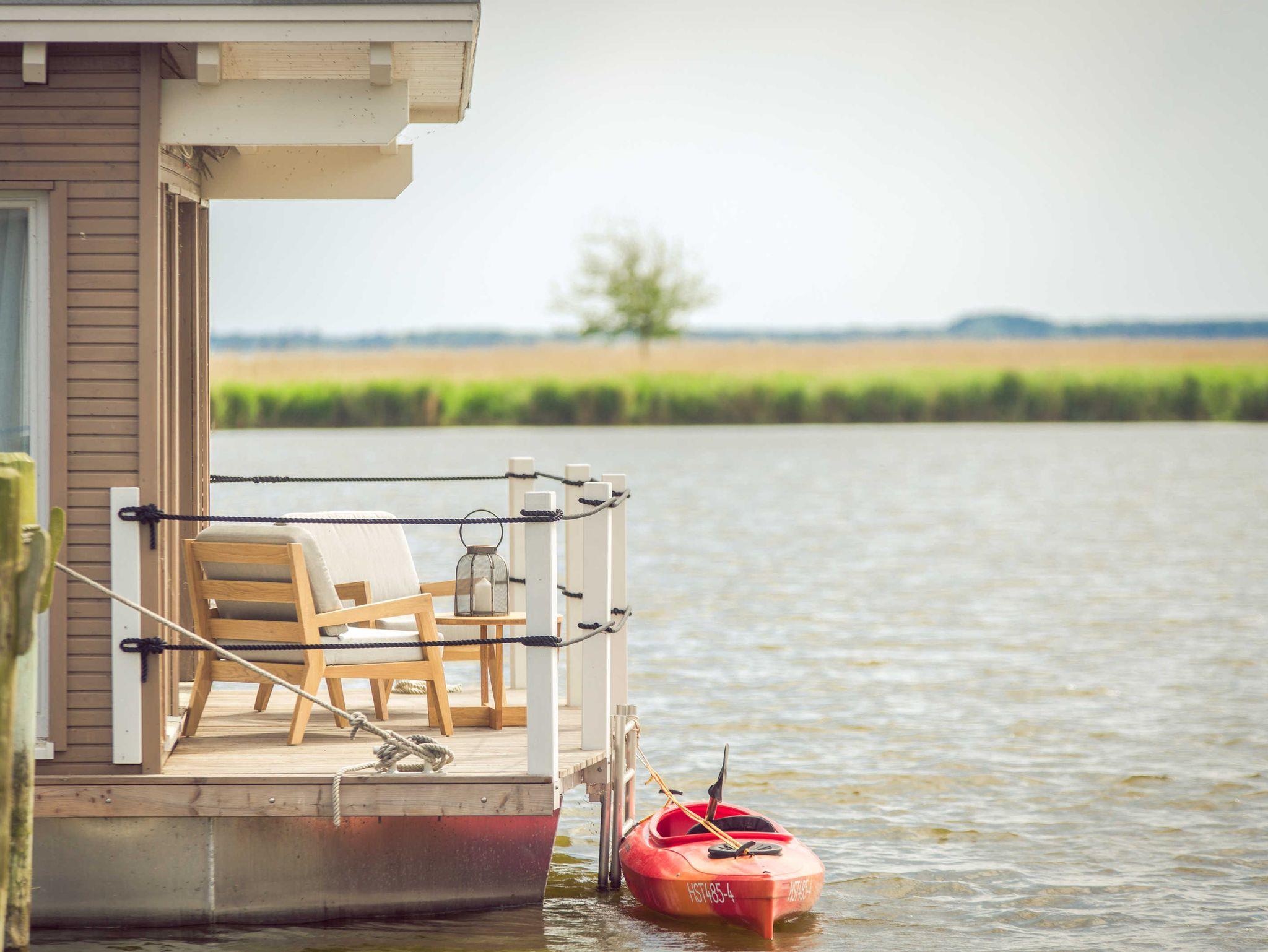 Exklusive schwimmende Suite mit Panorama-Blick auf die Krumminer Wiek in der 4-Sterne Marina Naturhafen Krummin auf Usedom.