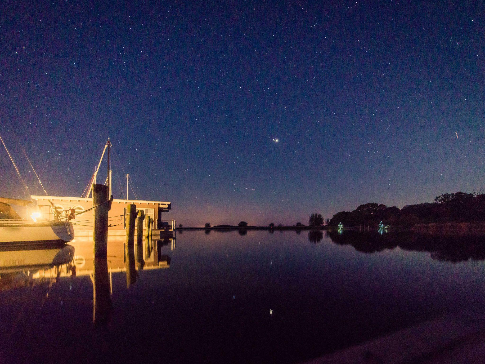 Abends lädt die Terrasse mit einem Panorama-Blick über die Krumminer Wiek zu einem Glas Wein und einen Blick in den Sternenhimmel ein.
