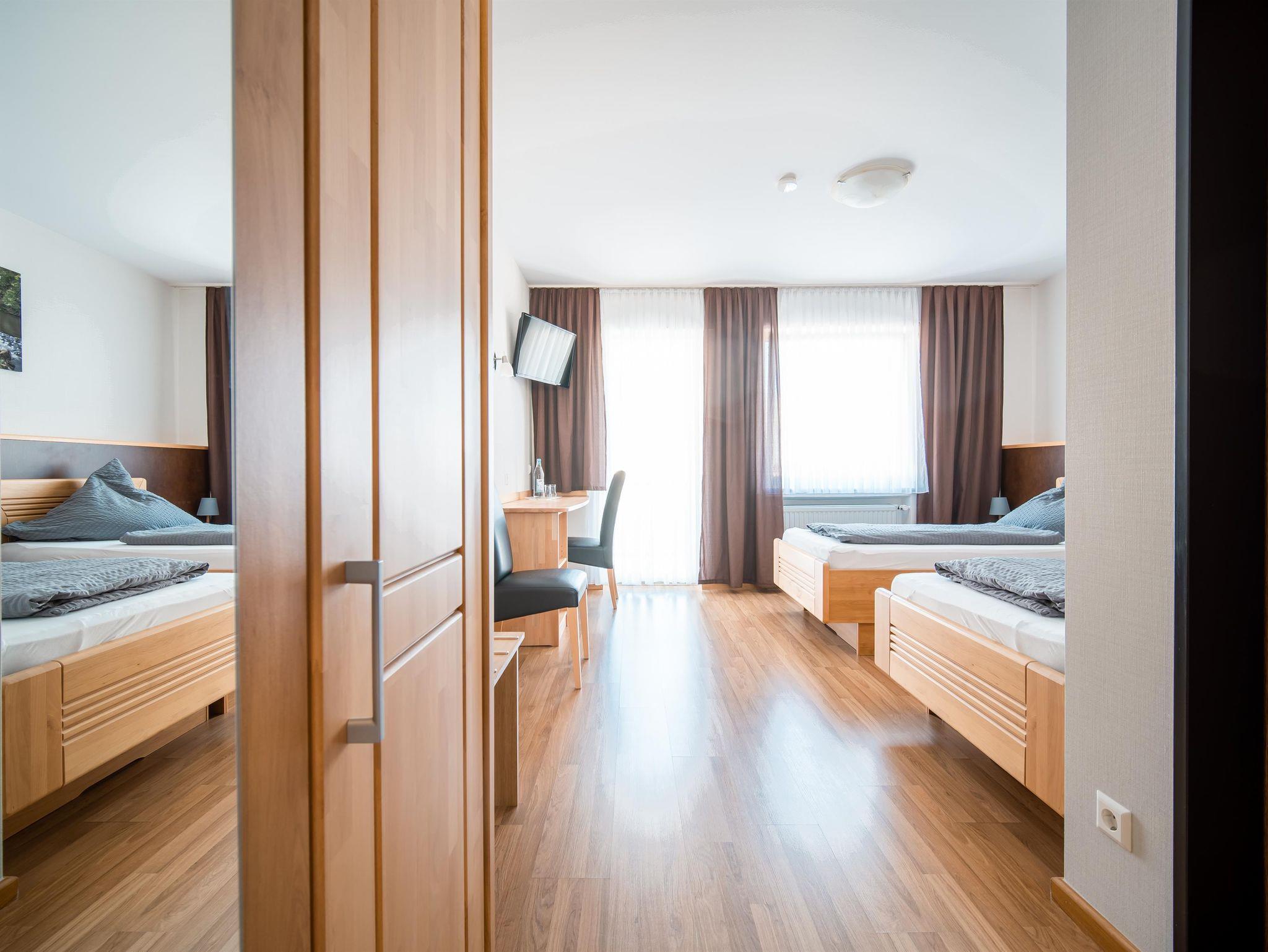 Unsere Einzelzimmer sind mit einem Balkon, Wifi, Sitzecke & Schreibtisch sowie mit einem TV ausgestattet.