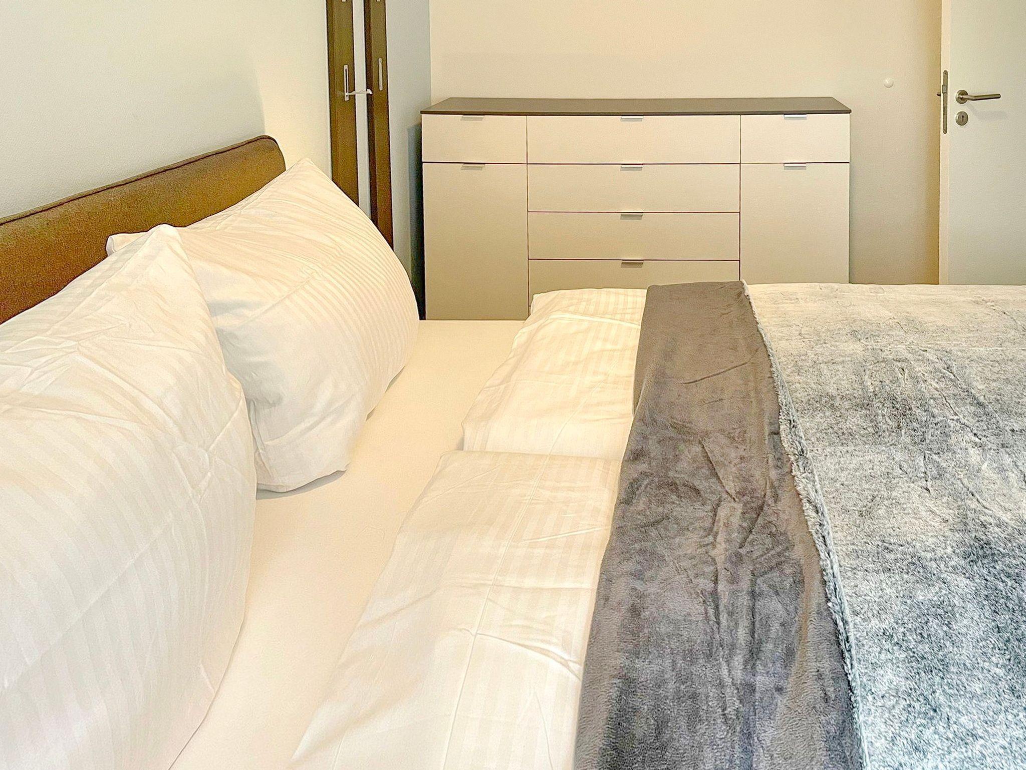 Diese wunderbare Ferienwohnung ist ideal für die große Familie oder 3 befreundete Paare. Sie ist ebenerdig und mit 3 Schlafzimmern und 2 Bädern ausgestattet. Das große geräumige Wohnzimmer bietet Ihnen ein Esstisch mit einer voll ausgestatteten Küchenzeile. Jeder findet einen Platz zum Ausruhen auf den beiden Sofas oder in einem der bequemen Sesseln. Die Fußbodenheizung und der Holzkamin sorgt für Wärme und Wohlfühlatmosphäre.