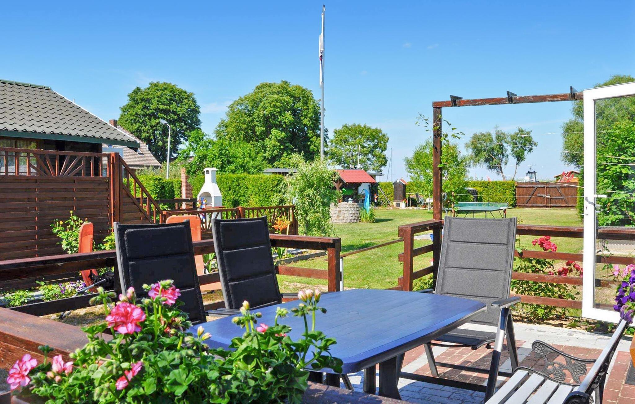 Weiterhin stehen allen Gästen jeweils eine möblierte Terrasse vor dem Haus, eine Liegewiese mit Sonnenliegen auf dem Grundstück, Grill, Parkplätze, Fahrrad-Unterstellmöglichkeiten, eine Tischtennisplatte und ein Aufstellpool (gegen Gebühr) zur Verfügung. Über den Eigentümer können außerdem Touristenfischereischeine und Angelerlaubnisse gekauft werden.