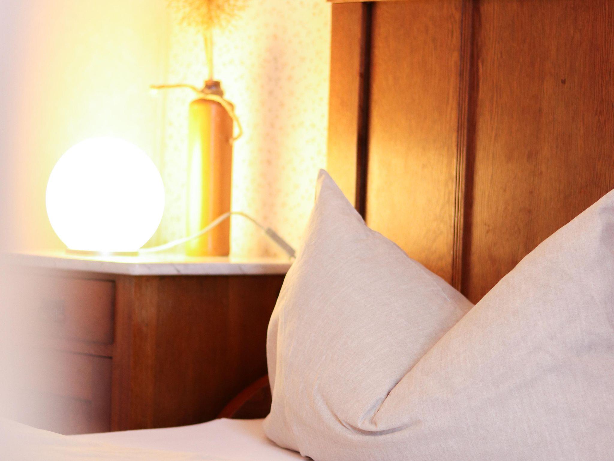 Die Ferienwohnung liegt im 1. Obergeschoss, ca. 70 qm, moderne, gut ausgestattete Küche mit großzügigem Wohnbereich und Balkon. Ein Zimmer mit Doppelbett (Betten können auch als zwei einzelne Betten genutzt werden), ein Zimmer mit Einelbett und hochwertiger Infrarotkabine, modernes Bad mit Dusche/WC.