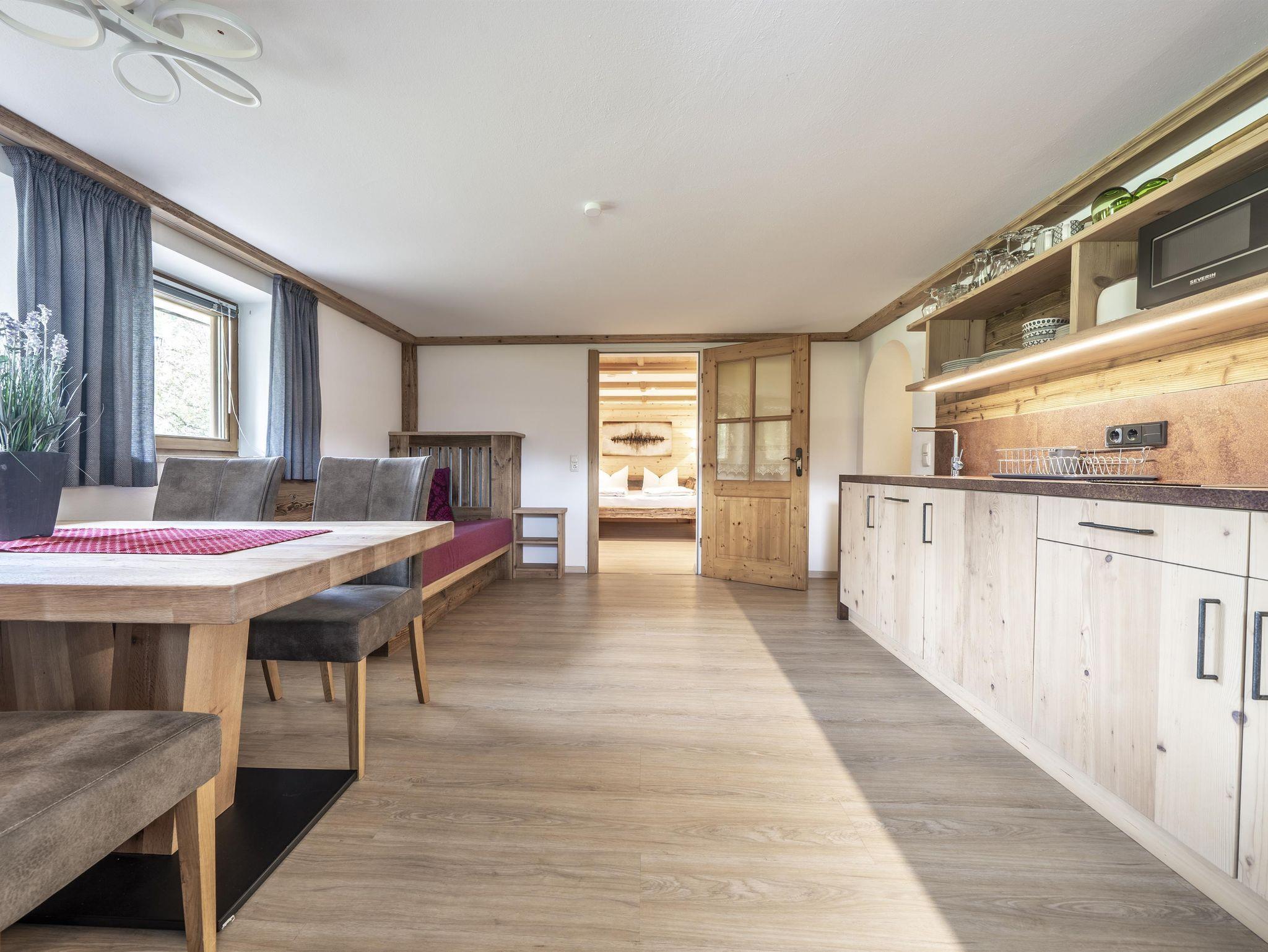 Unsere Ferienwohnung Hochalm ist unser größtes Appartement mit zwei getrennten Schlafräumen (buchbar 2- 5 Personen) Soutterrain zur Gartenseite mit kleiner Terrasse.