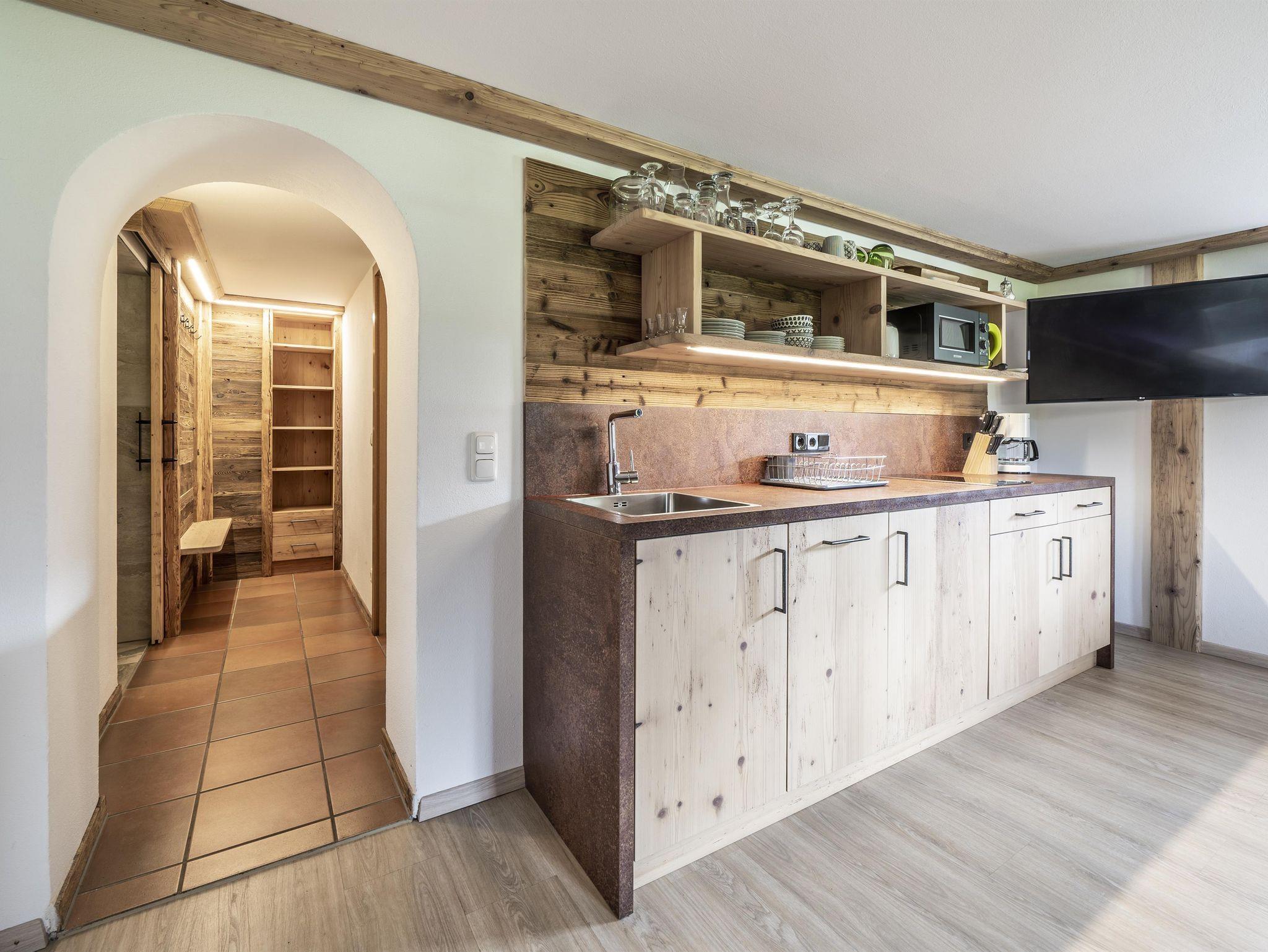 Wohnküche komplett ausgestattet, sowie eine Sitzecke, Couch,Flachbildfernseher, Sat-TV, W-lan und einem modernem Bad.