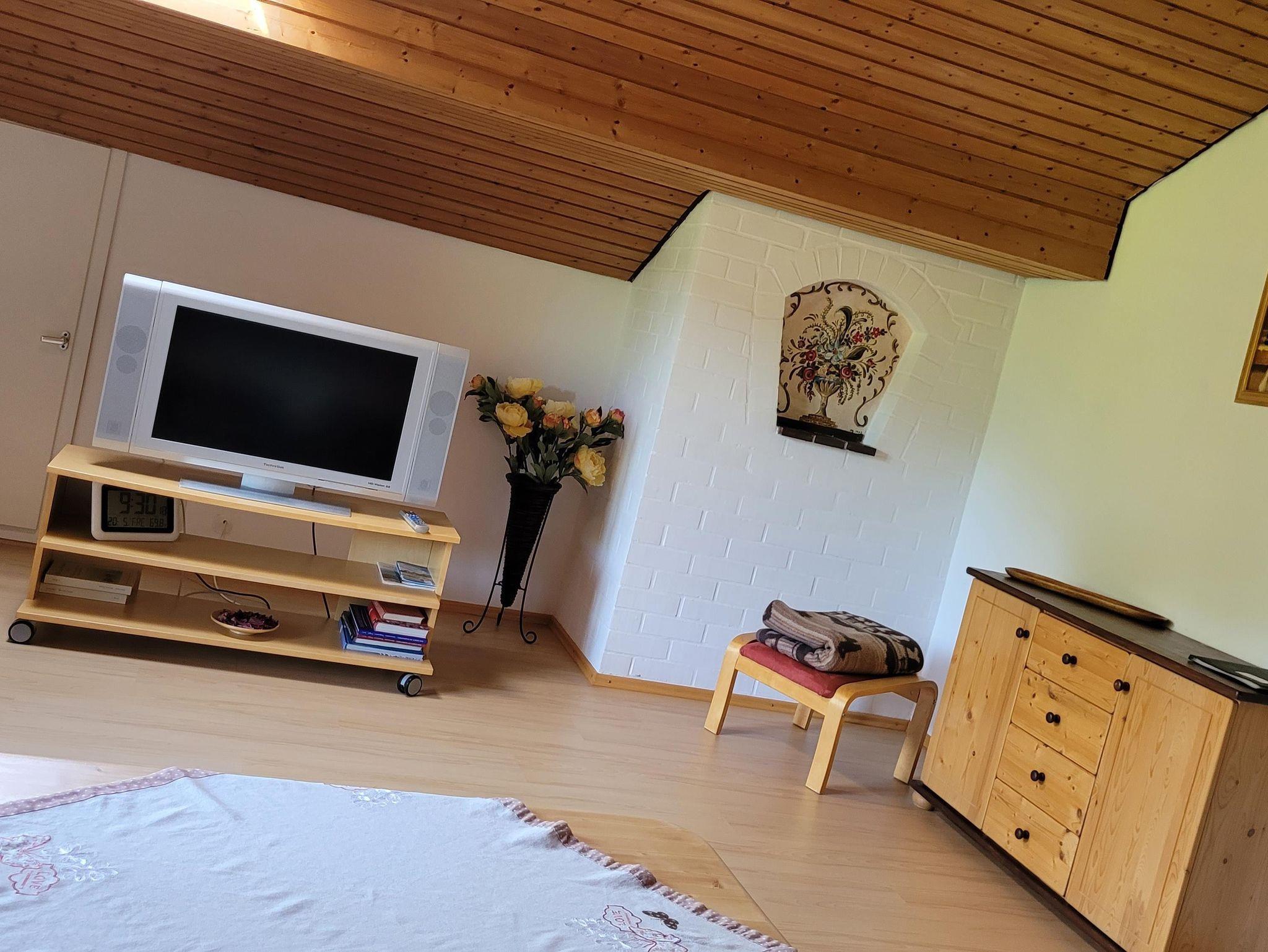 Die Dachwohnung bietet Ihnen ein Schlafzimmer mit Doppelbett und Südbalkon; Küche mit kompletter Koch- und Geschirrausstattung, Minibackofen, Kaffeemaschine, Wasserkocher, Toaster, Kühlschrank mit kleinem Gefrierfach; Wohnzimmer mit Polstergarnitur und Westbalkon; sowie Dusche WC, Zentralheizung. Die komplette Wäsche (Handtücher, Bettwäsche, Geschirrtücher) werden Ihnen zur Verfügung gestellt. Wir legen großen Wert auf Gemütlichkeit, damit sie sich bei uns wie zu Hause fühlen. Wir würden uns freuen, wenn wir Sie als Gäste begrüßen dürfen. Bitte besuchen Sie für weitere Informationen unsere Website www.fw-simon-lenggries.de