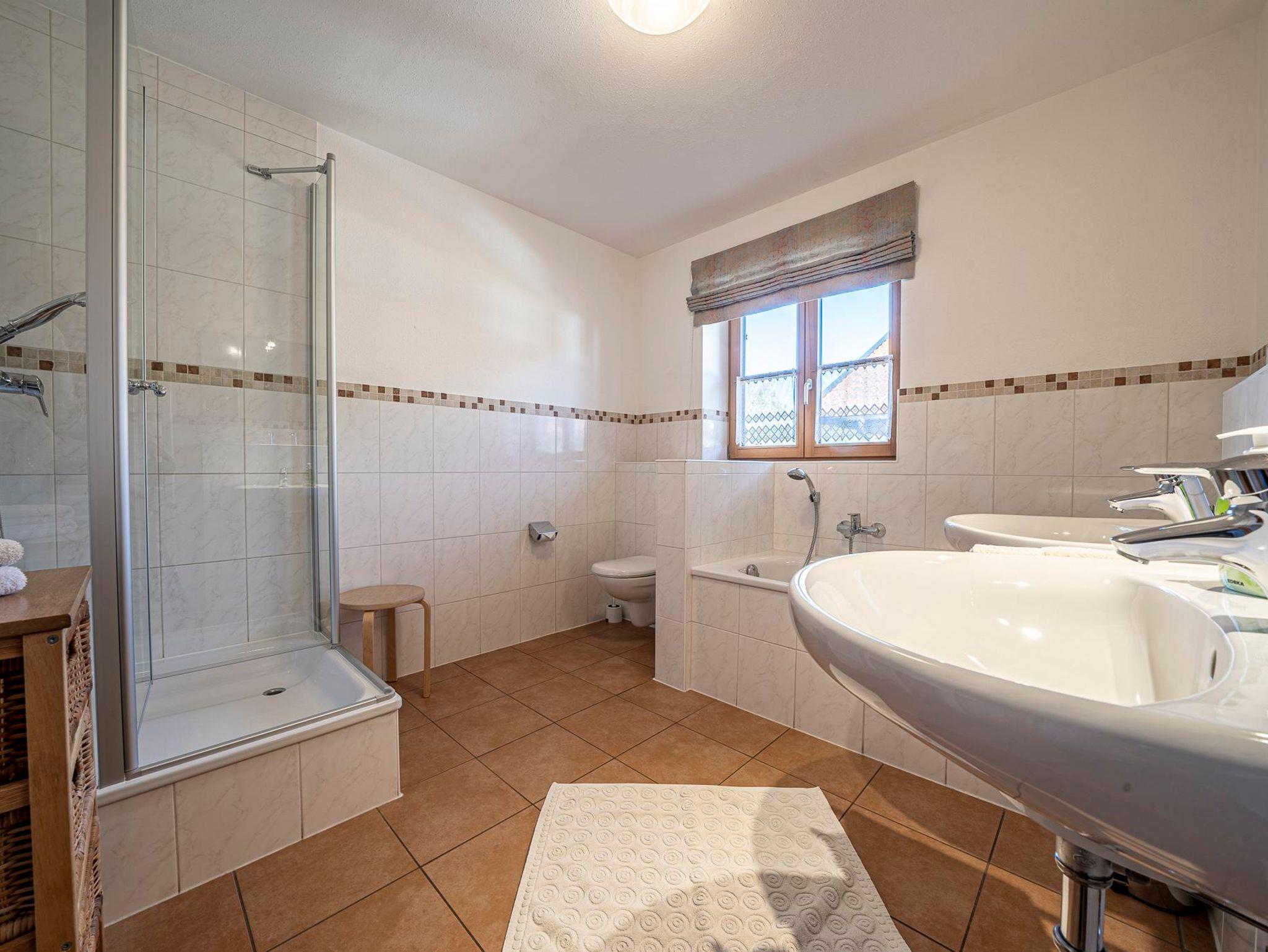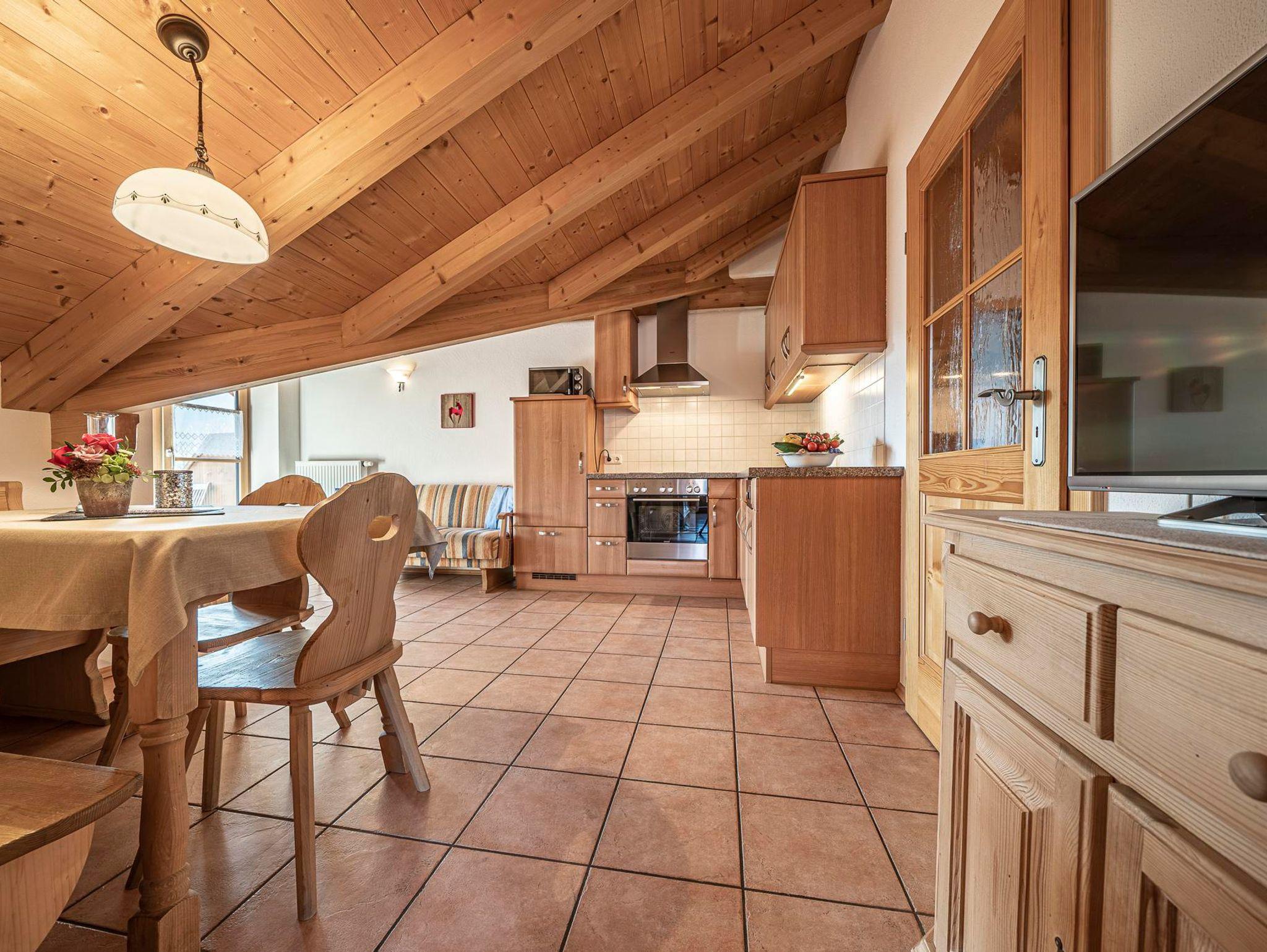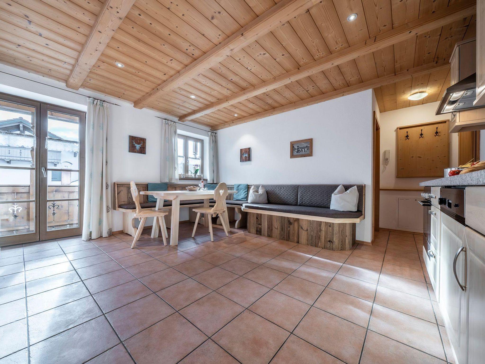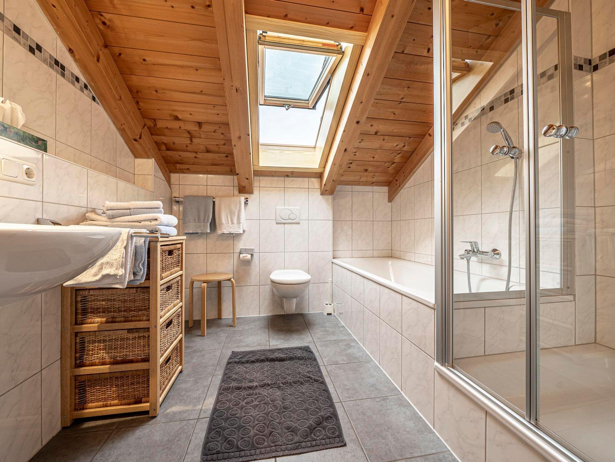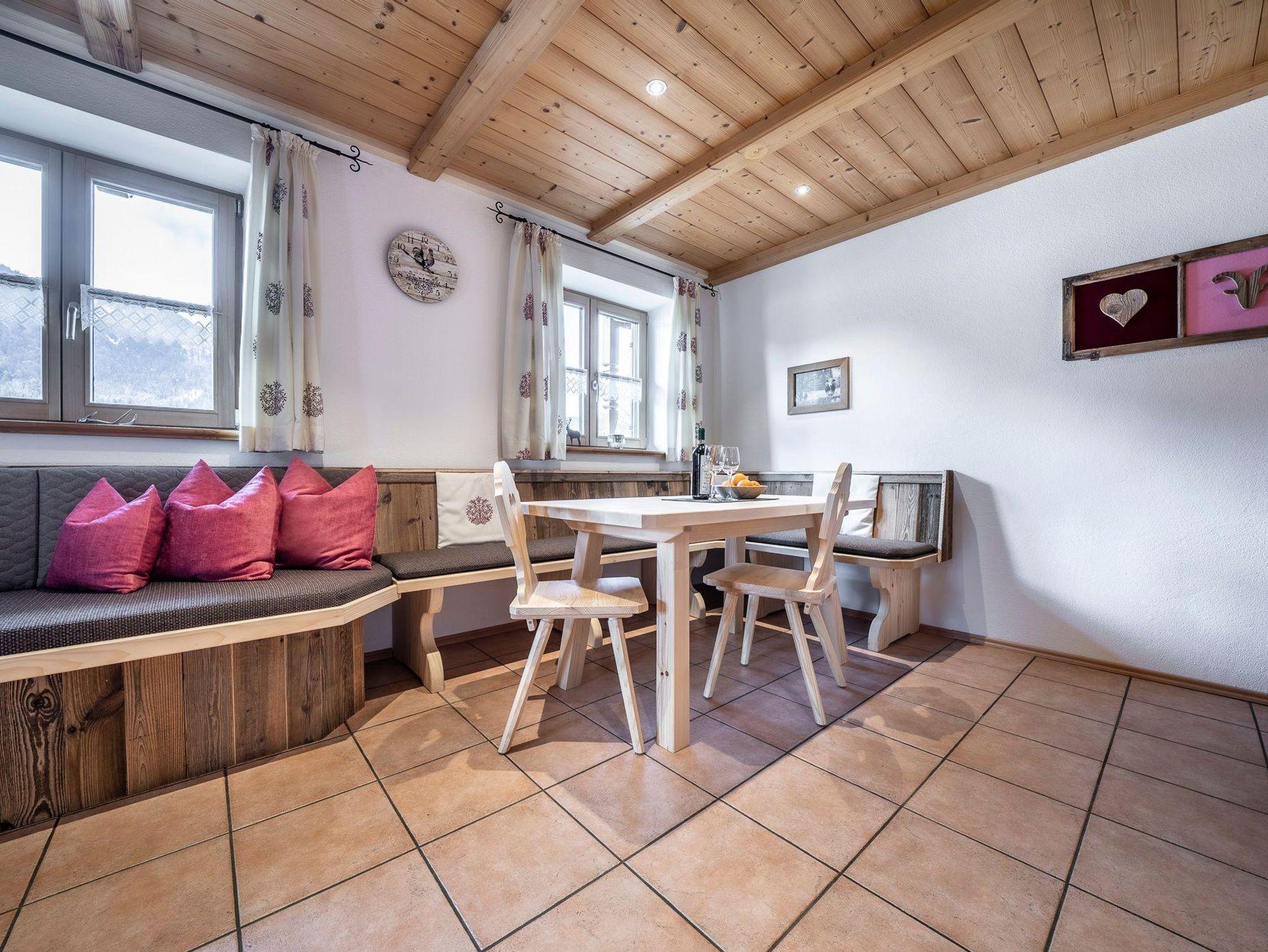 **** Ferienwohnung im 1. Stock, mit zwei handgefertigten Schlafzimmern aus Eichen- und Zirbenholz, einer komplett ausgestatteten Wohnküche mit Spülmaschine, Backofen, Mikrowelle, Kaffeemaschine und Flachbildfernseher. Das Bad ist mit Badewanne und Dusche/WC, Hand- und Badetücher, Handtuchtrockner, Kosmetikartikel und Fön. Großer möblierter Balkon mit unverbauter Bergsicht.