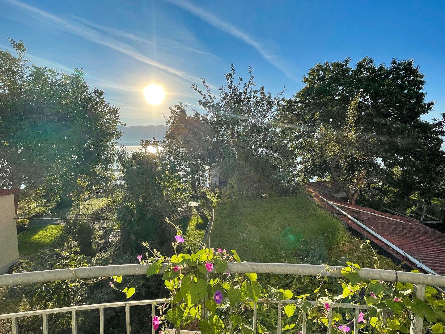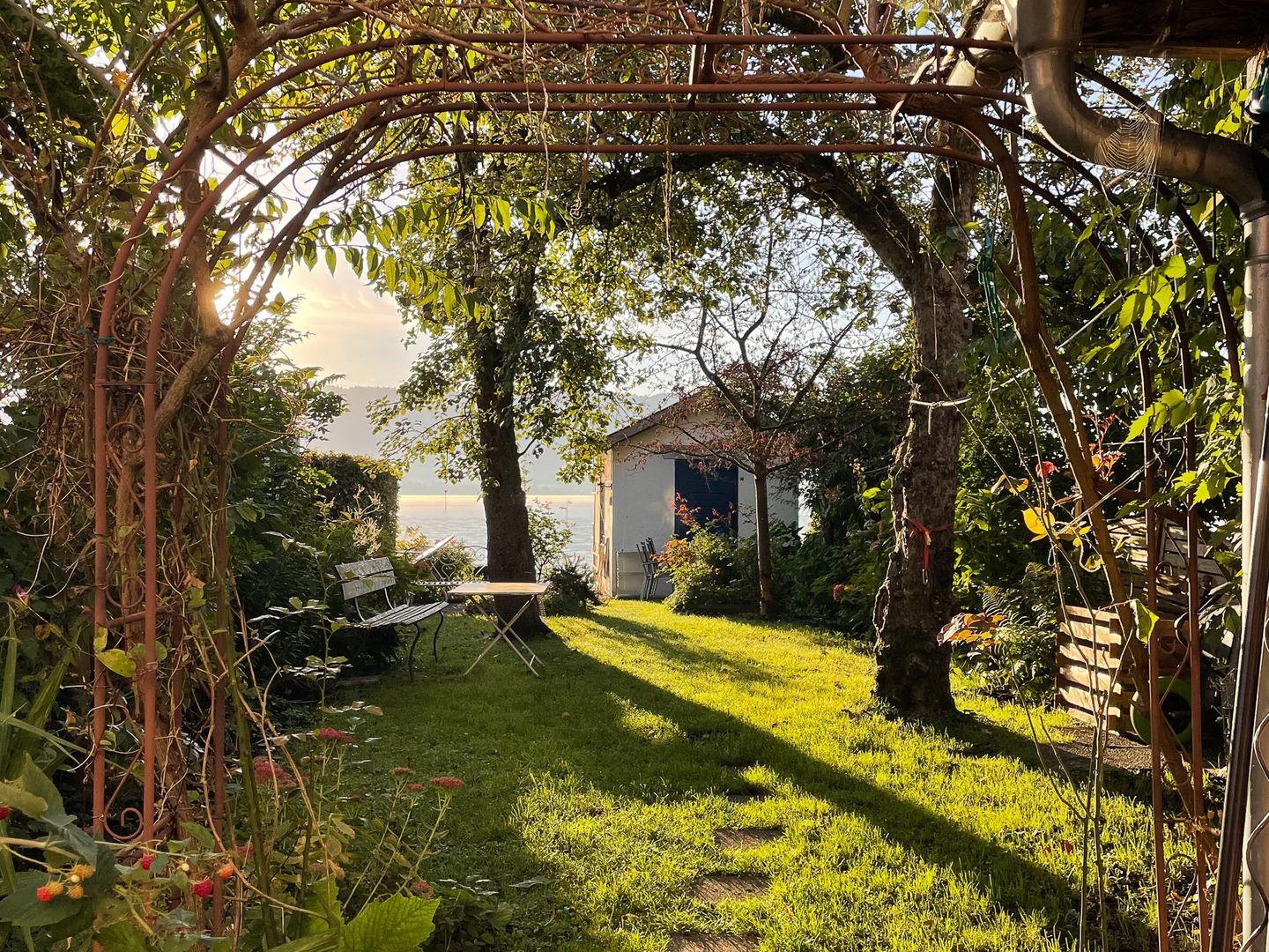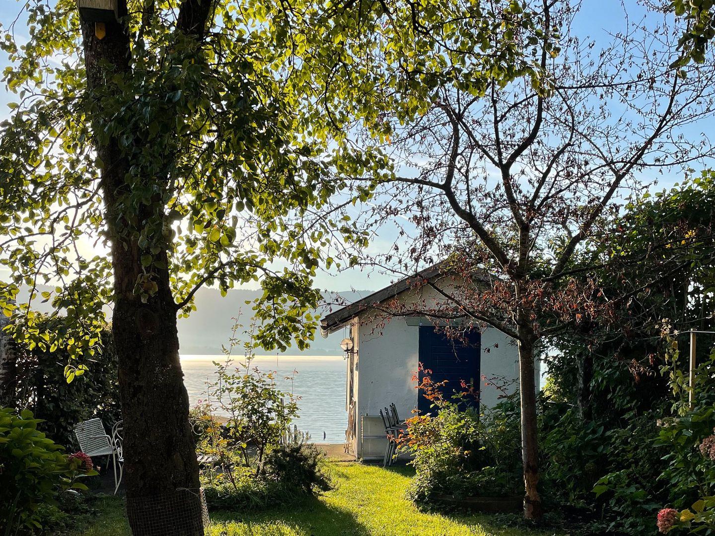 Das Grundstück befindet sich direkt am Seeufer mit herrlichem Blick auf den Bodensee und die gegenüberliegenden Berge. Das Grundstück verfügt über einen direkten Seezugang. Für unsere Gäste besteht die Möglichkeit, den Garten der Eigentümer zu durchqueren, um direkt im See zu baden oder sich kurz zu erfrischen.