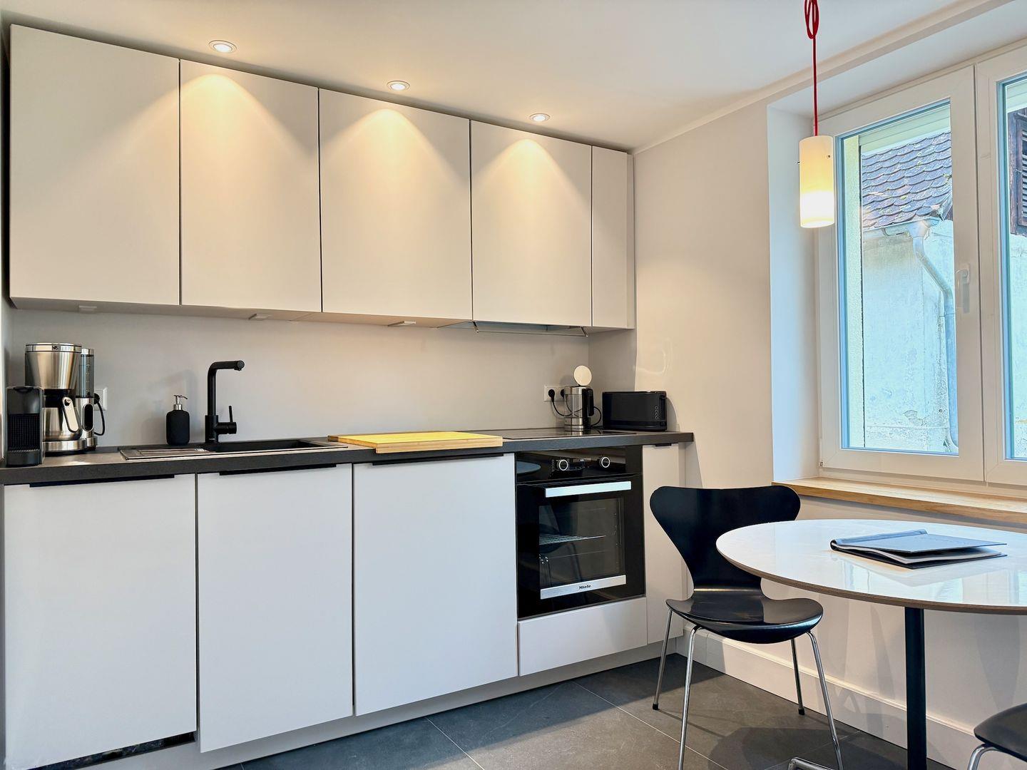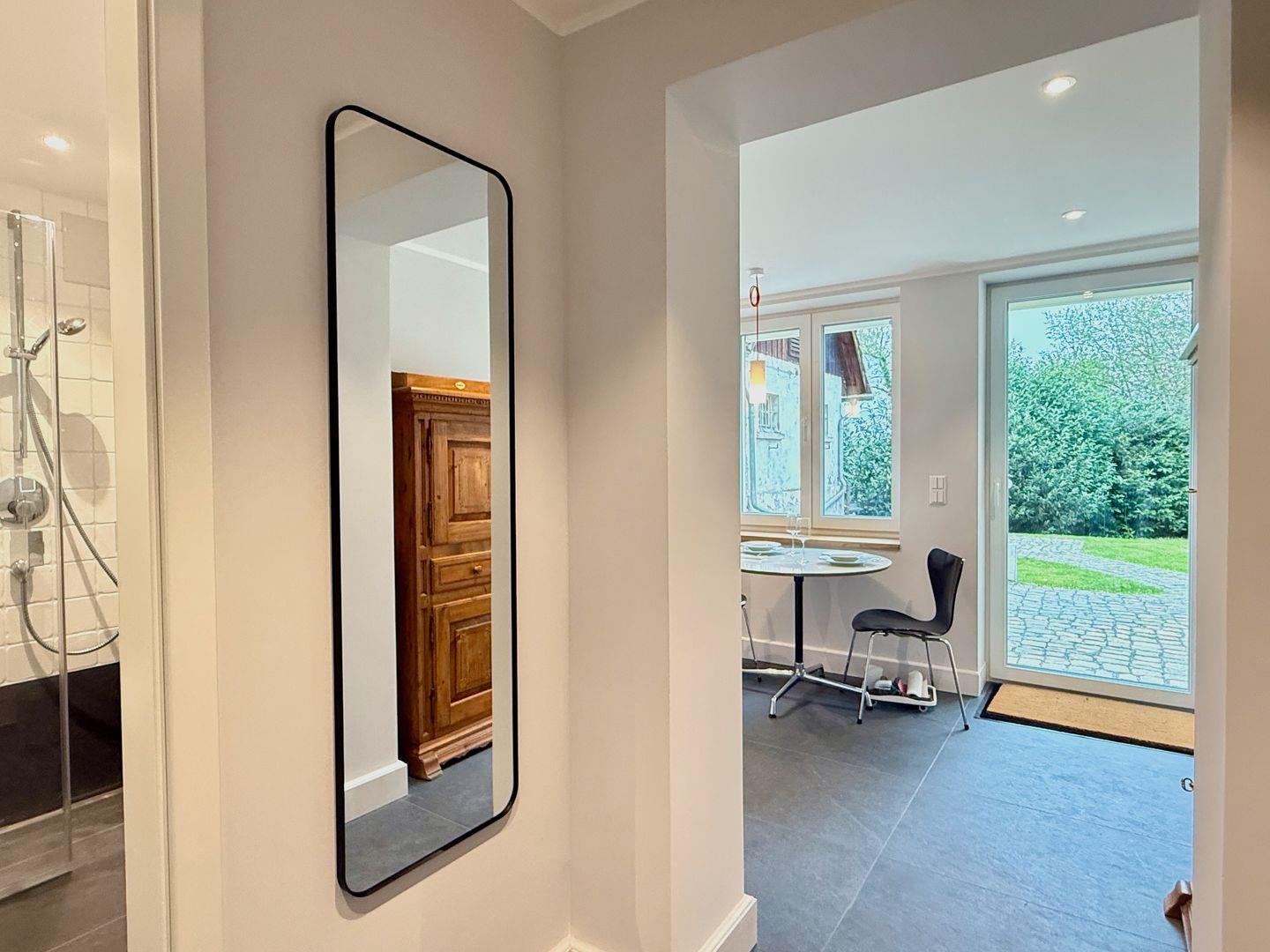 In der zum Wohnraum hin offenen Küche befindet sich der Esstisch für 2 Personen sowie ein Ausgang zum Garten. Die Küche ist mit einem Induktionskochfeld, Dunstabzugshaube, Backofen, Geschirrspüler, Kühlschrank mit Gefrierfach, Nespresso- und Kaffeemaschine, Toaster und Wasserkocher sowie reichlich Geschirr gut ausgestattet. Gleich nebenan ist das geräumige Wohnzimmer. Im Wohnzimmer befinden sich TV, BlueRay-DVD-Player sowie eine Blue Tooth Box für Ihre persönlichen Musik-Streaming-Dienste. Auch durch die Terrassentüre des Wohnzimmers gelangen Sie direkt auf die Sonnenterrasse und den Gartenbereich der Wohnung.