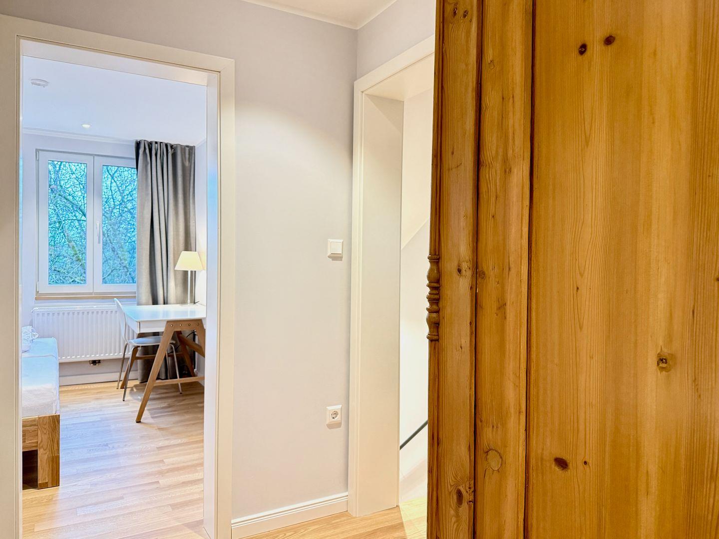 Die Ferienwohnung Villa Hoyerberg Allgäu verfügt über ein Schlafzimmer, einen Lese/Ruhebereich und ein Bad mit Dusche. Das Schlafzimmer ist mit einem Doppelbett, einem Schreibtisch und einem geräumigen Kleiderschrank ausgestattet. Für besondere Wohlfühlatmosphäre sorgt der hochwertig Eichenparkettboden im Wohn-, Schlaf- und Ruhezimmer. Bad, Flur und Küche sind mit Fliesen versehen. In einer Abstellkammer verschwindet alles Übrige.