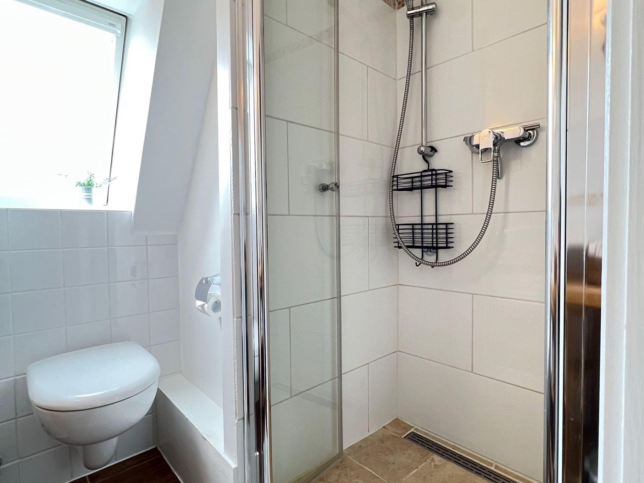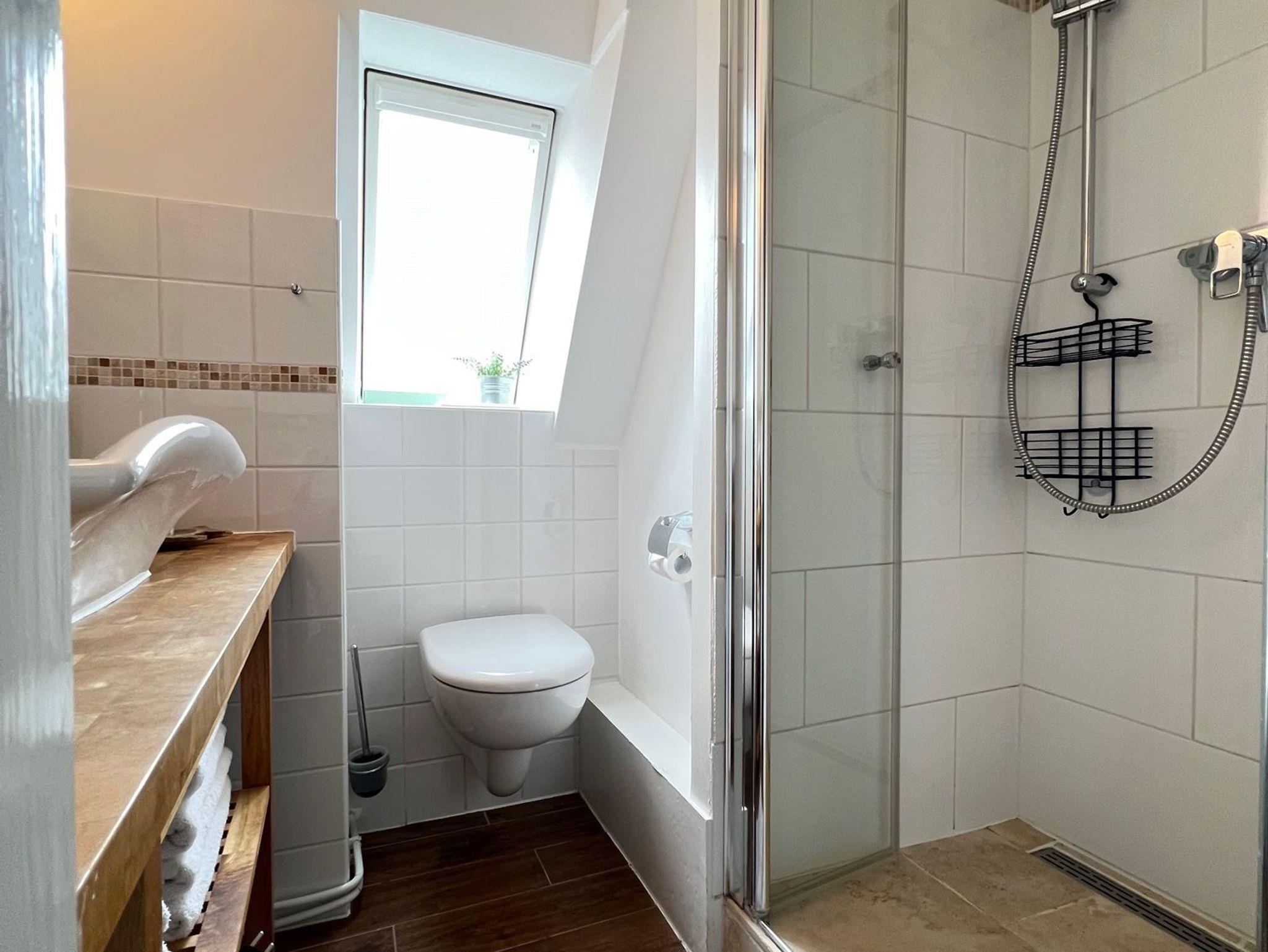 Dusche und WC sorgt für einen erfrischenden Start in den Tag. Das gesamte Apartment ist mit großen Fenstern