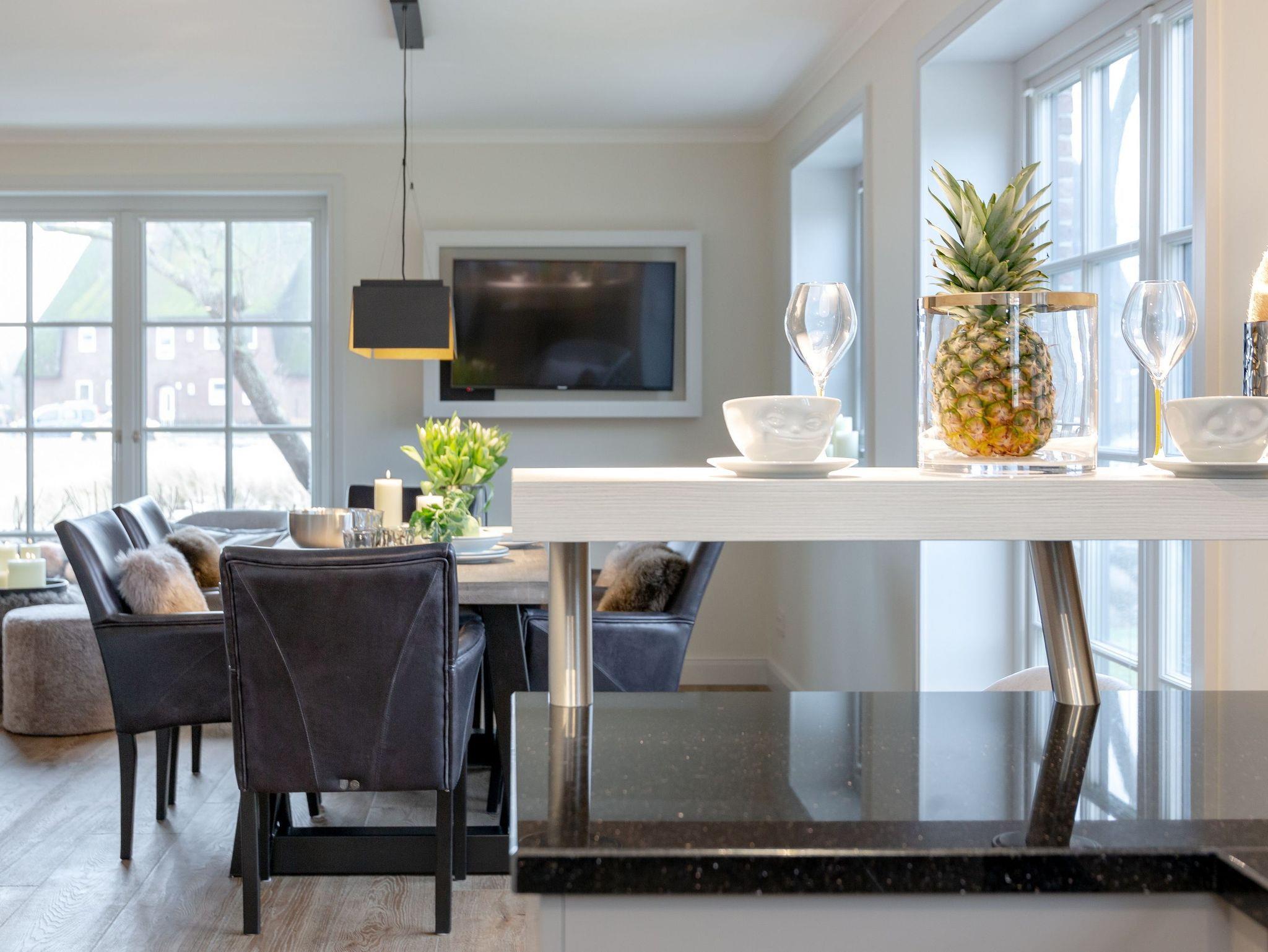Eine Perle Lister Urlaubskultur: Das Haus Süderhörn ist gerade neu erbaut. Die Farben der Natur und das hochwertige Interieur versprechen einen erholsamen Urlaub in List auf Sylt. Das Ferienhaus Süderhörn ist ein Haus unter Reet für bis zu 6 Personen, das Sie mit dem coolen Mix aus modernen Holzeinbauten und edlen Materialien begeistern wird. Der Wohnbereich mit Kamin sowie der große Esstisch versprechen gemütliche Abende oder kulinarische Tafelfreunden, diese lassen sich in der perfekt und hell gestalteten Küche zubereiten dazu ein guter Wein aus dem Weinkühlschrank mehr geht nicht und ein Thermomix ist auch vorhanden. Im Ober- und Untergeschoss geht es ruhiger zu , denn hier wird geschlafen und entspannt. In zwei Schlafzimmern (Obergeschoss) bzw. einem Schlafzimmer (Untergeschoss), die sich stilvoll in ihren Farben präsentieren. Das Elternschlafzimmer verfügt über ein Fernseher sowie ein perfekt ausgestatteten begehbaren Kleiderschrank.Das Haus verfügt insgesamt über drei Duschbäder eines davon mit Badewanne sowie eine geräumige Sauna , ein Gäste WC , Hauswirtschaftraum mit Waschmaschine und Trockner sind ebenfalls vorhanden.